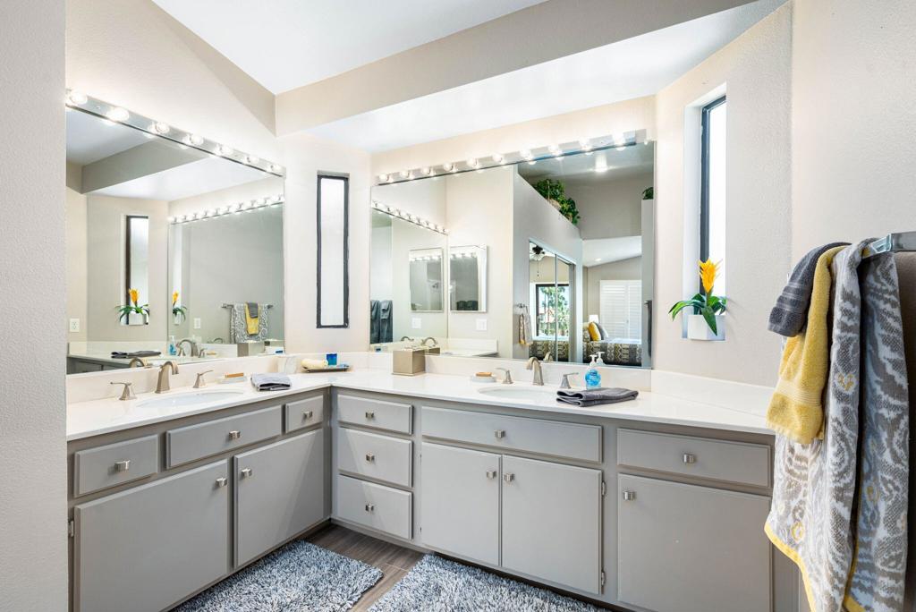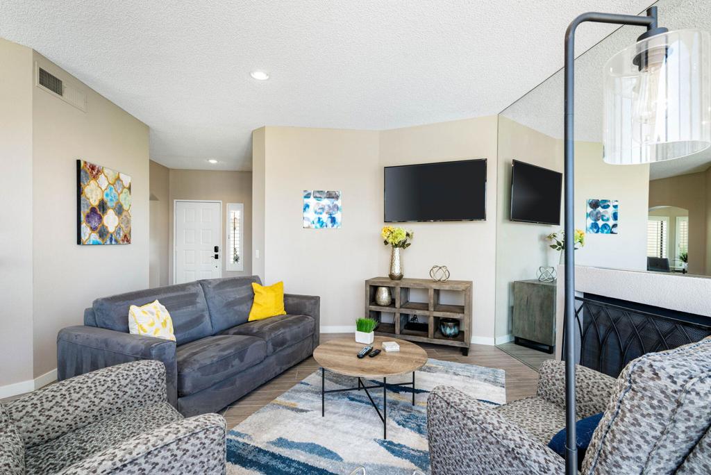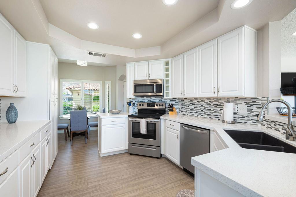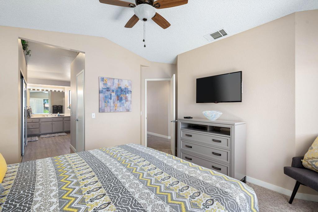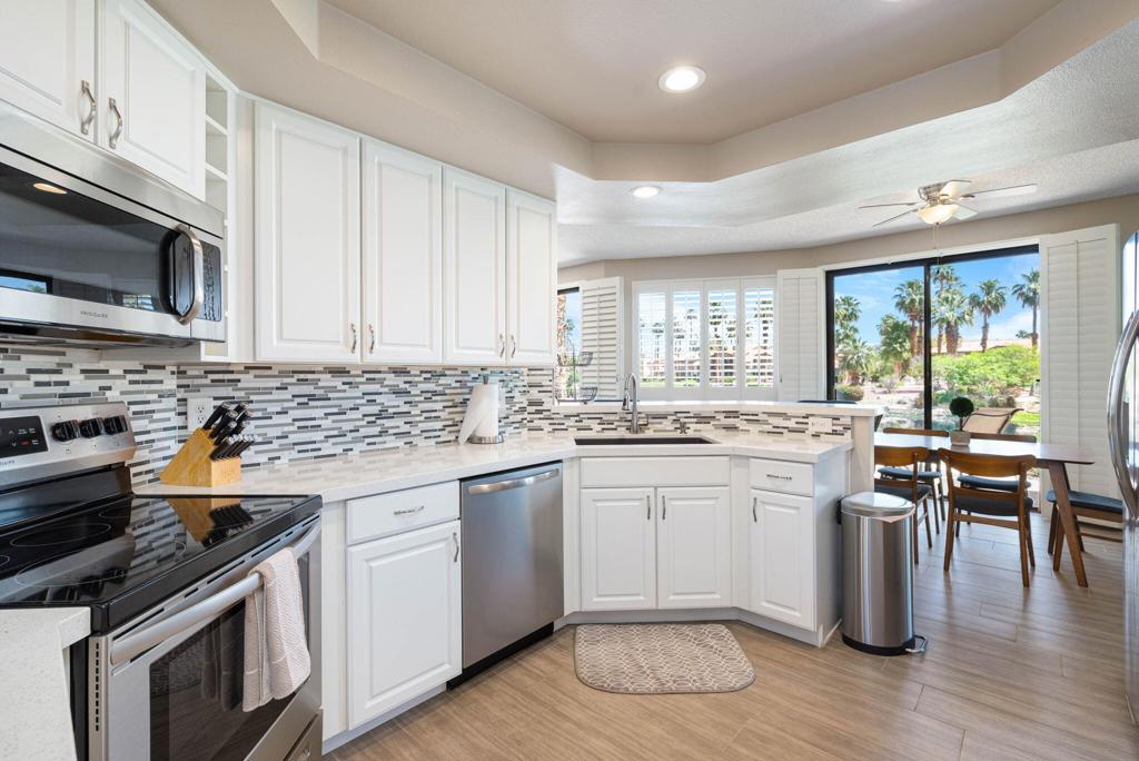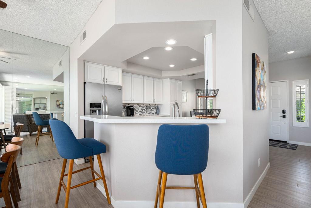 Welcome to this delightful two bedroom, two and a half bath condo offering picturesque lake views. Nestled in the serene and beautifully landscaped community on the PGA West Arnold Palmer golf course. Upon entering you will be greeted by an open and inviting living area that flows seamlessly into a well appointed remodeled kitchen. The spacious layout is perfect for entertaining, with ample natural light accentuating the space. The generously sized bedrooms offer comfort and privacy, each boasting their own en-suite bathroom for added convenience. The master suite provides a private oasis with stunning lake views! Enjoy peaceful mornings or unwind after a long day on your private patio an ideal spot for outdoor dining, reading or simply soaking in the tranquil atmosphere. Experience the best of La Quinta living! Contact me to schedule your showing today!