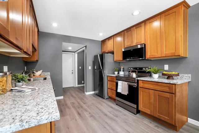 Welcome to your newly remodeled townhome! This 3 bedroom, 2.5 bathroom gem features modern upgrades throughout. Step inside to discover sleek vinyl flooring that adds a touch of elegance to the living space. The kitchen boasts stunning granite countertops, with brand new cabinets and modern and high end stainless steel appliances perfect for both meal prep and entertaining. Escape to your luxurious master bedroom suite, complete with a spacious walk-in closet for all your storage needs. The remaining two bedrooms are large enough for the perfect home office or to fulfill your additional bedroom needs. Outside, a private backyard awaits, ideal for hosting gatherings or simply enjoying some outdoor relaxation. Your convenience is ensured with new garage door and motor, as well as updated plumbing and electrical systems. With in-unit laundry and a pantry, this townhome offers both comfort and functionality for modern living. Other features such as central heating & recessed lighting make this home move in ready! The exterior will be enhanced with fresh new paint and fence from the HOA! Say hello to your dream home!