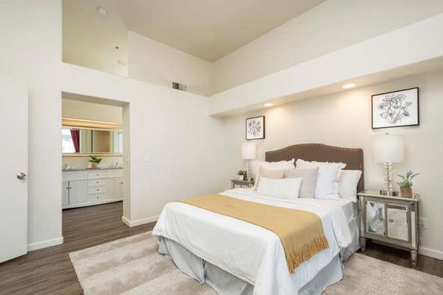 RARELY AVAILABLE - low HOA fee, pet friendly, no rental restrictions, attached garage & ideally situated within the sought-after Hampton complex, offers the perfect blend of comfort and convenience. Spanning over 1320 square feet, this corner unit provides desirable contemporary living and convenient flexible space. The interior exudes warmth and sophistication, featuring vaulted ceilings that create an airy ambiance flooded with natural light, contributing to a unified feel and flow. The open kitchen includes a gas range, pantry, and an adjacent laundry room positioned for added convenience. A generously sized bedroom features an ensuite bathroom and spacious walk-in closet, while a versatile loft, suitable for an office or guest bedroom with a full bath, provides options to accommodate various needs. Step outside to entertain on the expansive outdoor deck while enjoying breathtaking sunset views. Residents can access amenities including a community pool, manicured grounds, and a serene park with bench seating overlooking a tranquil lagoon. Located between the bustling tech hub of Silicon Valley and the vibrant cityscape of San Francisco, with top-rated schools nearby, this Redwood Shores residence embodies ideal proximity and the quintessential California lifestyle.