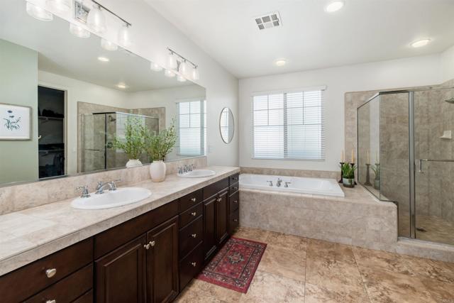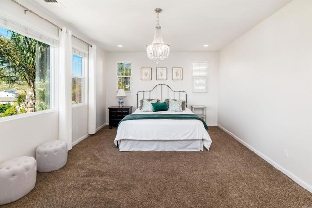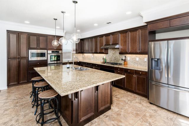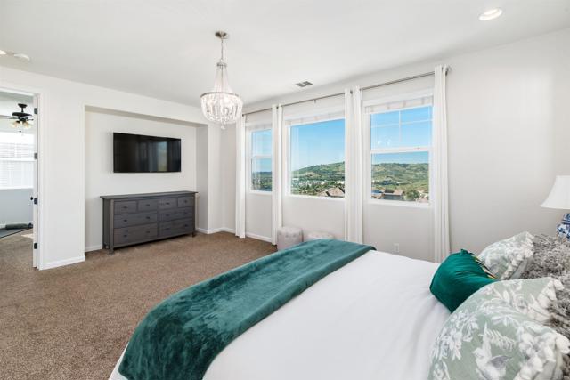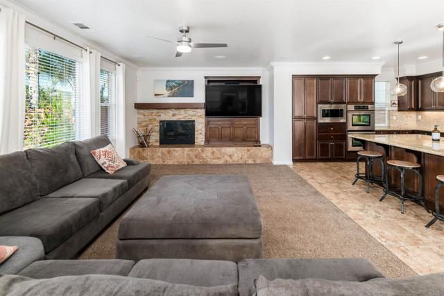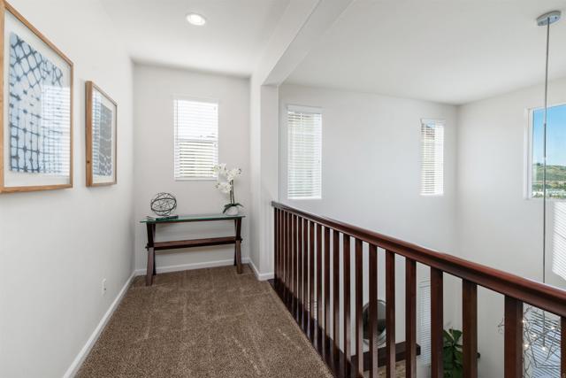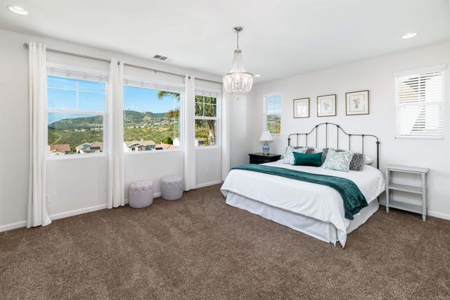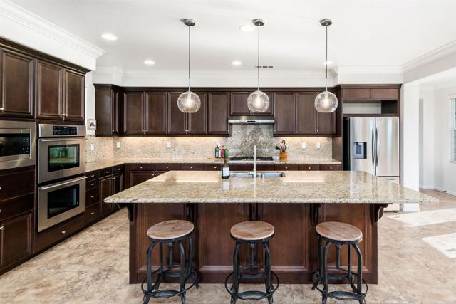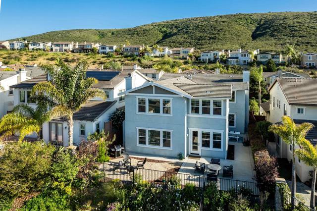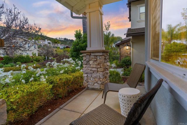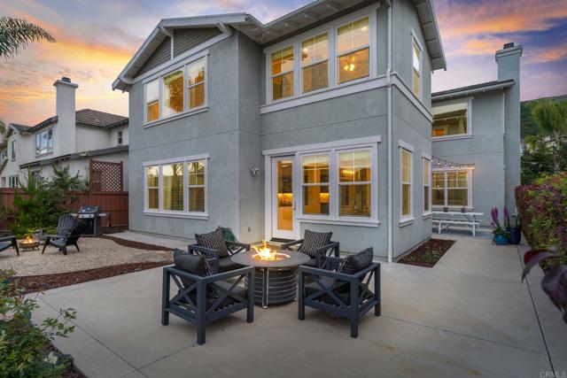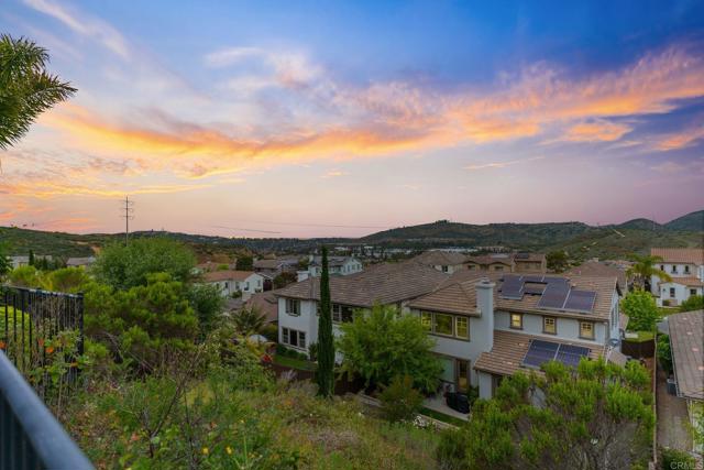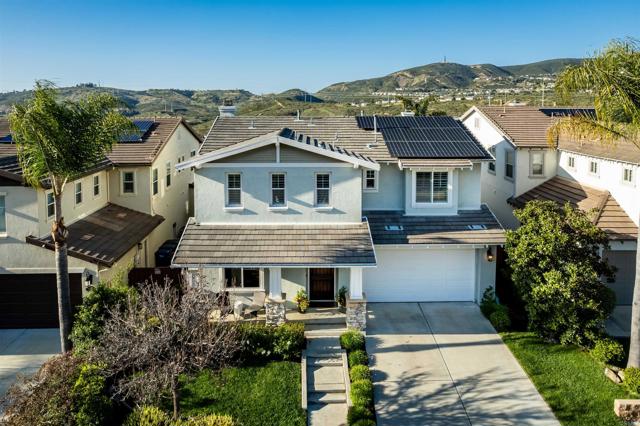 Priced below comparatives!! Welcome home to the coveted community of Mahogany at Old Creek Ranch. Peacefully situated on an elevated lot within beautiful San Elijo Hills with no rear neighbors, this home offers privacy, comfortable sophistication & an unparalleled lifestyle with its idyllic location, abundant parks & scenic hiking trails. Alluring curb appeal & front porch entry welcome you inside this enchanting home offering a refined open interior, seamless indoor-outdoor living & unobstructed views! 2-story ceilings, an abundance of natural light & beautiful stone fireplace highlight the formal living room. A den off the main entry offers added living space - perfect game room or office. Designed for effortless living, the open concept of the kitchen & family room creates a spacious high-end feel accented by a stone fireplace & wall of windows. Immaculate gourmet kitchen equipped w/ double ovens, gas cooktop & island w/ bar seating. Picture windows create a light & bright atmosphere in the formal dining room while a set of French doors off the kitchen & full glass door in the dining room create a seamless transition between the indoor & outdoor spaces. Affording the timeless charm of hillside views through picture windows, the primary suite offers a versatile ensuite retreat that can be used as a nursery, gym, or office space. Lavish primary BA w/ soaking tub & walk-in shower. 3 generously sized BRs (one ensuite), additional full BA & laundry complete the 2nd level. Created to embrace the endless views, the private backyard is encompassed by meticulous landscaping offering the ultimate entertainer’s dream space w/ an outdoor shower. Owned Solar. Just minutes to Village of San Elijo with restaurants & shops. 15 minutes to the beach. Easy access to freeways for convenient commuting. To see it is to love it! Tandem 3 car garage.
