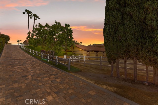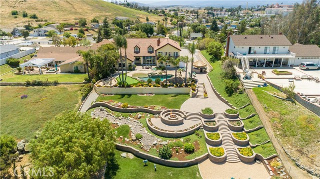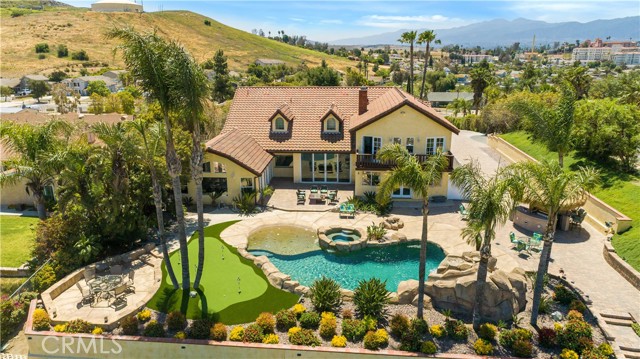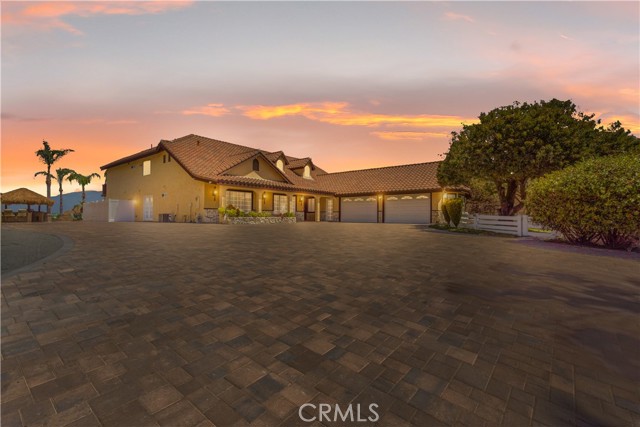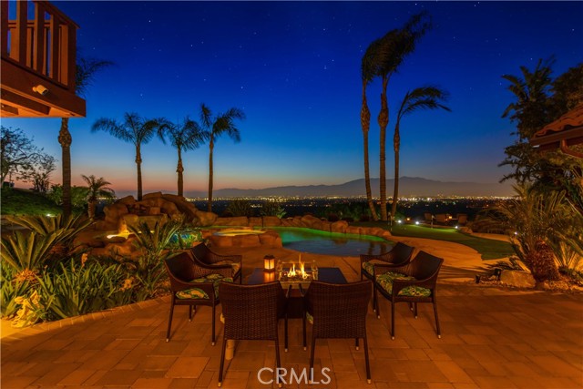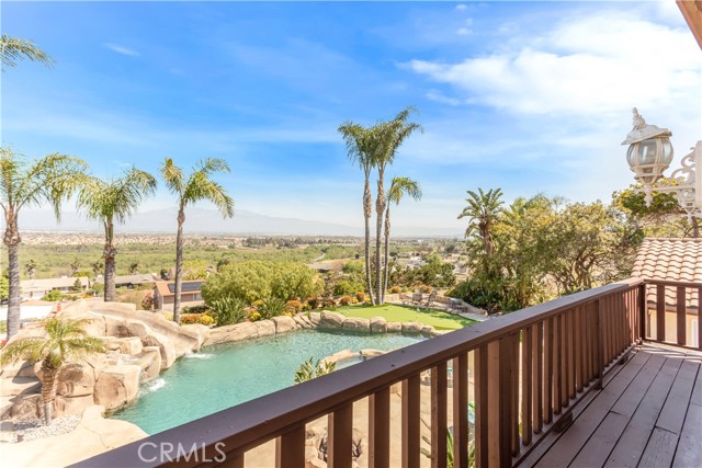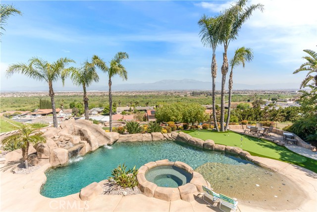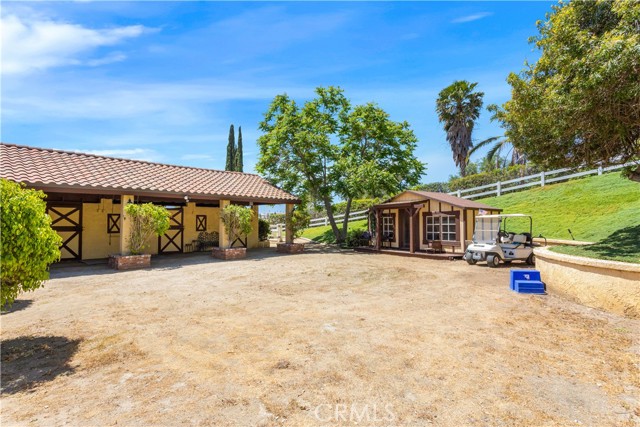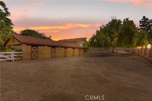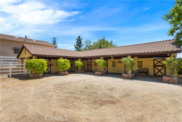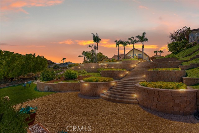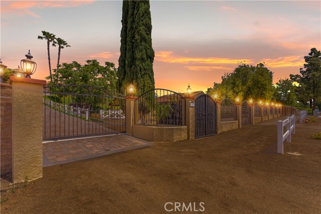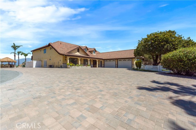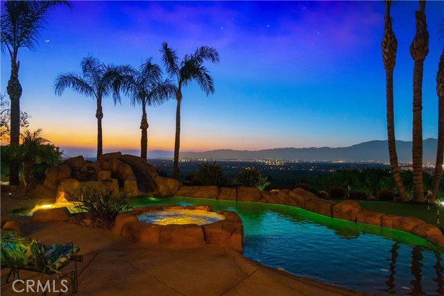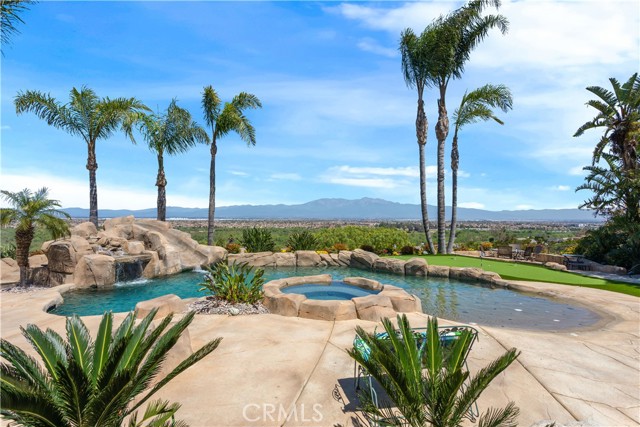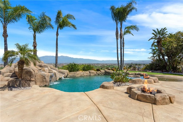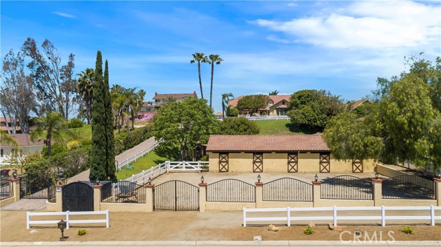 Discover the epitome of serene Norco living. Nestled beyond the enchanting gates, perched atop a tranquil hill, lies your exclusive oasis. Accompanied by rare, incredible 180-degree views. Gorgeous horse facilities, phenomenal backyard, and garden oasis. Impeccable crafted design and unparalleled luxury living space. This meticulously curated estate possesses a host of bespoke features, promising an exquisite lifestyle experience. Beyond the horse facilities, you're greeted by a grand driveway of newly placed pavers, that leads to the face of the home, setting the tone of this exquisite estate that lies beyond. The heart of the home unveils an open-concept design, seamlessly blending the formal family room with its remarkable rock hearth and beautiful wood beams into the gourmet kitchen. Adorned with granite countertops, ingenious Alpine Custom Cabinet pull-out shelving, and top-of-the-line stainless steel Kitchen Aid appliances, this culinary haven leaves no detail overlooked. A seamless transition of travertine directly imported from Italy extends throughout the home. Adjacent to the wet bar area lies the formal dining room, where panoramic views through 4-panel sliding glass doors offer an uninterrupted spectacle of the breathtaking scenery beyond. The shared laundry room and mudroom leads into the oversized 2-car garage that is graced with pebble tec flooring, and ample storage above. Venturing into the left wing, a spacious bedroom with built-in wardrobe conveniences. Nearby is a bathroom with custom designed mosaic tiles and a gorgeous vanity to match. Retreat to the primary suite, where you are instantly greeted with more scenic views accompanied by a lavish ensuite bathroom. Relish in the sumptuous tub or indulge in the opulent standing shower. Another bathroom and three additional bedrooms upstairs were once a vast loft. Two of the three rooms provide balcony access to more spectacular views. Venture outdoors to discover your private oasis. The panorama that unfolds before your eyes is nothing short of mesmerizing, featuring The Crown Jewel of Norco. Custom rock pool, waterslide, waterfall, and spa. Palapa with new Blaze BBQ. Manicured putting green. Multiple firesides. Relaxing lookout point. An extraordinary garden oasis with fragrant herbs, vegetables, and fruits. RV parking and plans for potential RV garage expansion. This home represents the pinnacle of luxury living and a harmonious blend of sophistication, comfort, and natural beauty.