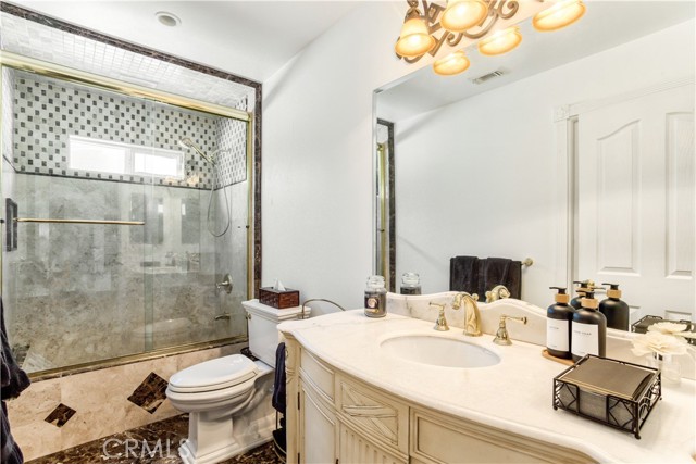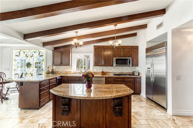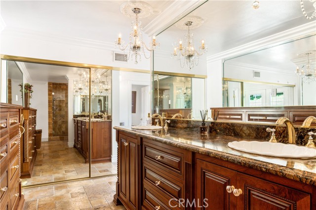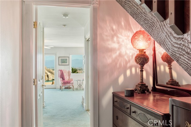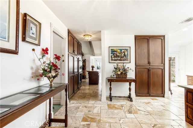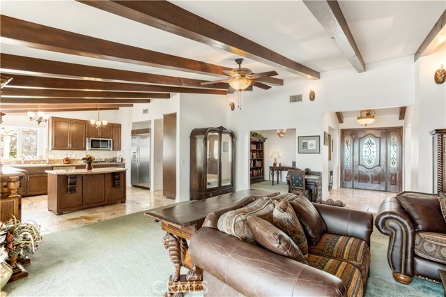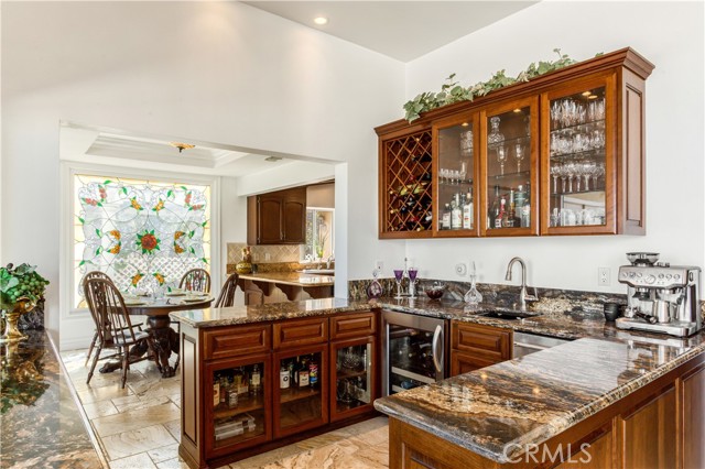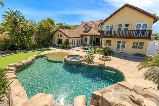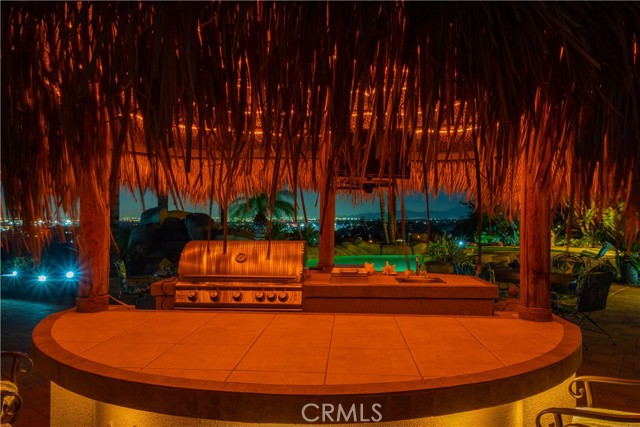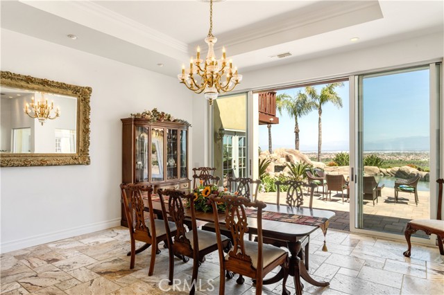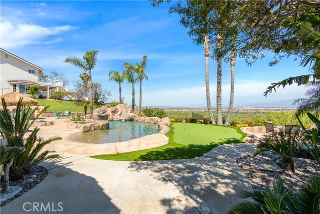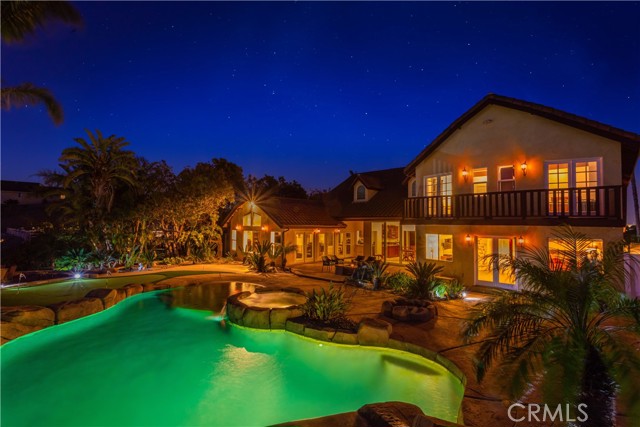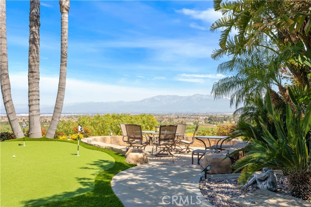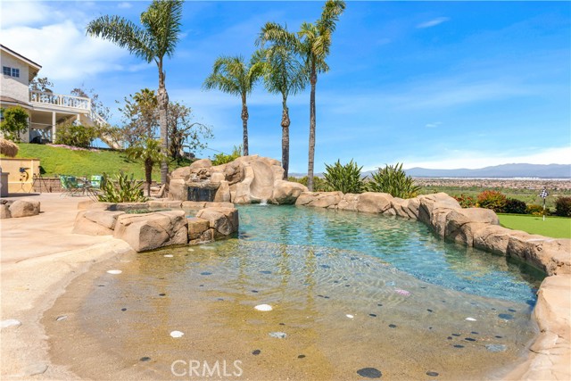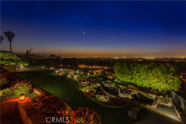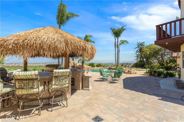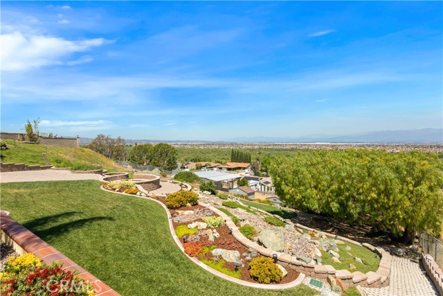 Discover the epitome of serene Norco living. Nestled beyond the enchanting gates, perched atop a tranquil hill, lies your exclusive oasis. Accompanied by rare, incredible 180-degree views. Gorgeous horse facilities, phenomenal backyard, and garden oasis. Impeccable crafted design and unparalleled luxury living space. This meticulously curated estate possesses a host of bespoke features, promising an exquisite lifestyle experience. Beyond the horse facilities, you're greeted by a grand driveway of newly placed pavers, that leads to the face of the home, setting the tone of this exquisite estate that lies beyond. The heart of the home unveils an open-concept design, seamlessly blending the formal family room with its remarkable rock hearth and beautiful wood beams into the gourmet kitchen. Adorned with granite countertops, ingenious Alpine Custom Cabinet pull-out shelving, and top-of-the-line stainless steel Kitchen Aid appliances, this culinary haven leaves no detail overlooked. A seamless transition of travertine directly imported from Italy extends throughout the home. Adjacent to the wet bar area lies the formal dining room, where panoramic views through 4-panel sliding glass doors offer an uninterrupted spectacle of the breathtaking scenery beyond. The shared laundry room and mudroom leads into the oversized 2-car garage that is graced with pebble tec flooring, and ample storage above. Venturing into the left wing, a spacious bedroom with built-in wardrobe conveniences. Nearby is a bathroom with custom designed mosaic tiles and a gorgeous vanity to match. Retreat to the primary suite, where you are instantly greeted with more scenic views accompanied by a lavish ensuite bathroom. Relish in the sumptuous tub or indulge in the opulent standing shower. Another bathroom and three additional bedrooms upstairs were once a vast loft. Two of the three rooms provide balcony access to more spectacular views. Venture outdoors to discover your private oasis. The panorama that unfolds before your eyes is nothing short of mesmerizing, featuring The Crown Jewel of Norco. Custom rock pool, waterslide, waterfall, and spa. Palapa with new Blaze BBQ. Manicured putting green. Multiple firesides. Relaxing lookout point. An extraordinary garden oasis with fragrant herbs, vegetables, and fruits. RV parking and plans for potential RV garage expansion. This home represents the pinnacle of luxury living and a harmonious blend of sophistication, comfort, and natural beauty.