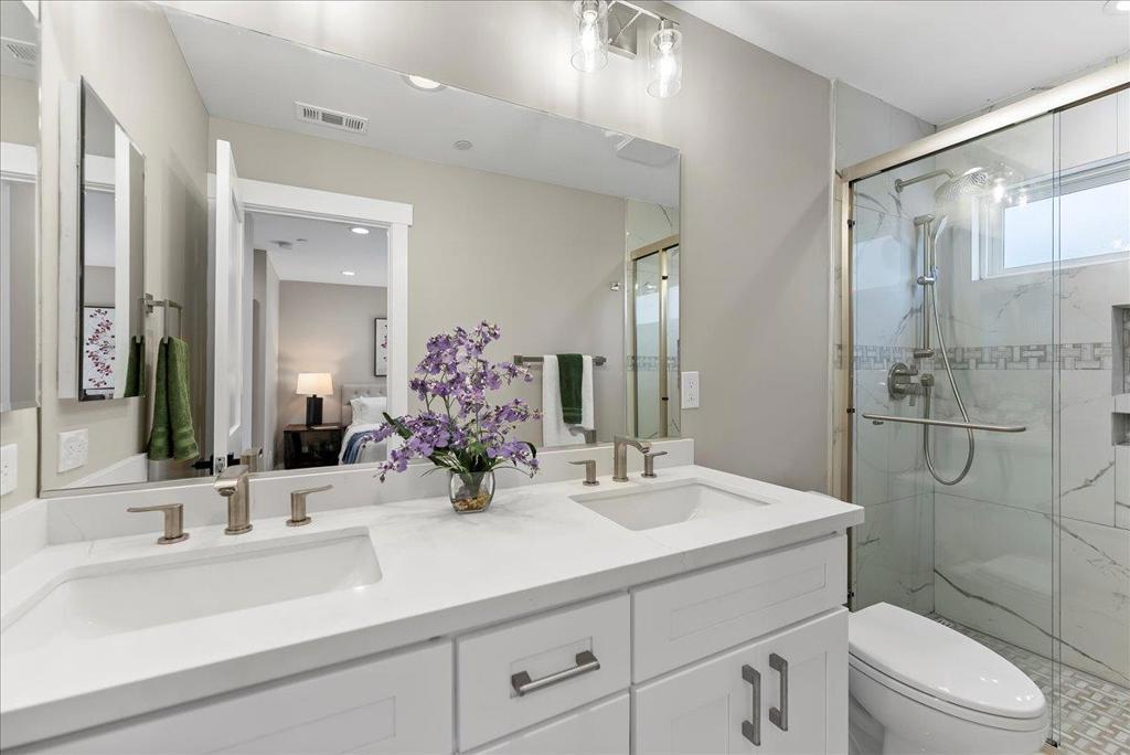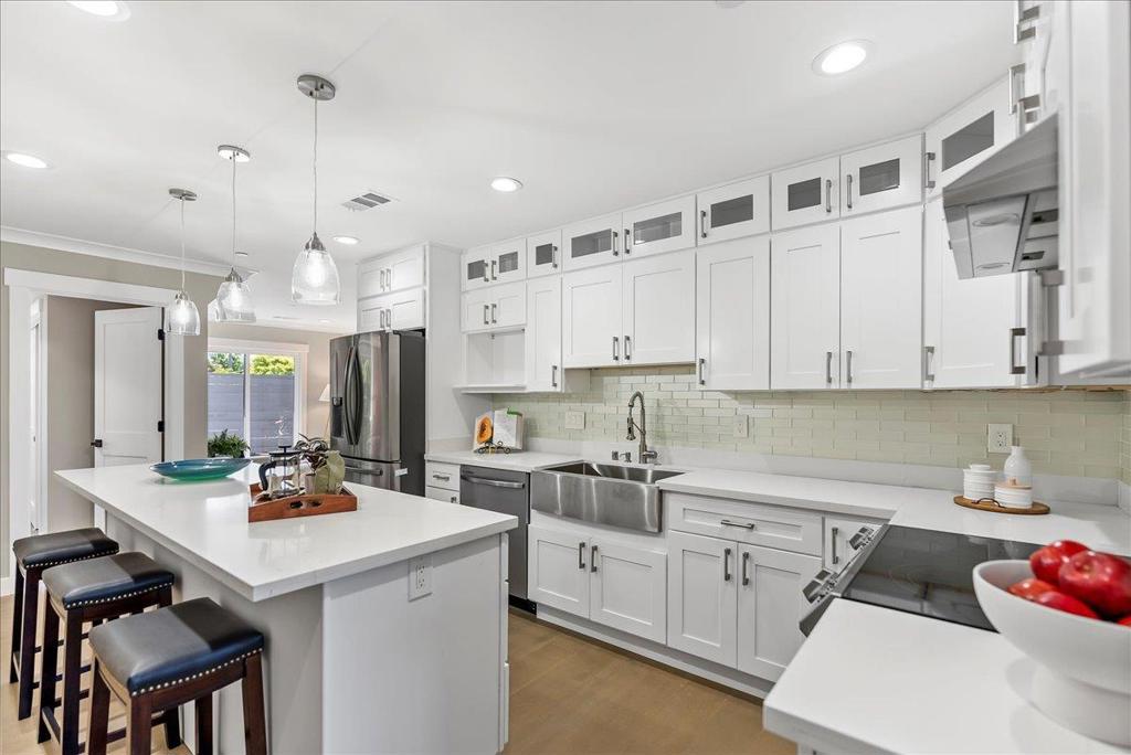 Newly constructed rebuild in San Mateo offers an impressive main house with an attached ADU, perfect for luxurious living & versatile use. The main house features 4 bedrooms, including a primary suite & 3 custom-designed bathrooms, spread across 1,562 sq. ft. of modern, elegant living space. Situated on a sprawling 8,800 sq. ft. corner lot, the home boasts a beautiful entry with high ceilings, separate dining & family areas & a gourmet chef's kitchen. The kitchen is equipped with high-end Samsung appliances, custom-made white shaker cabinetry, quartz countertops, a large island with seating & sophisticated lighting. Each bedroom offers ample closet space with custom shelving & the bathrooms are adorned with Italian tiles, Hansgrohe fixtures & TOTO toilets. Additional highlights include European white oak engineered flooring, Anderson windows throughout, brand new roof, fire sprinklers and an attached garage with an EV charger. Professionally landscaped front & backyard, features a new oversized stamped concrete driveway/walkways & automatic sprinklers. The newly constructed ADU, accessible through a separate entrance, adds an additional 572 square feet of living space. It includes 2 bedrooms, including a primary suite, 2 bathrooms, a separate HVAC system & new Samsung appliances.