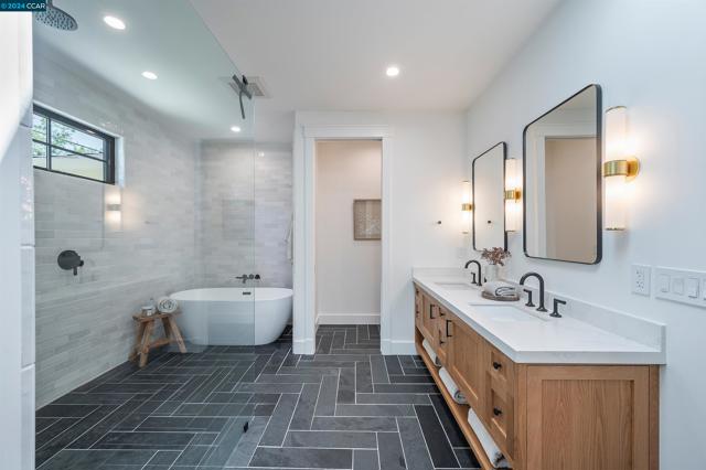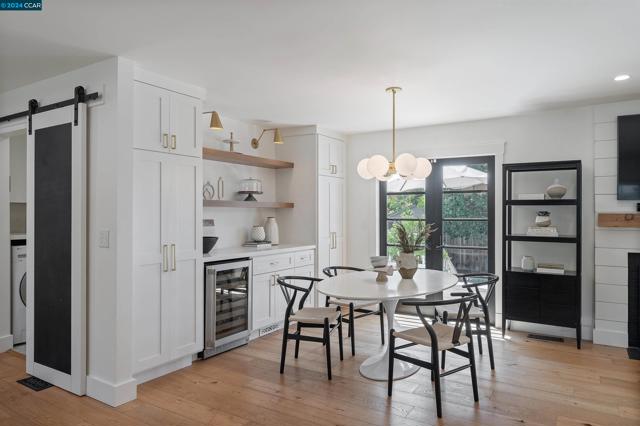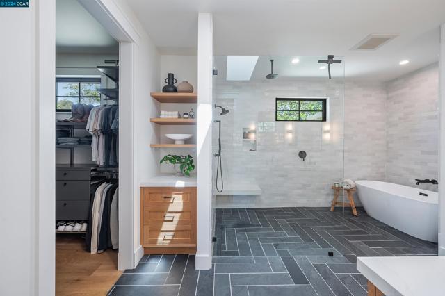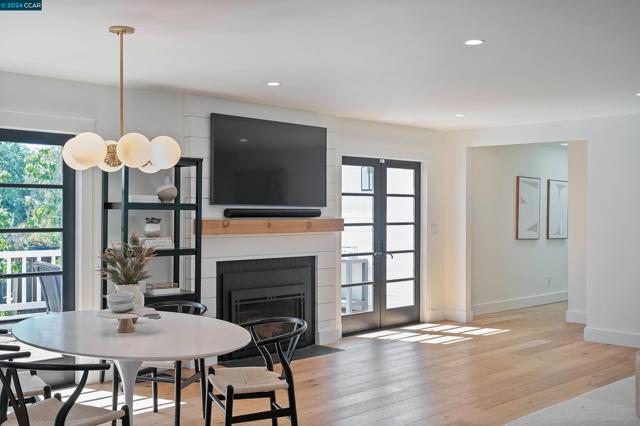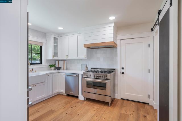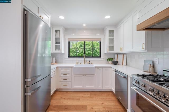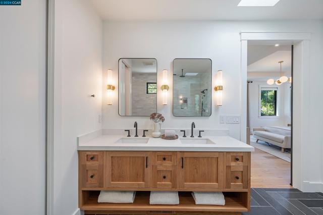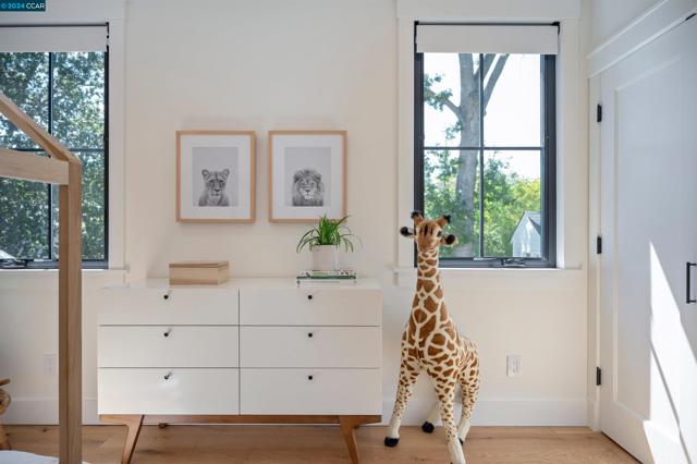 Discover the perfect blend of modern luxury and old-world charm in this stunning modern farmhouse. Meticulously designed and beautifully sunlit, every detail in this home has been thoughtfully crafted. Bask in the natural light streaming through large windows & skylights, accentuating the warm hardwood floors. The kitchen features custom wood cabinetry, stainless steel appliances, quartz counters, and high-end fixtures. Adjacent to the kitchen is the laundry room, along with a half bath showcasing a custom concrete sink. The open floor plan connects the kitchen, dining area, and living room. The dining area includes custom built-in cabinets. French doors on either side of the gas fireplace open to a deck, creating perfect flow for indoor-outdoor living & entertaining. The playhouse, tailor built to match the main house, adds a delightful touch. The spacious primary suite has 9.5' ceilings and French doors leading to a private balcony overlooking the yard. Separate space off primary has endless possibilities. The luxurious primary bath features a custom sliding barn door, a massive walk-in shower, a soaking tub, heated herringbone floors, a bespoke white oak vanity, built-ins & a large walk-in closet. A finished basement and SO. MUCH. MORE!