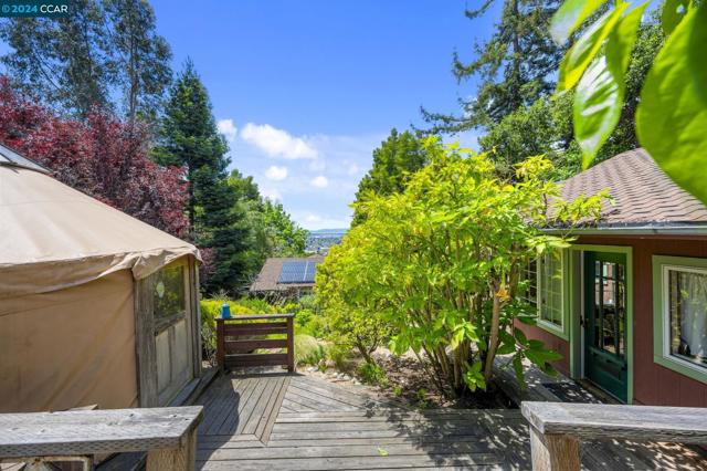 *Transparent Pricing!* This home qualifies for up to $10,000 in grants via PNC Bank! NOTE: Access via 7301 Sunkist, see directions: bit.ly/21-Mayfield -- Beautiful serene oasis with amazing garden, views, privacy and tranquility! This property includes 3 separate spaces: A 2 bed 1 bath main house, 1 bed 1 bath cottage w/ loft, and a bonus - a yurt! In the main residence, there is an abundance of natural light and breathtaking views can be seen from the living room, family room and kitchen. Large deck off of the family room, perfect for hosting gatherings and watching the sunset after a long day. This home has been upgraded with a 6kW solar panel system coupled with Tesla battery storage - say goodbye to blackouts and hello to a lower carbon footprint! In addition to the main house, there’s a charming cottage with 1 bed + a lofted sleeper area, ideal for guests, in-law quarters, or a peaceful home office retreat. Across from the cottage is a yurt, perfect for an artist's studio, a workshop or home office/gym. Nature surrounds the property, adding privacy, fresh air, and lush greenery w/ mature fruit trees and gorgeous landscaping. Close to amenities, easy access to 580 fwy, Laurel & Dimond District, the Oakland Zoo and hundreds of trails at Reinhardt Redwood Regional Park.