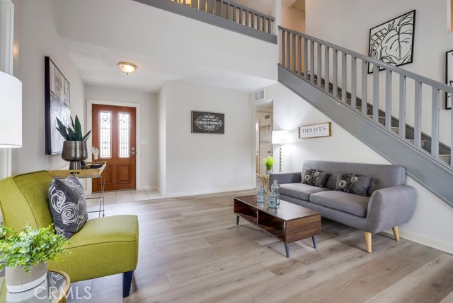 Welcome home to this beautifully updated 3-bedroom, 2-bath townhouse. One large bedroom downstairs and 2 upstairs. The 3rd bedroom is currently used as an office loft, but has a window and closet area that can easily be turned into a bedroom. Livingroom features a cozy fireplace, perfect for relaxing evenings. The home has new vinyl wood flooring throughout, giving it a modern and stylish look. The large kitchen offers ample space for cooking and entertaining, has white counters, dishwasher and view of the lush greenbelt. Fresh interior paint brightens the entire space, making it move-in ready. Inside laundry, 2 car garage, private patio area, and air-conditioning add to this Situated in a well-maintained community, with amenities including a pool and clubhouse. Don't miss this opportunity to live in comfort and style!