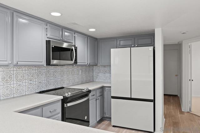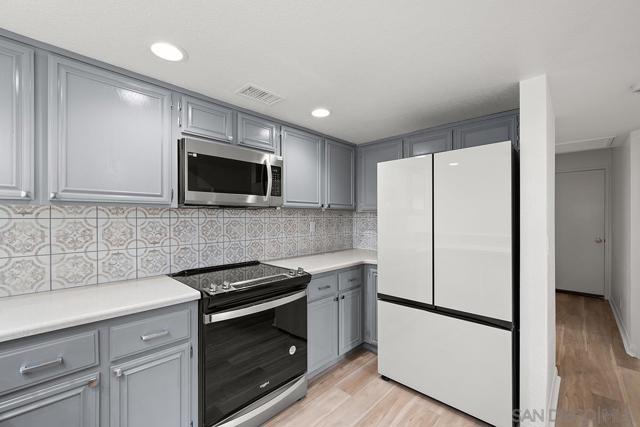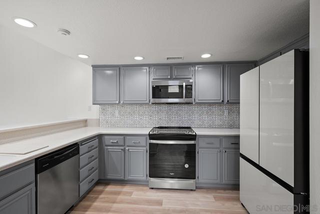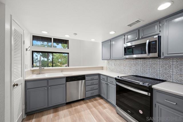 This turn key Townhome has been remodeled in all the right places and offers a view balcony to enjoy your morning coffee. The new master bathroom retreat offers a spa feel everyday! You wont be disappointed with the large master bedroom dimensions and massive walk in closet either. The excessive new lighting in the massive walk in closet will be a welcomed change to the dark traditional closet your used to. The home has a modern lighting upgrade throughout that will highlight the new flooring and designer paint. Most of the appliances in the kitchen, including the garbage disposal, are brand new. The cabinets have been given a nice facelift with custom paint, new hinges, and brushed nickel hardware. Are you looking for a place to store some cash! This unit is a great investment. With all of the updates, you wont need to worry about maintenance anytime soon The garage offers ample space for two vehicles, laundry, and storage. The air conditioning unit is less than a year old, and the landing leading to the front door has been completely replaced. Tierra Santa is one of the more desirable locations to live in San Diego County. Not only is it central to the city, it is also a really safe community with great schools.