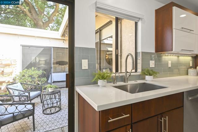 Welcome to your dream townhome in Walnut Creeks Sunset Park! This exquisite residence offers an abundance of natural light, private courtyards, and tasteful updates throughout. Step into the chef's kitchen, featuring soft-close cabinets, quartz countertops, and stunning glass tiles—an ideal space for culinary creativity. Entertain guests in the airy living room, complete with a cozy fireplace, or savor a quiet morning in the flower-studded courtyard. Retreat to the luxurious primary suite, boasting a spa-like ensuite and tranquil courtyard views through a sliding glass door. The secondary bedroom offers its own serene escape with a private view of the entry garden. Attached two-car garage. Conveniently located near Countrywood Shopping Center, the Contra Costa Canal Trail, Heather Farms Park, and John Muir Hospital, this townhome provides easy access to transportation and all the attractions of the Bay Area. Don't miss the opportunity to call this stunning Walnut Creek residence home!