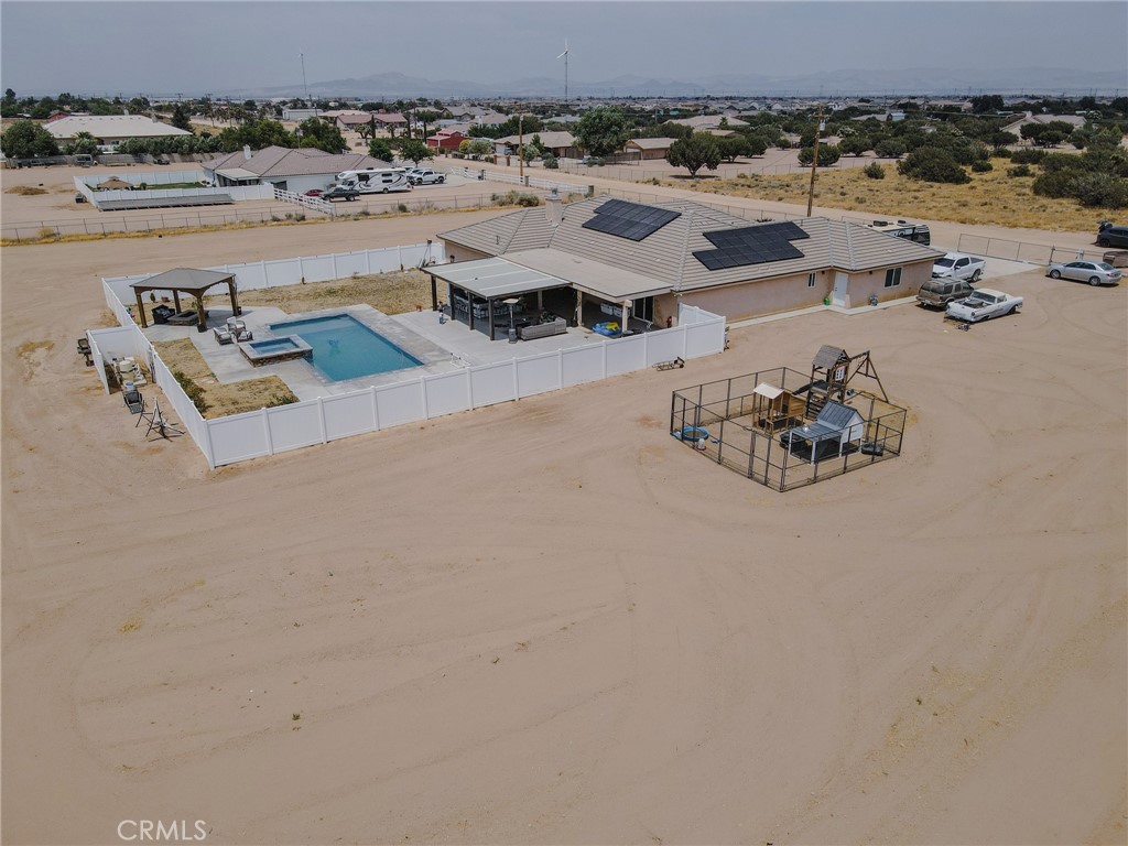 ****Back on the market due to Buyers not being able to perform. Welcome to your own private paradise nestled in the heart of Hesperia, California! This captivating residence, constructed in 2017, is a testament to luxurious living with its expansive five bedrooms and three bathrooms spread across over 3000 square feet of meticulously crafted space. As you step onto the sprawling 2-acre property, you're greeted by an enchanting outdoor oasis. Brand new outdoor kitchen with gas hookups. The extended patio beckons you to unwind and entertain with ease, boasting a convenient outdoor bathroom for seamless alfresco gatherings. Picture-perfect moments await by the sparkling blue pool and Jacuzzi, where you can bask in the California sun or stargaze in the evening tranquility. Inside, the home exudes a perfect blend of elegance and functionality. The updated kitchen is a chef's delight, featuring sleek countertops, modern appliances, and ample storage space. Whether you're hosting intimate dinners or grand celebrations, this culinary haven is sure to impress. Every corner of this residence exudes timeless sophistication, from the meticulously chosen finishes to the gleaming hardwood floors that flow seamlessly throughout. Gather around the cozy fireplace in the spacious living area, creating cherished memories with loved ones year-round. Privacy is paramount in this idyllic retreat, offering a sanctuary away from the hustle and bustle of everyday life. With lush landscaping and expansive grounds, you'll feel a world away while still being conveniently located near all the amenities Hesperia has to offer. For those who love to entertain, this home is a true gem. With a three-car garage providing ample storage space and room for your vehicles, you'll have plenty of room to host guests and create unforgettable experiences in your own personal paradise. Don't miss the opportunity to make this entertainer's dream home yours. Embrace the epitome of California living and start creating the life you've always envisioned in this exquisite Hesperia sanctuary. Welcome home!