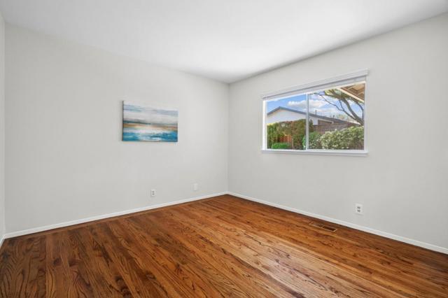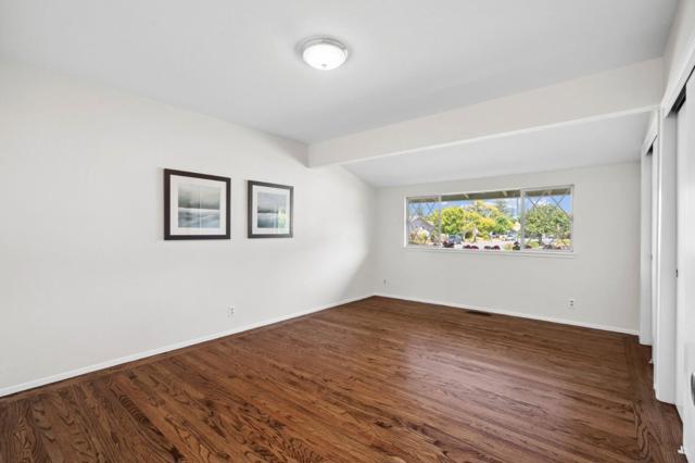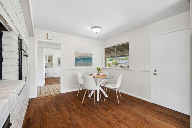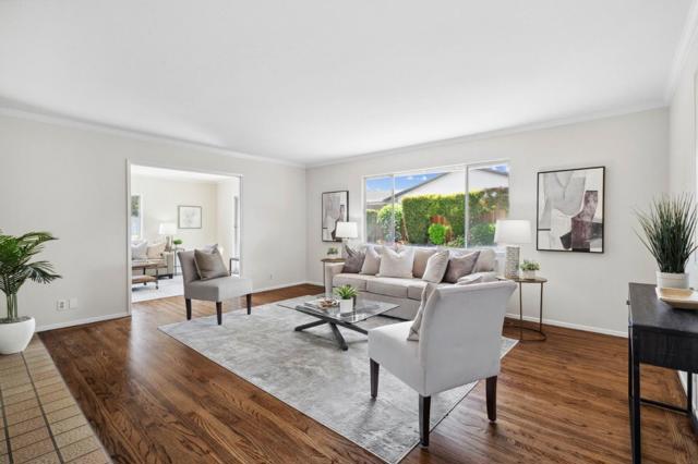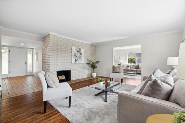 Welcome to this charming Brown & Kauffmann home, built in 1958 and expanded in 1965, featuring newly refinished hardwood floors throughout. The inviting entryway leads to a cozy living room with a painted brick fireplace. The spacious family room, with sliding glass doors, opens to a landscaped backyard perfect for entertaining. The kitchen boasts new quartz countertops, custom painted cabinetry, and stainless steel appliances. The main bedroom features new carpeting, a built-in desk, two closets, backyard access, and an ensuite bathroom. Three additional bedrooms offer comfort and versatility. The main bath includes a walk-in shower and vanity, while the hall bath features dual sinks and a shower over tub. Enjoy the corner lot with a landscaped front yard, two-car garage, and a fenced backyard with a patio. Walking distance to Serra Park, top-rated schools, and local preschools. Perfectly situated for the ideal Silicon Valley lifestyle.