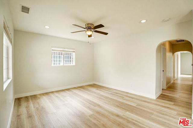Welcome to your charming 3-bed, 2-bath bungalow, meticulously restored to perfection. Step into the exquisite designer kitchen, illuminated by contemporary fixtures. Low maintenance laminate flooring leads to a private master suite with en suite bathroom and ample closet space, while two more bedrooms and a spacious laundry room offer comfort and convenience. Additional storage awaits in the rear shed. Enjoy year-round comfort with central air conditioning and heat. The garage has been transformed into a versatile space with a bathroom, kitchenette, laminate flooring and new windows. Welcome to modern elegance and comfort! Close proximity to USC, Sofi Stadium, BMO Stadium, DTLA, LAX, transportation and freeway access.