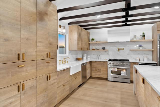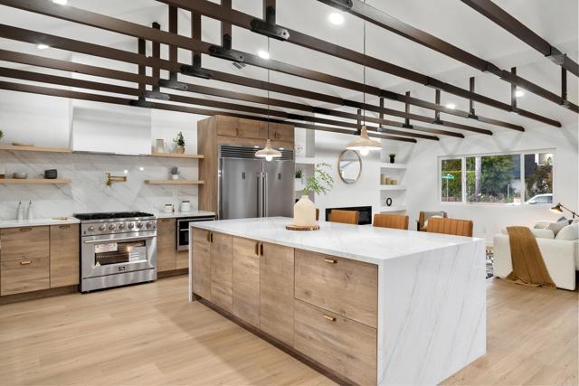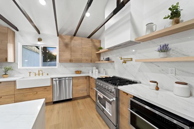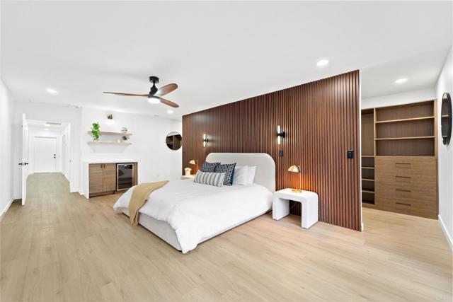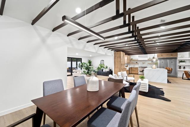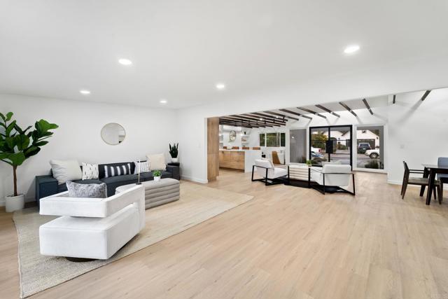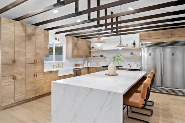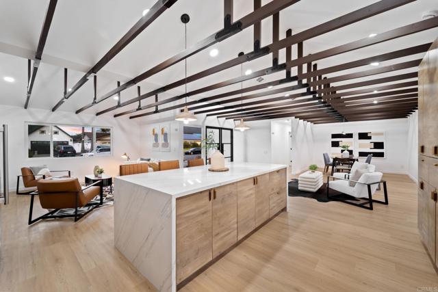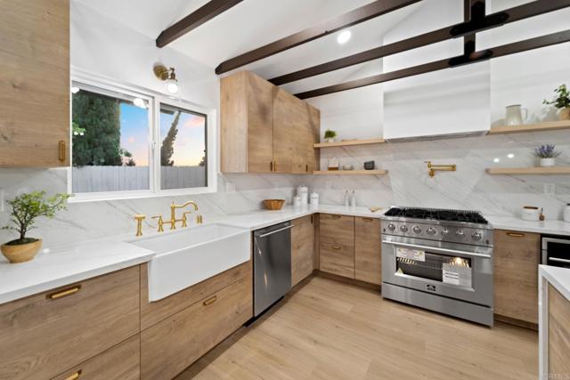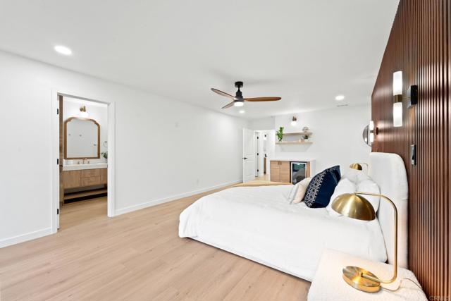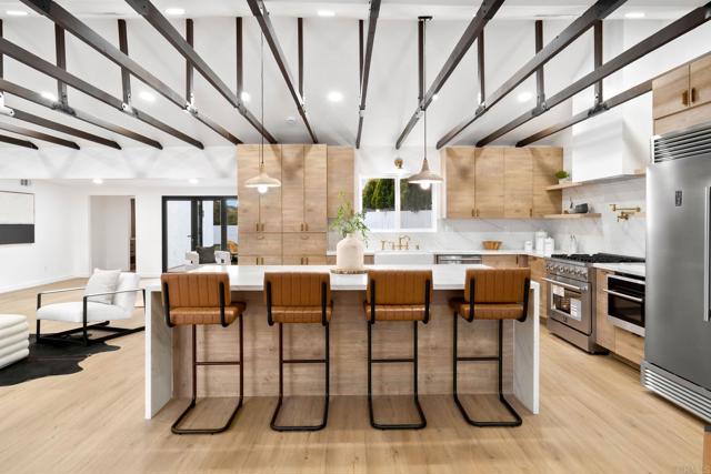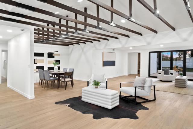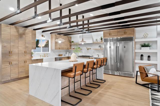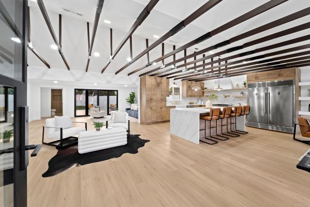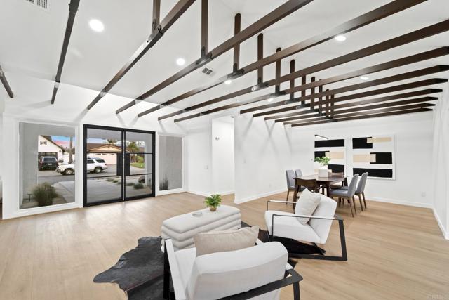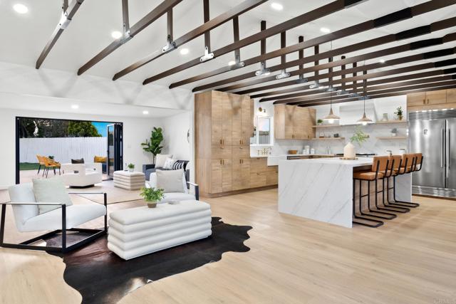 Upon entering 6960 Casselberry Way you are greeted by open-beamed ceilings, a seamless open floor plan, and an abundance of natural light. This home is a stunning and modern residence nestled in a prime Del Cerro/San Carlos location. This elegant single story home boasts 4 bedrooms and 4 bathrooms, and a generous square footage of 2551 square feet, situated on a spacious corner lot spanning 11600 square feet. This was the previous home of the original builder/salesperson of the tract. The kitchen is a culinary enthusiast's dream, complete with a 36” gas range, 6 burner cooktop, pot filler, and a multitude of cabinets. The island with a waterfall edge offers plenty of space for effortless meal preparation and a gathering place for family and friends. Bifold doors at the family room and primary bedroom effortlessly connect the interior living spaces to the outdoors, creating a harmonious blend of indoor-outdoor living. The large backyard could accommodate a pool or leave it as-is and enjoy the space. The residence is enhanced by sought-after amenities, including air conditioning to ensure year-round comfort and a luxurious hot sauna for relaxation and personal wellness. Step into the primary-suite and escape from the day. This space offers a beverage refrigerator and a walk-through closet behind the stylish bed wall. The ensuite bathroom offers a private water-closet and large walk in shower. The laundry room is located inside the home, and has a wash basin and cabinetry. The three bay garage has a closet to keep items out of site and bring those desert toys or extra car. The single bay garage offers a drive through to the side yard. The corner lot location provides privacy and a sense of exclusivity. This exceptional property at 6960 Casselberry Way presents a rare opportunity to experience contemporary elegance and modern living at its finest. Don't miss the chance to make this sophisticated residence your new home.