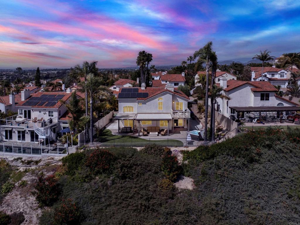 Have you been dreaming of panoramic ocean views and endless sunsets? This just may be your dream come true and forever home! With breathtaking views overlooking the coast of Carlsbad and Lake Calavera Preserve, this stunning home is located in the highly sought after gated community of Ocean Terrace! Beautifully remodeled from top to bottom with so many amazing updates, soaring ceilings and tons of natural light! With plentiful cabinetry and gorgeous granite counters, SS appliances and a big pantry, your new kitchen will be a joy to cook in! Imagine savoring your morning coffee and a good book on the balcony of your romantic primary suite, complete with a massive en-suite bath, a glamorous soaking tub, separate shower, dual vanities, plus a huge walk in closet! You'll love relaxing and entertaining in your dream back yard, featuring a heated Salt Water Spa, a massive-recently added paver patio + Alumawood pergola, a built in natural gas fire pit, newly installed mood lighting, and a low maintenance turf lawn! For total peace of mind..no expense was spared and no details were overlooked in the care and maintenance of this home! The roof was completely re-felted when the SOLAR and EV charging were recently installed! And did I mention the SOLAR is totally PAID OFF?! With energy efficient dual pane windows, whole house water filtration, carpet, newer paint, LVP flooring, and so much more! Wait, there's more! Do you need related living or a work from home space? We've got you covered with a main floor bedroom and full bath too! Conveniently located just minutes to sandy beaches, picturesque hiking trails, world class dining, shopping, golf, and so much more! Welcome Home!