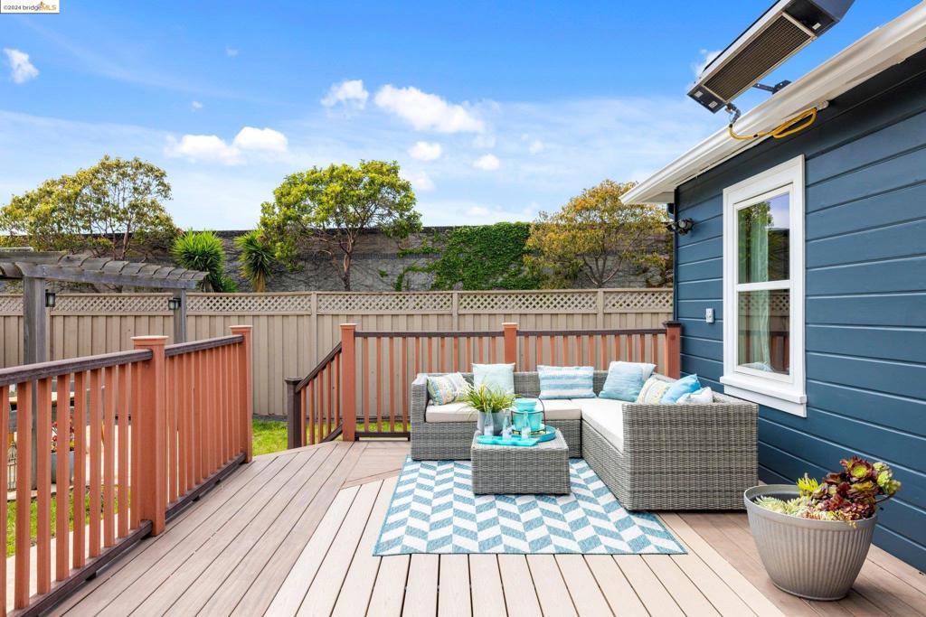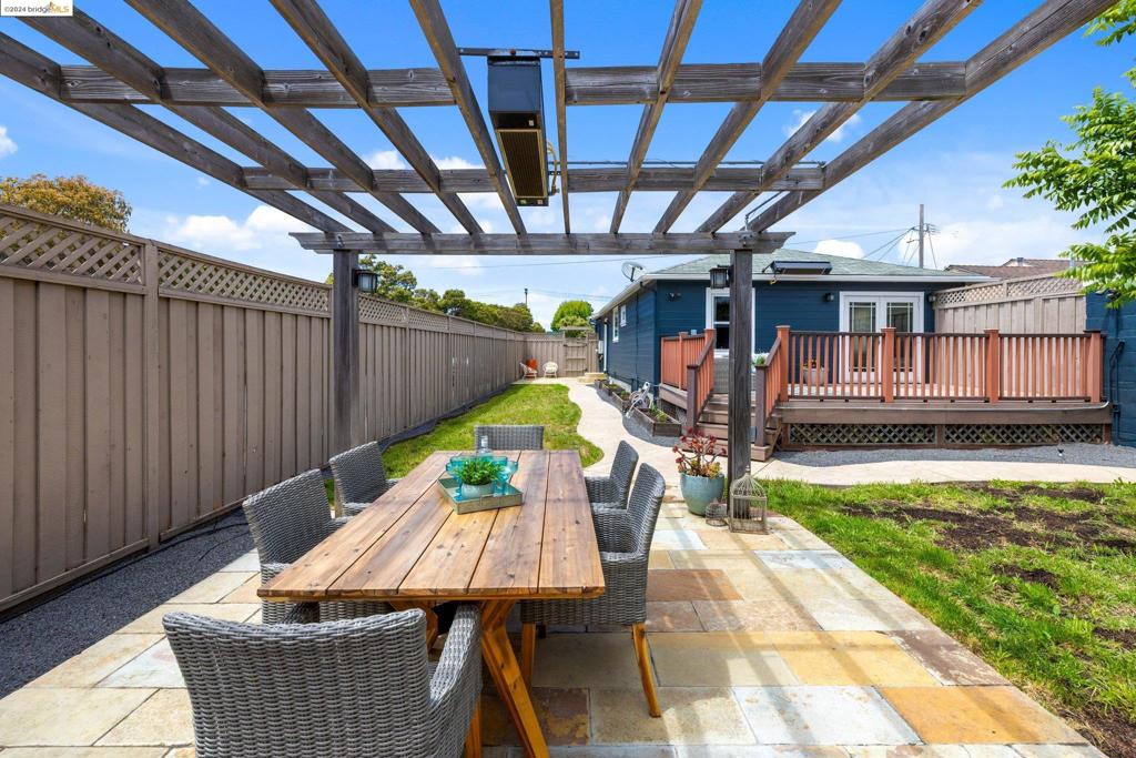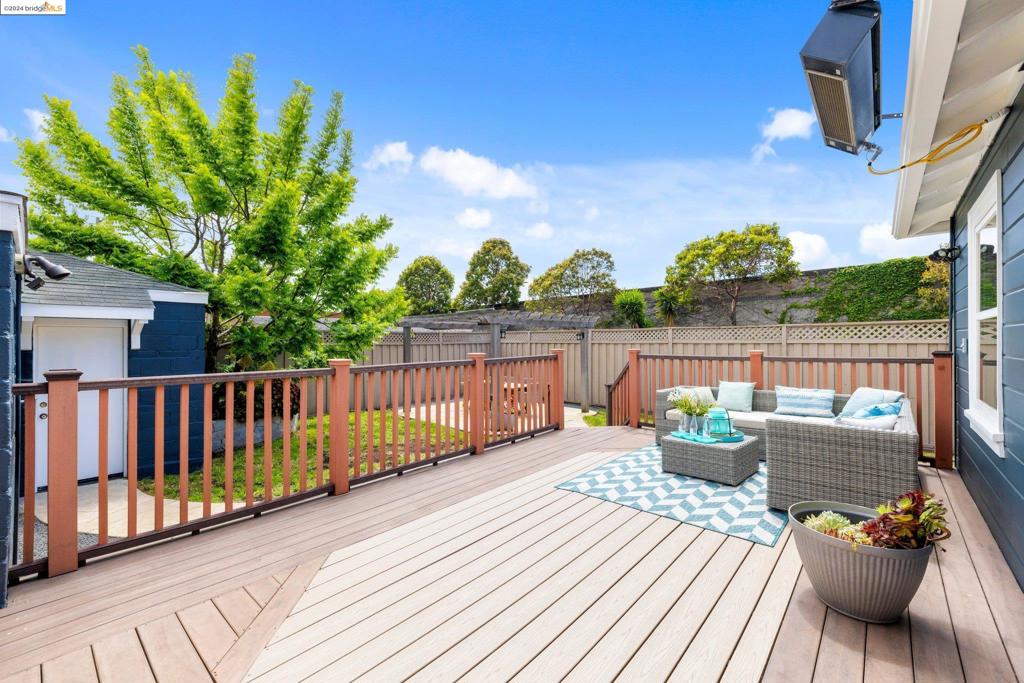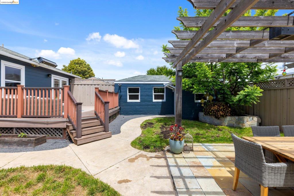 TRANSPARENT PRICE! On a grassy corner lot in Richmond Annex sits this move-in ready bungalow. A bright living room and dining room with cherrywood accents, oak floors welcome you with thoughtful details throughout. The kitchen features custom cabinets, granite counters, and modern appliances. Three roomy bedrooms offer large closets and privacy. A rear bedroom has French doors leading to the deck. A luxurious bathroom boasts a double sink vanity, exquisite tile, Kohler faucets, and a Toto washlet. An expansive deck and pergola have gas heaters that provide year-round outdoor enjoyment. Ample parking includes a long driveway and a detached garage, perfect for a workspace. The ideal location has quick access to AC Transit, BART, and freeways to Berkeley, Oakland, SF, and the Richmond Bridge.