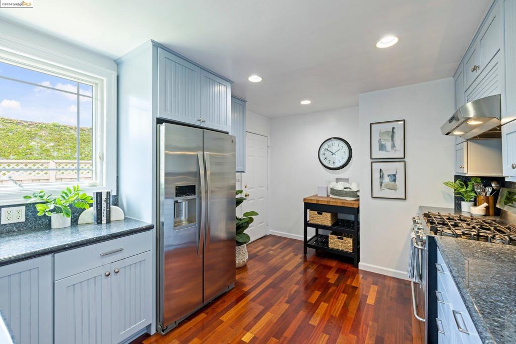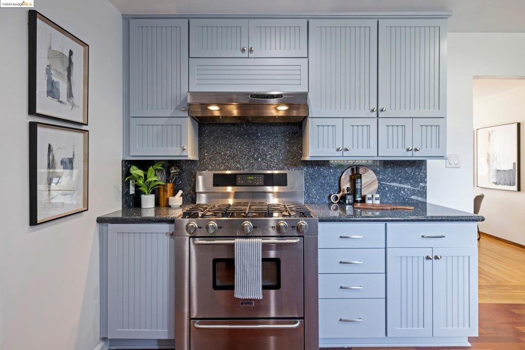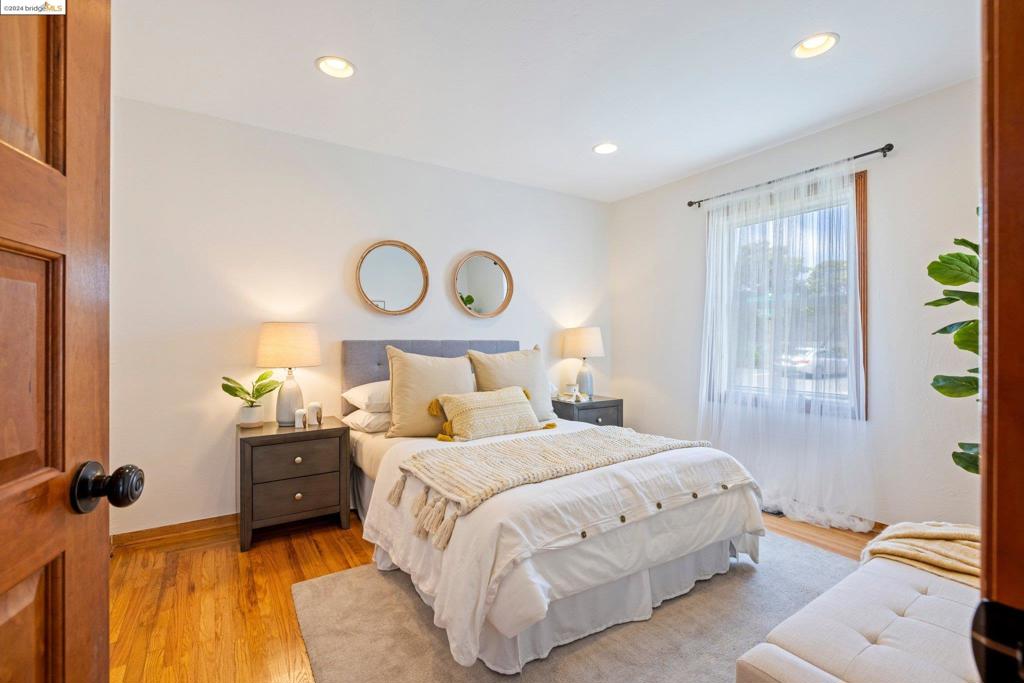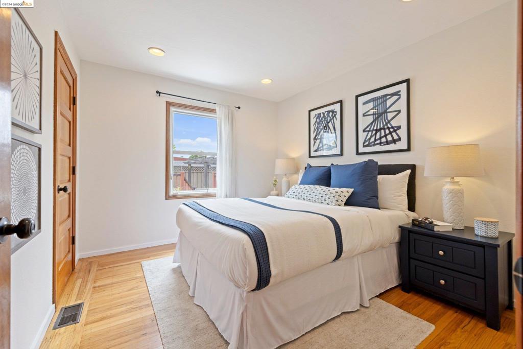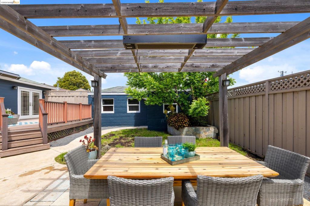 TRANSPARENT PRICE! On a grassy corner lot in Richmond Annex sits this move-in ready bungalow. A bright living room and dining room with cherrywood accents, oak floors welcome you with thoughtful details throughout. The kitchen features custom cabinets, granite counters, and modern appliances. Three roomy bedrooms offer large closets and privacy. A rear bedroom has French doors leading to the deck. A luxurious bathroom boasts a double sink vanity, exquisite tile, Kohler faucets, and a Toto washlet. An expansive deck and pergola have gas heaters that provide year-round outdoor enjoyment. Ample parking includes a long driveway and a detached garage, perfect for a workspace. The ideal location has quick access to AC Transit, BART, and freeways to Berkeley, Oakland, SF, and the Richmond Bridge.