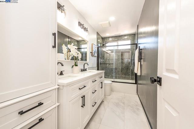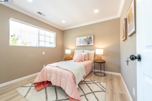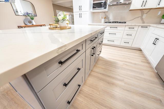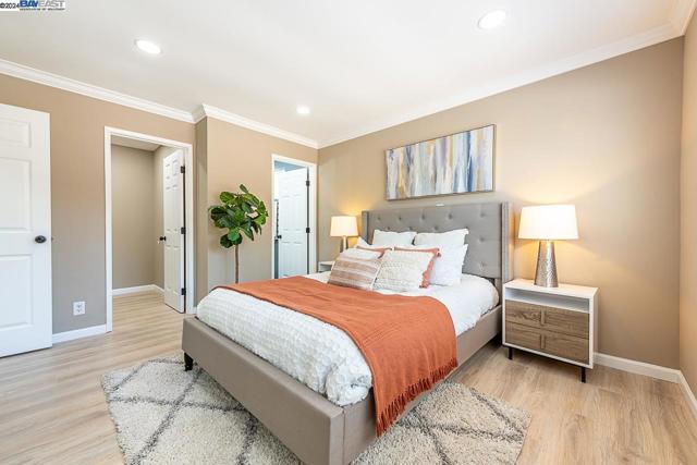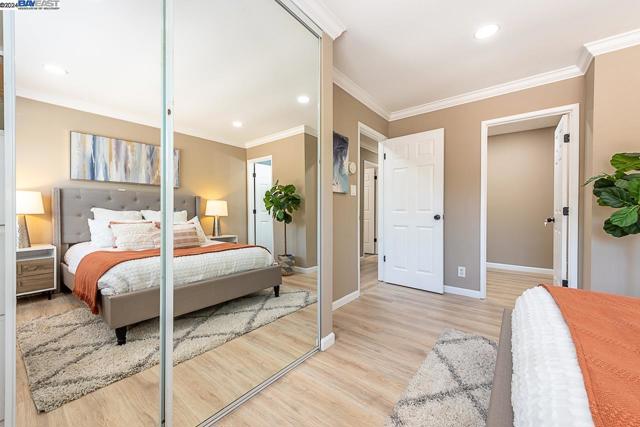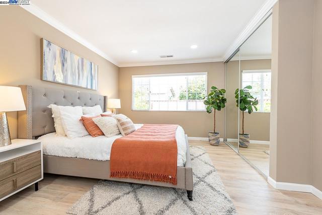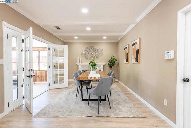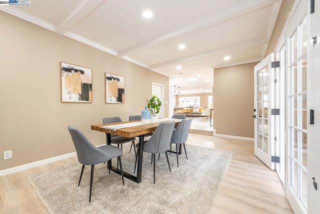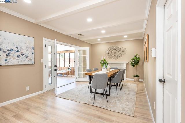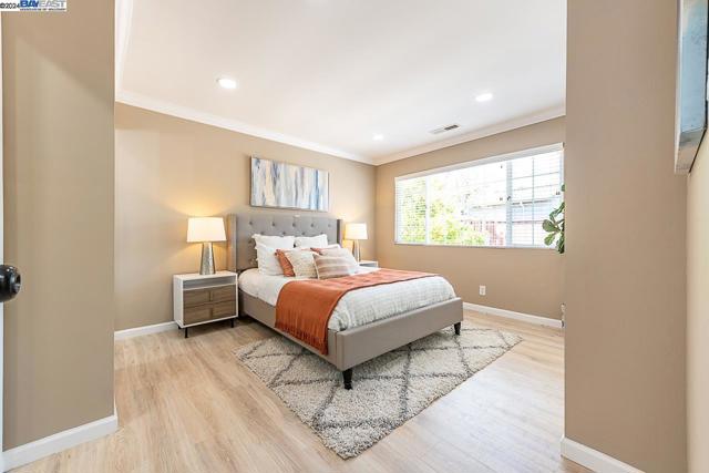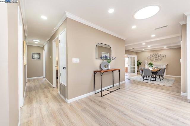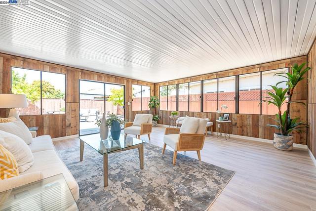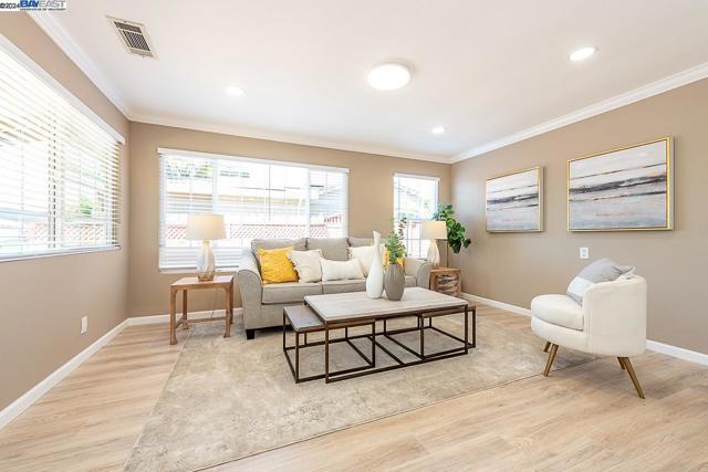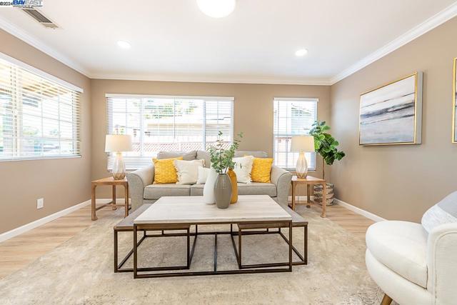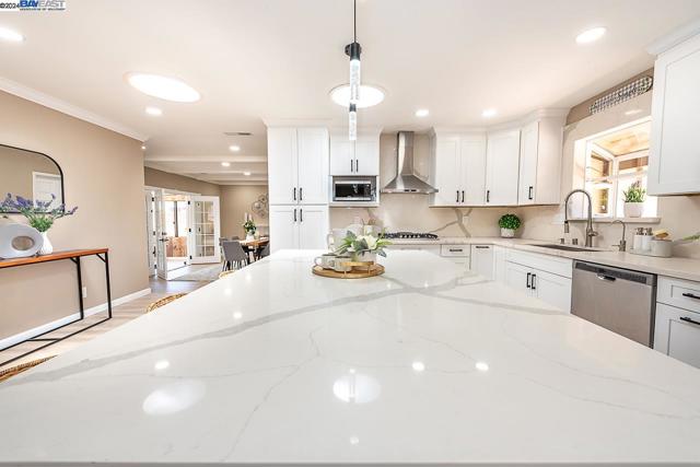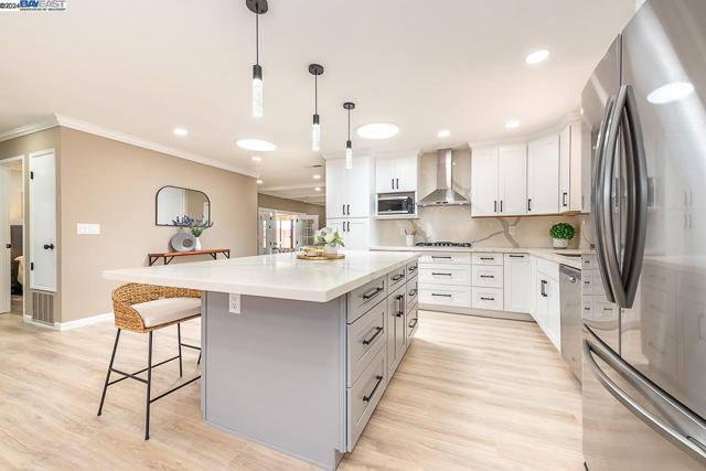 Welcome to this stunning home offering contemporary, open-concept living. Newly remodeled with impressive upgrades and high-end finishes including fully paid solar. Walk through your large front yard enclosed with a private patio so you can enjoy the outdoors. The formal living room opens to the fully remodeled kitchen. A new gourmet kitchen offering a huge island with pendant lighting, Quartz counters with full-height backsplash and new stainless steel appliances with a gas stove. The formal dining area has french doors leading to the patio room which offers even more living space. Spacious bedrooms and fully remodeled bathrooms with custom finishes. A large, low-maintenance yard offers even more space to relax and unwind. Upgraded throughout with solar panels, new flooring and paint, smart home devices and more! Served by #1 Delaine Eastin Elementary. Great location near I-880/84/92, BART, shopping and major employers of the Bay Area.