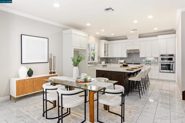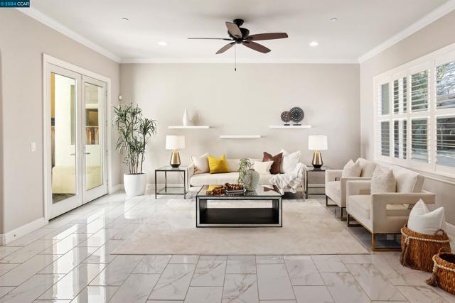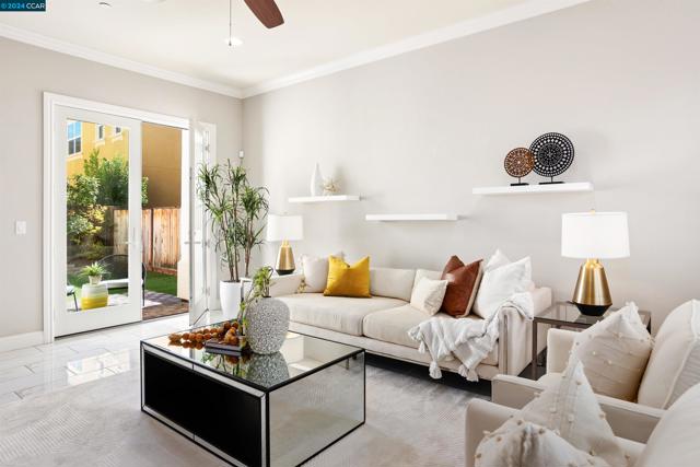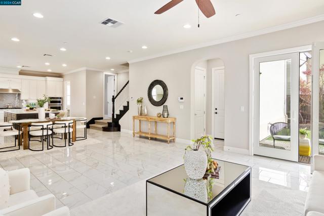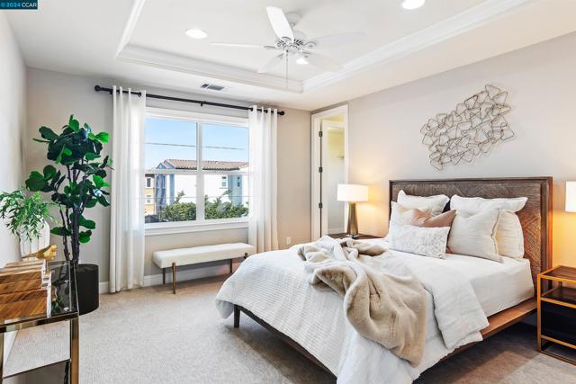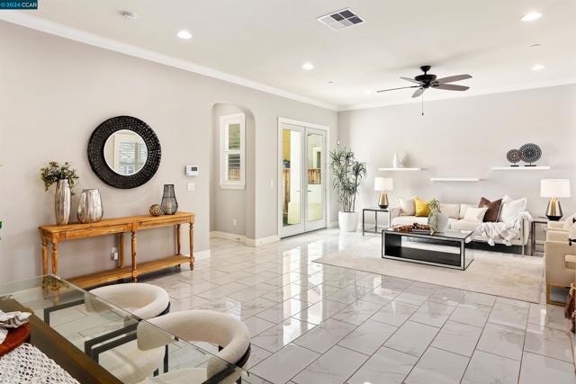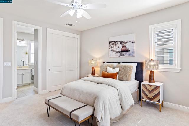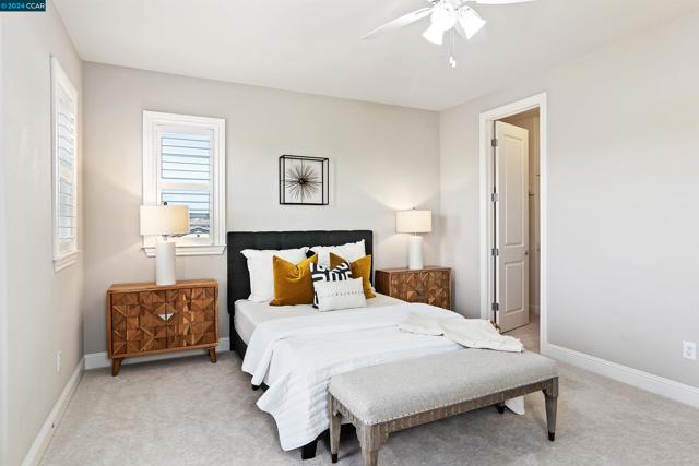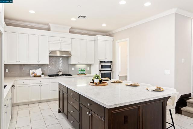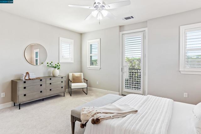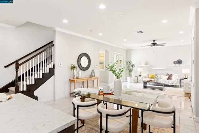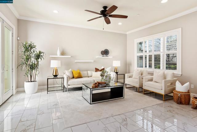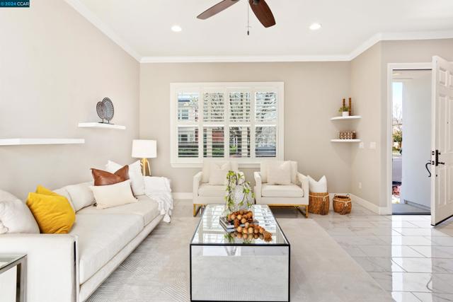 Sensational Gale Ranch like-new move-in ready home with gorgeous finishes, fabulous open concept -level floorplan. Located in San Ramon’s coveted master-planned community w/in walking distance to top-rated SRVUSD schools (Quail Run Elementary, Gale Ranch Middle, Dougherty Valley HS), multiple parks, and walking trails. 2921+/-SF. 4 bds. 4.5 bths. 2 primary suites include one with coffered ceiling, dual-sink vanity, soaking tub, oversized shower w/dual showerheads & private 3rd-level primary retreat w/en suite. Walk-in closets. French doors to front-facing Juliet balconies. Large loft/media rm w/built-in window seat. Main-level great rm. Spacious living rm w/French doors to private, low-maintenance backyard. Dining area open to chef’s kitchen appointed w/quartz counters, glass subway tile backsplash, dual-toned cabinets, upper glass-faced cabinets, walk-in pantry, oversized island/breakfast br. Stainless LG & KitchenAid appliances. Marble tile, plush carpet, engineered hardwood, high ceilings, plantation shutters, crown molding, recessed lights, ceiling fans. 2-car finished garage. Tankless water heater. Central AC. Laundry rm w/cabinets. Near The Plaza at Gale Ranch, The Bridges Golf Club, City Center at Bishop Ranch, farmers markets. Easy freeway, Mt. Diablo access.