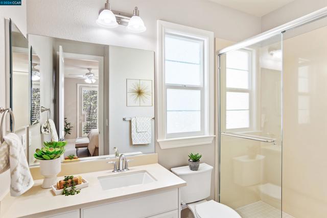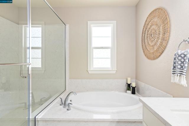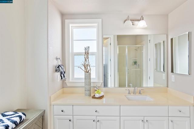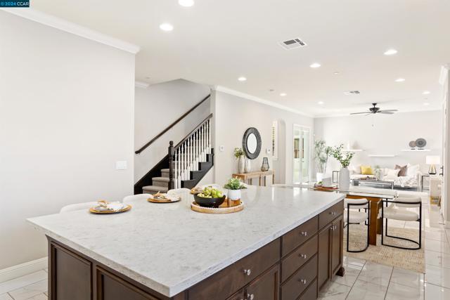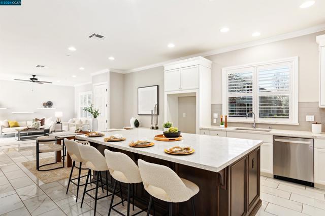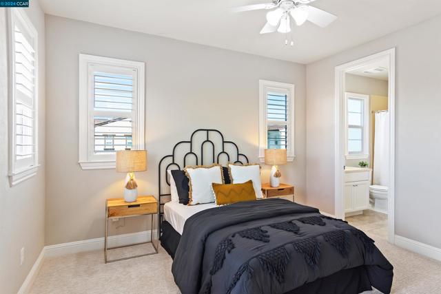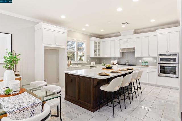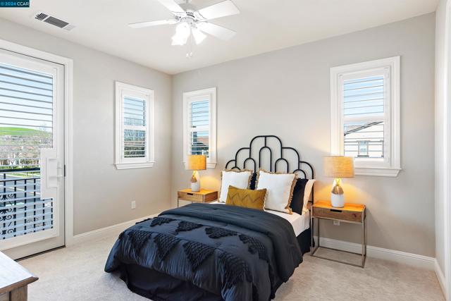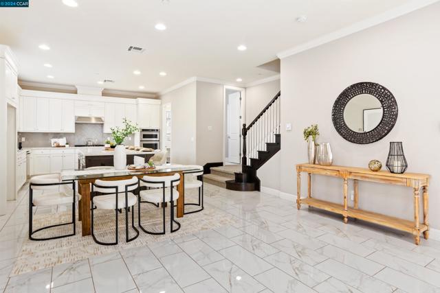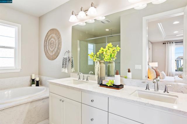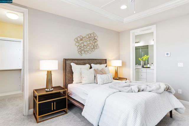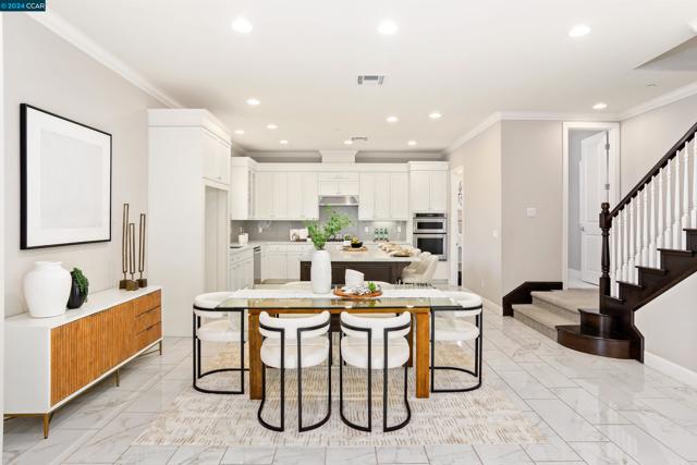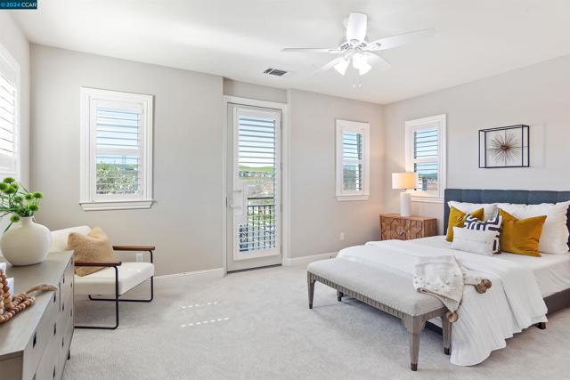 Sensational Gale Ranch like-new move-in ready home with gorgeous finishes, fabulous open concept -level floorplan. Located in San Ramon’s coveted master-planned community w/in walking distance to top-rated SRVUSD schools (Quail Run Elementary, Gale Ranch Middle, Dougherty Valley HS), multiple parks, and walking trails. 2921+/-SF. 4 bds. 4.5 bths. 2 primary suites include one with coffered ceiling, dual-sink vanity, soaking tub, oversized shower w/dual showerheads & private 3rd-level primary retreat w/en suite. Walk-in closets. French doors to front-facing Juliet balconies. Large loft/media rm w/built-in window seat. Main-level great rm. Spacious living rm w/French doors to private, low-maintenance backyard. Dining area open to chef’s kitchen appointed w/quartz counters, glass subway tile backsplash, dual-toned cabinets, upper glass-faced cabinets, walk-in pantry, oversized island/breakfast br. Stainless LG & KitchenAid appliances. Marble tile, plush carpet, engineered hardwood, high ceilings, plantation shutters, crown molding, recessed lights, ceiling fans. 2-car finished garage. Tankless water heater. Central AC. Laundry rm w/cabinets. Near The Plaza at Gale Ranch, The Bridges Golf Club, City Center at Bishop Ranch, farmers markets. Easy freeway, Mt. Diablo access.
