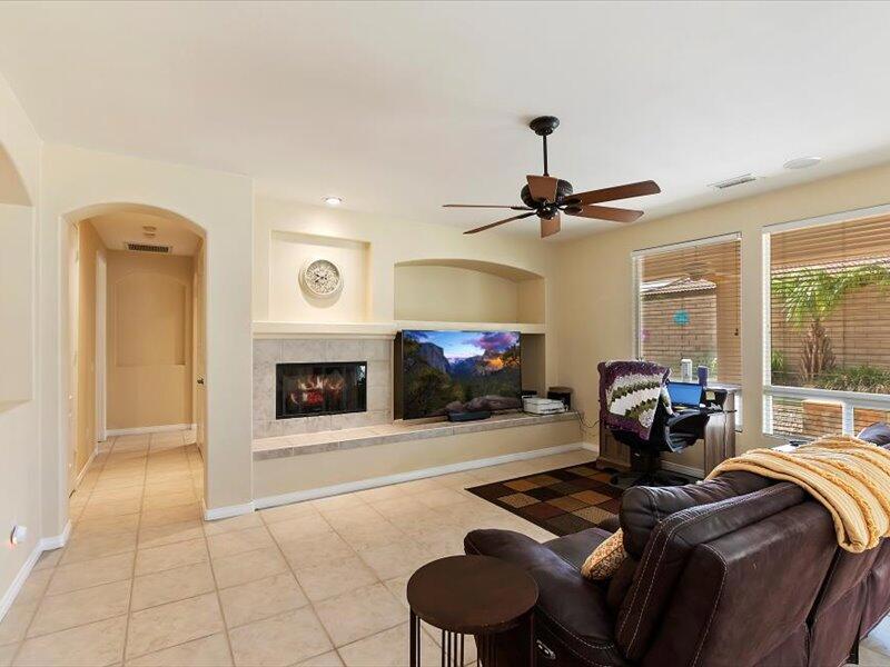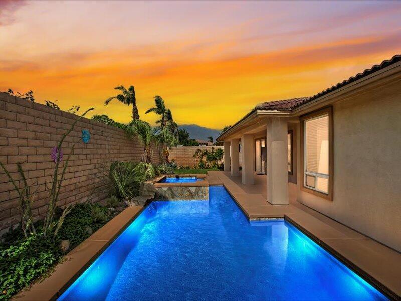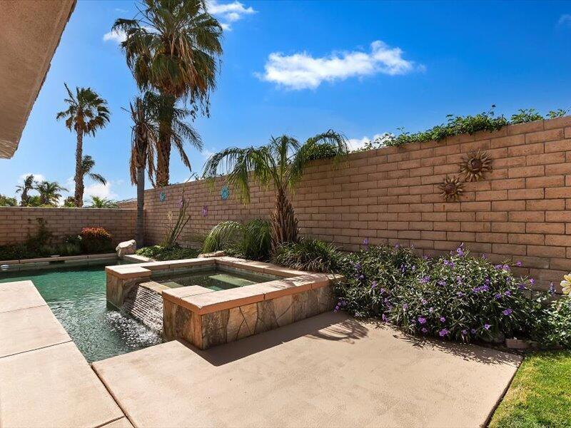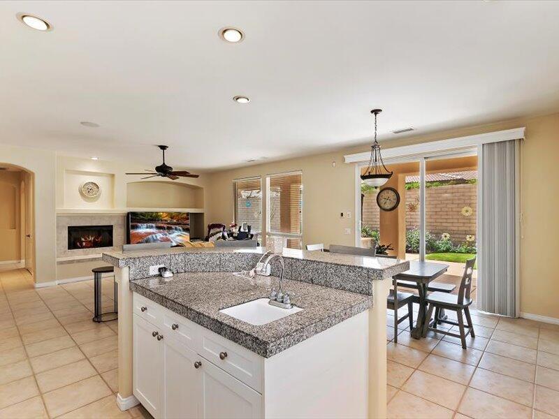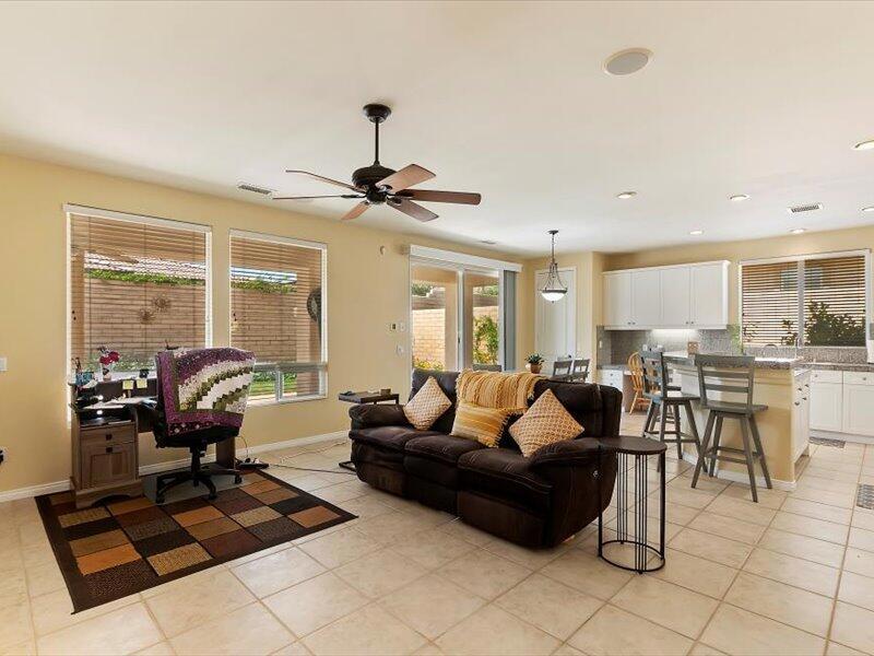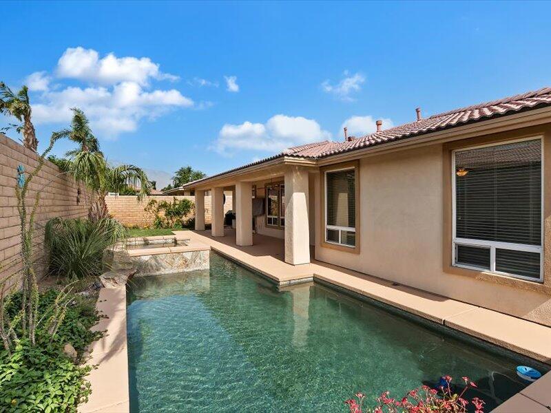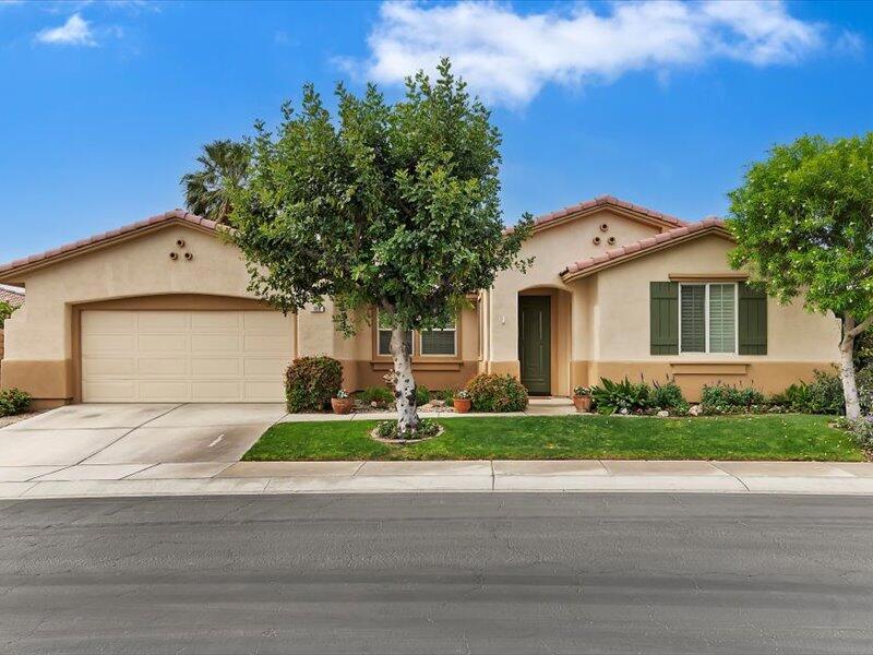 The Bolgheri floor plan with its 9' high ceilings throughout is the most popular model of the Siena Collection. Some features offered... Fresh Paint inside and out, Plantation Shutters, new flooring in front rooms , Professional landscaped, much more... Located behind the walls of the Tuscany Gated Community... on the southside of the Fountain. ...You'll discover it's a great place to chill in the backyard with your Private Pool and Spa and enjoy amazing views of the San Jacinto mountains with the amazing Sunsets! This model features a separate dining room/ OPT Den., Great room w/ Fireplace, built-in Media Niche and surround sound...Kitchen features custom raised maple cabinetry, granite kitchen counters and Island w/wet bar...also Large Master Bedroom with walk-in shower & oversize soaking tub, dual zoned A/C, Security system, oversized garage w/lots room for storage, low maintenance yard.. Buyer will appreciate the low monthly electric bills as the home is equipped with Solar Panels....There is a Solar Lease on the property with 9 years remaining, w/ a low monthly payment of approximately $299.... also low monthly HOA only $227..which includes cable & internet..plus Community Pool & Spa, Tot Lot,Dog Park, and abundance of open space to walk,jog,etc. behind the gated community..