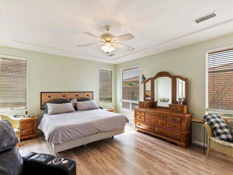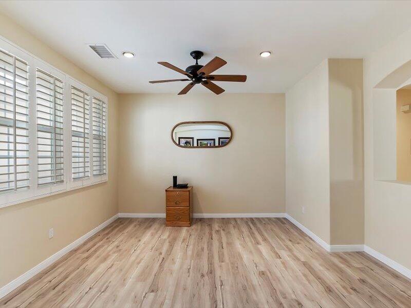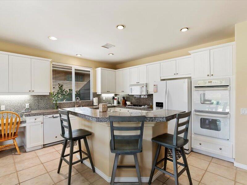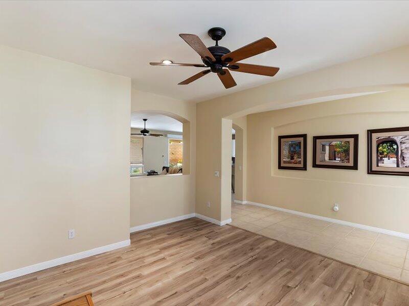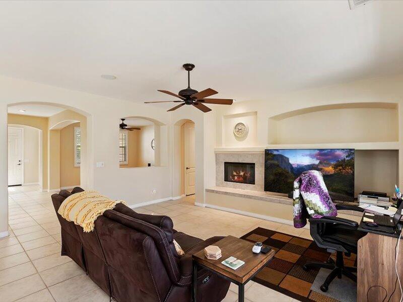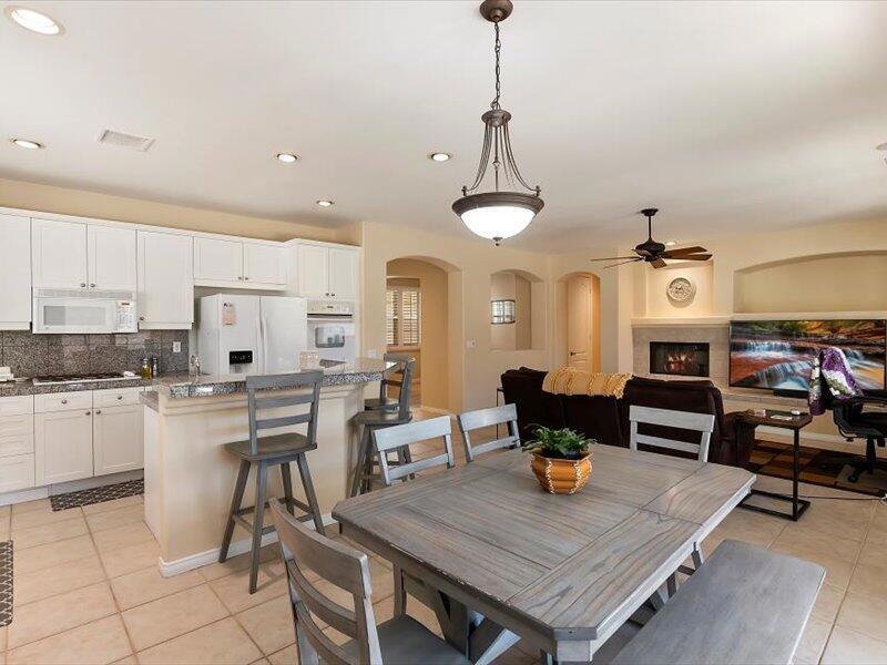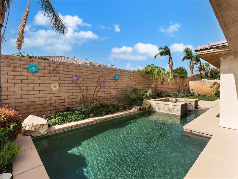 The Bolgheri floor plan with its 9' high ceilings throughout is the most popular model of the Siena Collection. Some features offered... Fresh Paint inside and out, Plantation Shutters, new flooring in front rooms , Professional landscaped, much more... Located behind the walls of the Tuscany Gated Community... on the southside of the Fountain. ...You'll discover it's a great place to chill in the backyard with your Private Pool and Spa and enjoy amazing views of the San Jacinto mountains with the amazing Sunsets! This model features a separate dining room/ OPT Den., Great room w/ Fireplace, built-in Media Niche and surround sound...Kitchen features custom raised maple cabinetry, granite kitchen counters and Island w/wet bar...also Large Master Bedroom with walk-in shower & oversize soaking tub, dual zoned A/C, Security system, oversized garage w/lots room for storage, low maintenance yard.. Buyer will appreciate the low monthly electric bills as the home is equipped with Solar Panels....There is a Solar Lease on the property with 9 years remaining, w/ a low monthly payment of approximately $299.... also low monthly HOA only $227..which includes cable & internet..plus Community Pool & Spa, Tot Lot,Dog Park, and abundance of open space to walk,jog,etc. behind the gated community..