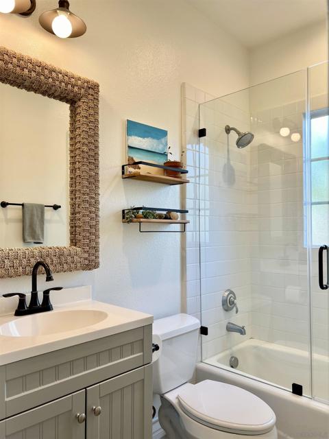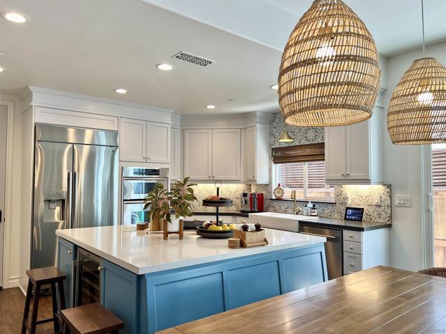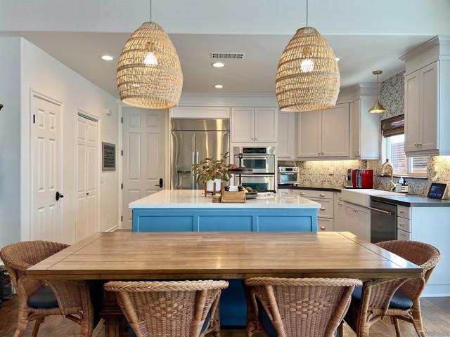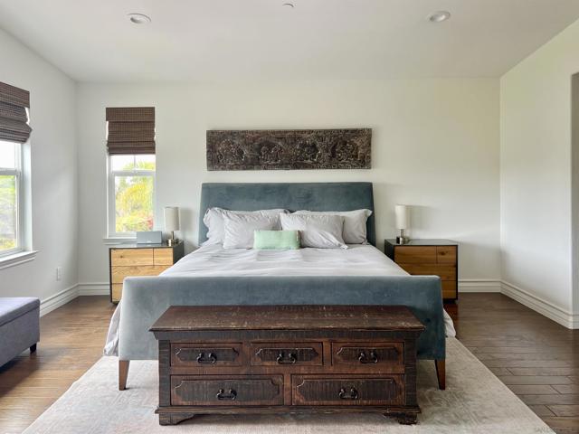 Discover the epitome of coastal living in this exquisite Solana Beach retreat. Walking distance to local beaches, shops, eateries and more. This 4 bedroom, 3 bath house blends luxury and convenience. The inviting foyer leads to an expansive great room connected to a chef's kitchen with custom island banquette. First floor features a private bedroom with sliders opening to the front patio, offering a tranquil sanctuary. The second floor unveils the master retreat boasting ocean views stretching to Swami’s point. Indulge in the spa-inspired master bathroom, while two additional bedrooms and a spacious bathroom provide comfort and privacy. The third floor presents a versatile loft space, offering endless possibilities for a home office, media room, or yoga retreat, all with breathtaking ocean vistas. Outdoor living is a dream with multiple patios, including a side patio and an ocean-view deck, perfect for soaking in the coastal ambiance. The custom-built elevated Ipe wood deck provides an ideal setting for al fresco dining or basking in the sun. An outdoor shower offers convenience after a day at the beach, while the garage boasts epoxy flooring, storage racks, and an EV car charge outlet. Fully furnished with tasteful decor and high-end appliances, including a 77” UHD Sony TV and Control4 system, this home is an entertainer's delight. Commercial Wi-Fi and whole-house water filtration add modern conveniences, ensuring comfort and peace of mind. Whether you desire a furnished sanctuary or a blank canvas to fulfill your vision, this Solana Beach gem awaits your personal touch