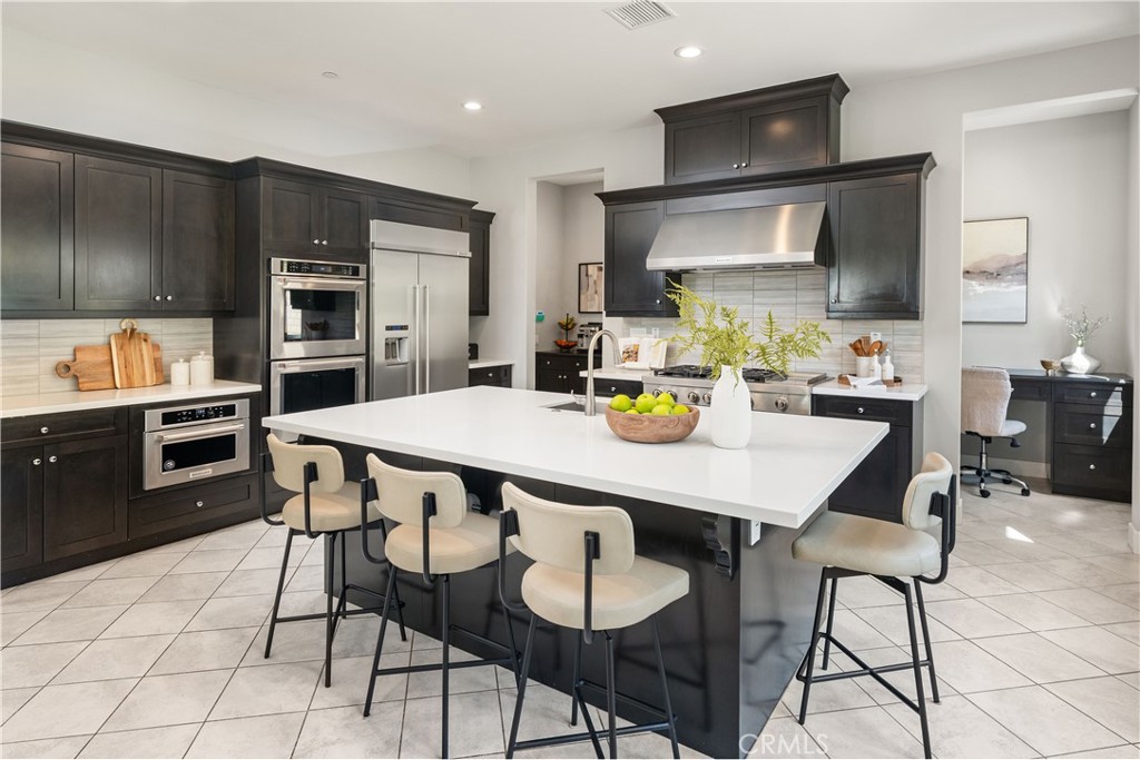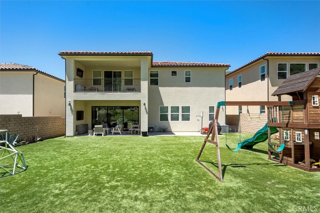 HUGE Price Improvement! This 2020 Toll Brothers home checks every box — located on a cul-de-sac in Santa Clarita’s desirable Plum Canyon community, with owned solar, no Mello Roos, and a large, excellent schools, energy efficient, private pool-sized backyard backing to a peaceful hillside. Nearly 3500 sq ft of thoughtful living space offers 5 bedrooms, 4 bathrooms, a loft, and an office — providing flexibility for today’s lifestyle. Inside, you'll find a beautifully upgraded kitchen with custom countertops, a large island, pull-out trash bins, a walk-in pantry, and a premium KitchenAid Pro-Gourmet appliance package. A pocket office just off the kitchen is perfect for staying organized while working from home. The great room opens through a wall of sliding glass doors to a California room and the backyard beyond, making indoor-outdoor living effortless. Upstairs, you'll find a spacious bonus room, a convenient upper-level laundry room, and a private primary suite with a balcony overlooking the backyard. Energy efficiency and safety are built-in with paid solar, energy-smart features, closed eaves, a concrete tile roof, and a full interior fire sprinkler system. The home is also equipped with smart-home prewiring, a TBI Smart Home security system, a structured wiring closet, and flat-screen TV prewiring throughout. Enjoy being just a block from a huge park and hiking trails, with top-rated schools, shopping, and many of Santa Clarita’s favorite locally-owned restaurants just minutes away. This is a rare opportunity to own a move-in ready, upgraded home in a prime location without the wait, extra costs, or high taxes of new construction.