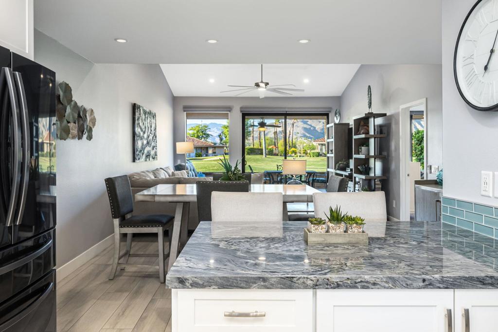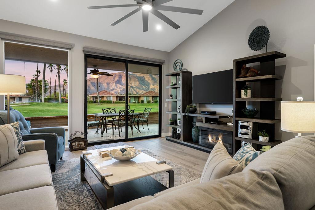 Welcome to your desert retreat in the heart of Rancho Mirage. Located in the highly sought-after Sunrise Country Club, this fully renovated 2-bedroom, 2-bathroom condo offers the perfect blend of modern comfort and resort-style living. Spanning 1,320 square feet, the interior has been thoughtfully updated with contemporary finishes, creating a clean, stylish space ideal for both relaxing and entertaining.Step through a private courtyard entrance into a spacious great room filled with natural light and an effortless open layout. The living and dining areas flow into a sleek, modern kitchen featuring updated cabinetry, stainless steel appliances, and tasteful fixtures. Furnished and move-in ready, this condo is designed for ease and enjoyment.The generously sized primary suite includes a beautifully remodeled en-suite bathroom, while the second bedroom is perfect for guests, a home office, or a cozy den. Both bathrooms have been fully updated with modern tile, vanities, and lighting.Enjoy your morning coffee or evening glass of wine on the expansive back patio that opens directly onto the golf course, offering wide fairway views framed by the majestic San Jacinto Mountains. The detached garage adds to the convenience, while the private front courtyard provides an additional peaceful outdoor space to unwind.Sunrise Country Club is a private, gated community known for its vibrant lifestyle and full suite of amenities. Residents have access to multiple pools and spas, a beautifully appointed clubhouse with a fitness center and billiards room, a full-service restaurant, a casual bar, and a poolside grille. The community also offers tennis courts, pickleball, bocce ball, and a calendar full of social events that make it easy to stay active and connected.With 24-hour security, beautifully maintained grounds, and a central Rancho Mirage location close to shopping, dining, and entertainment, this condo offers the perfect combination of comfort, style, and community.