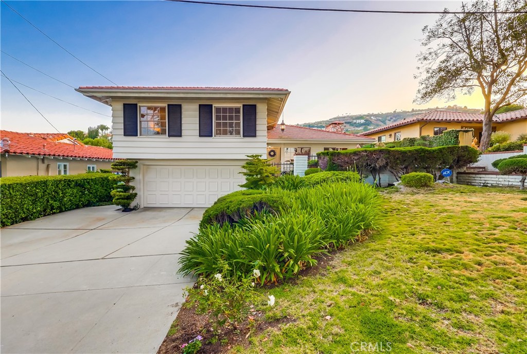 **PRICE IMPROVEMENT** Tucked away in the esteemed Miraleste enclave of Rancho Palos Verdes, this beautiful home sits on a generous 12,522 sq ft lot and offers 4 bedrooms, 3 bathrooms, and 2,539 sq ft of comfortable living space. Located on a peaceful tree-lined street, the home welcomes you with marble tile floors and a bright, inviting layout. The living room features a cozy fireplace and flows seamlessly into the formal dining area, both filled with natural light from large windows and sliding glass doors that open to a balcony overlooking the lush backyard with spectacular canyon views. The kitchen has been the setting for countless homemade meals and includes a charming breakfast nook, perfect for casual dining or morning coffee with a view of the front courtyard. Upstairs, the bedrooms offer peekaboo views of the harbor, mountains, and city lights, providing a serene retreat. On the lower level, you’ll find a spacious family room with a second fireplace and a built-in bar, adding an additional 126 sq ft of living space. A large sliding glass door leads directly to the beautiful backyard, making indoor-outdoor living effortless. The backyard is an entertainer’s dream, with open space for gatherings, a basketball hoop, and mature tangerine and grapefruit trees. This level also includes a fourth bedroom and full bathroom, ideal for guests, in-laws, or multi-generational living. Lovingly owned by the same family for 53 years, this home has been the setting for countless cherished memories. Located in the award-winning Palos Verdes Peninsula Unified School District and just minutes from hiking trails, shopping, and dining, this is a rare opportunity you don’t want to miss. Make 6604 Via Siena your next home and start creating your own memories today.