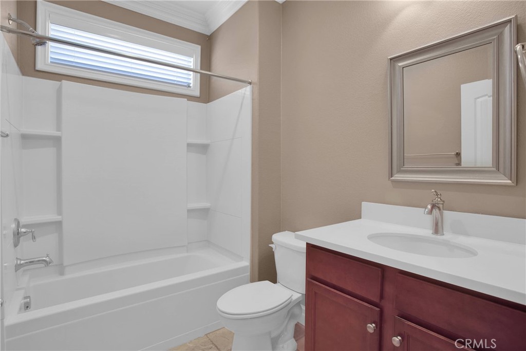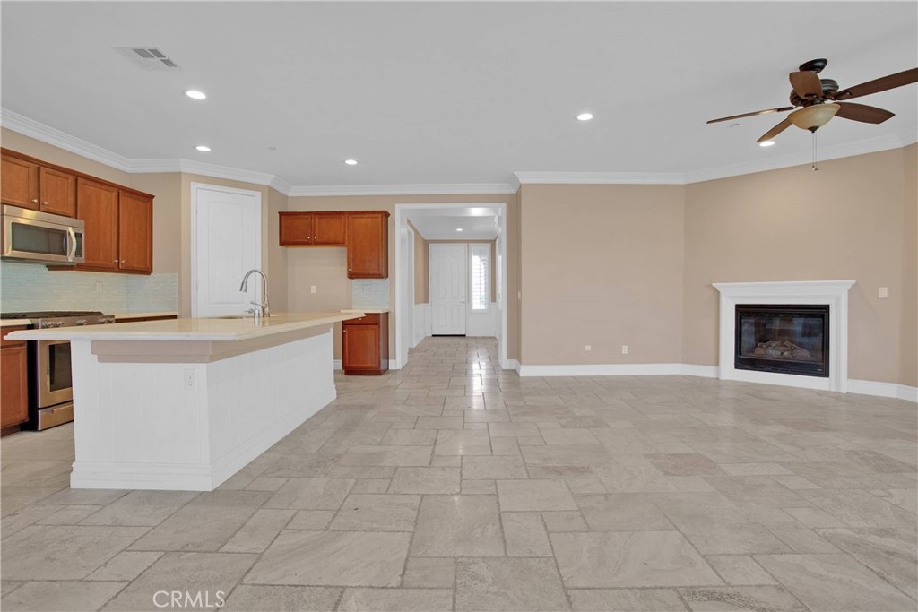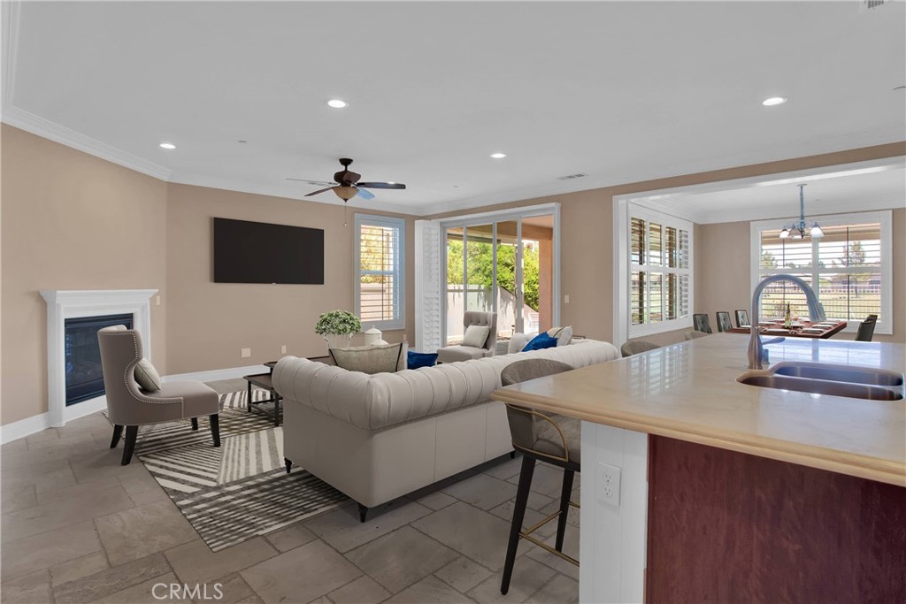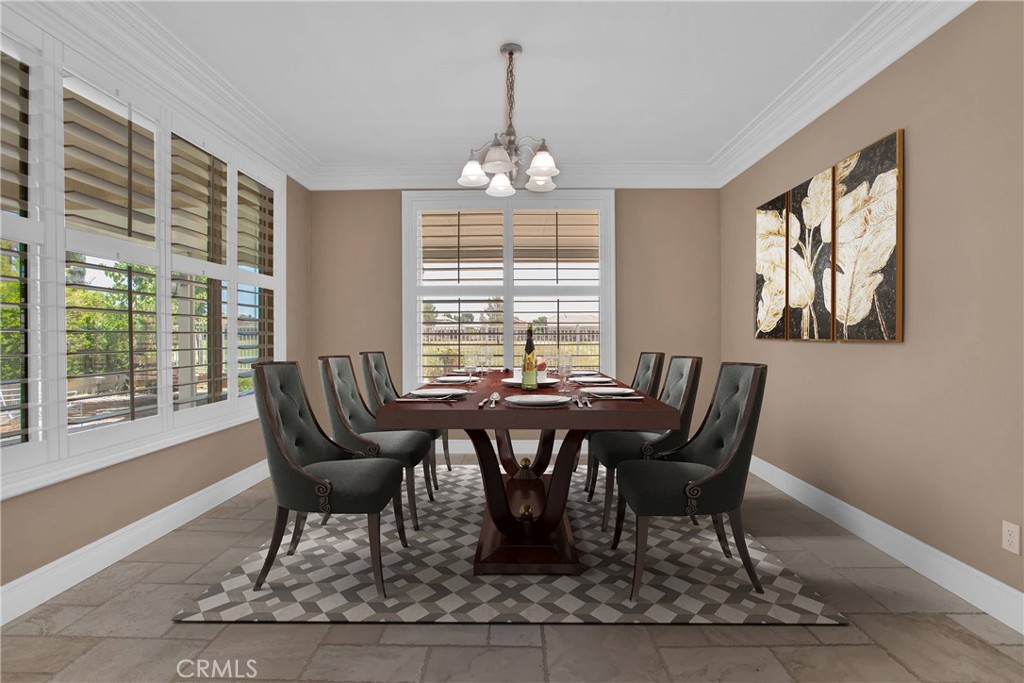 Nestled in the vibrant Solera at Del Webb 55+ community, this home proves retirement isn’t a snoozefest—unless you count your comfy nap spots! Step inside to gleaming travertine floors, wainscoting that whispers “classy,” and double crown molding so regal it might charge a cover fee. The gourmet kitchen shows off white marble countertops worthy of your cooking show audition, while plantation shutters keep nosy neighbors guessing. You’ll love the laundry room’s bonus storage (because where else will you stash your pickleball paddle collection?), and the guest bath’s shade is there for when privacy matters most. Outdoors, the insulated, lighted patio stretches the length of the house, perfect for evening cocktails and uninterrupted golf-course people-watching. Drought-tolerant landscaping means more time for bocce, pickleball, tennis—or coordinating pool-hopping among four sparkling swimming pools and state-of-the-art gyms. The oversized, epoxy-floored garage even has one extra-deep bay for your golf or your holiday decorations. Come see why this home has “retirement jackpot” written all over it!