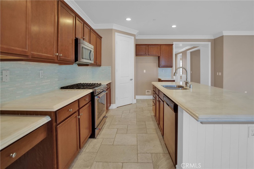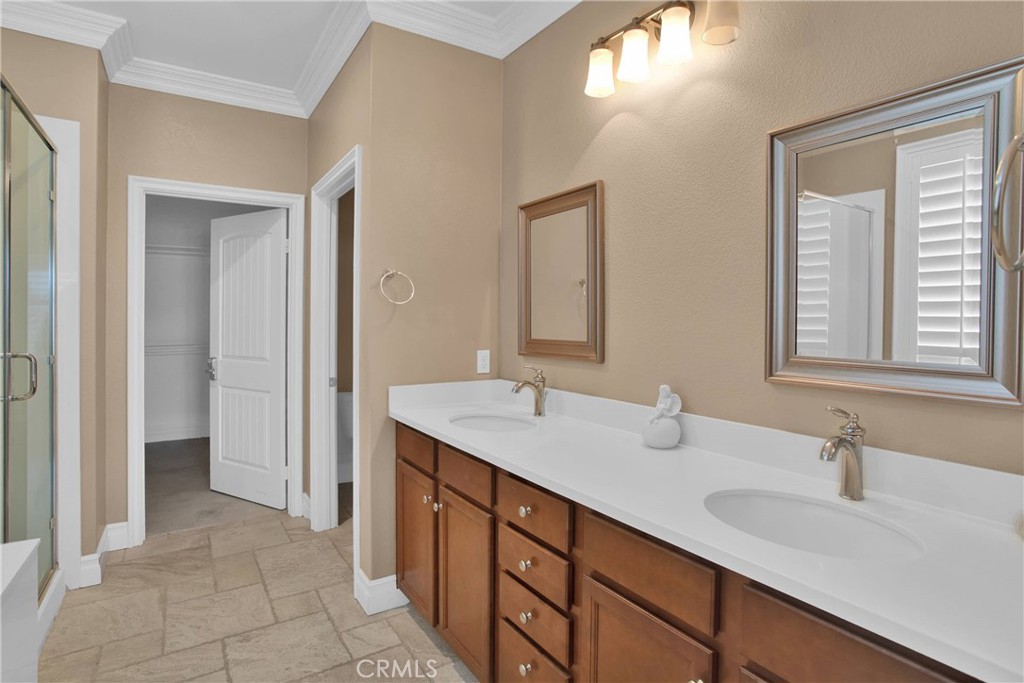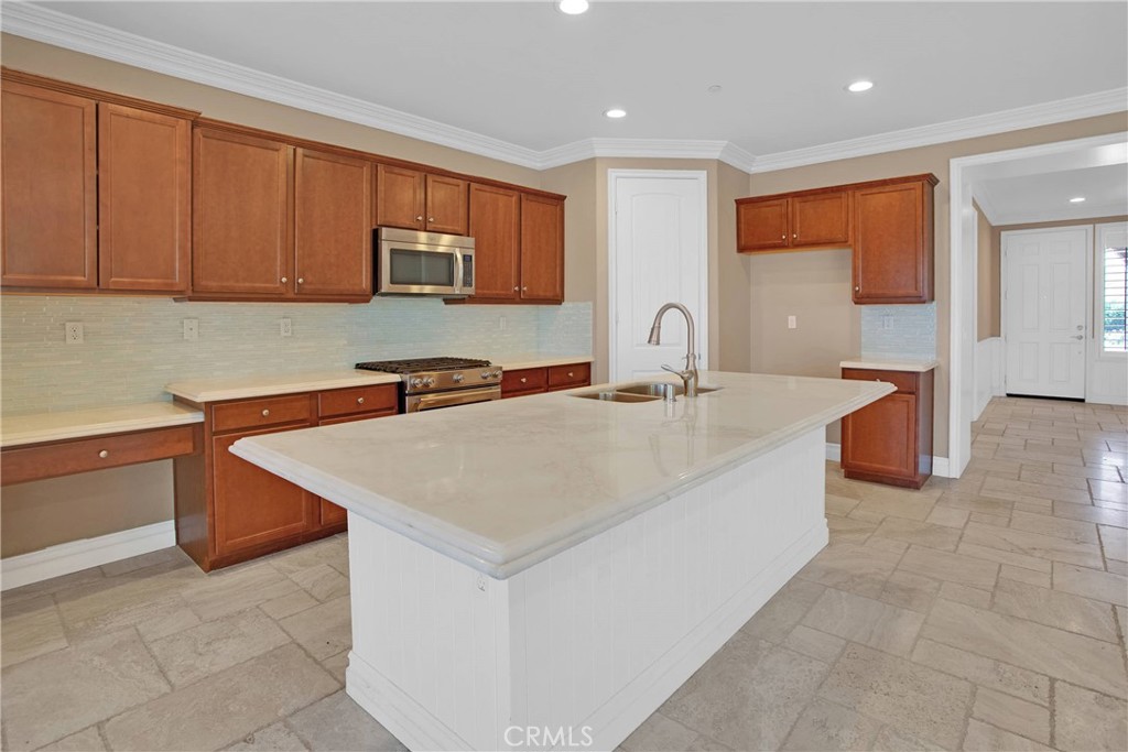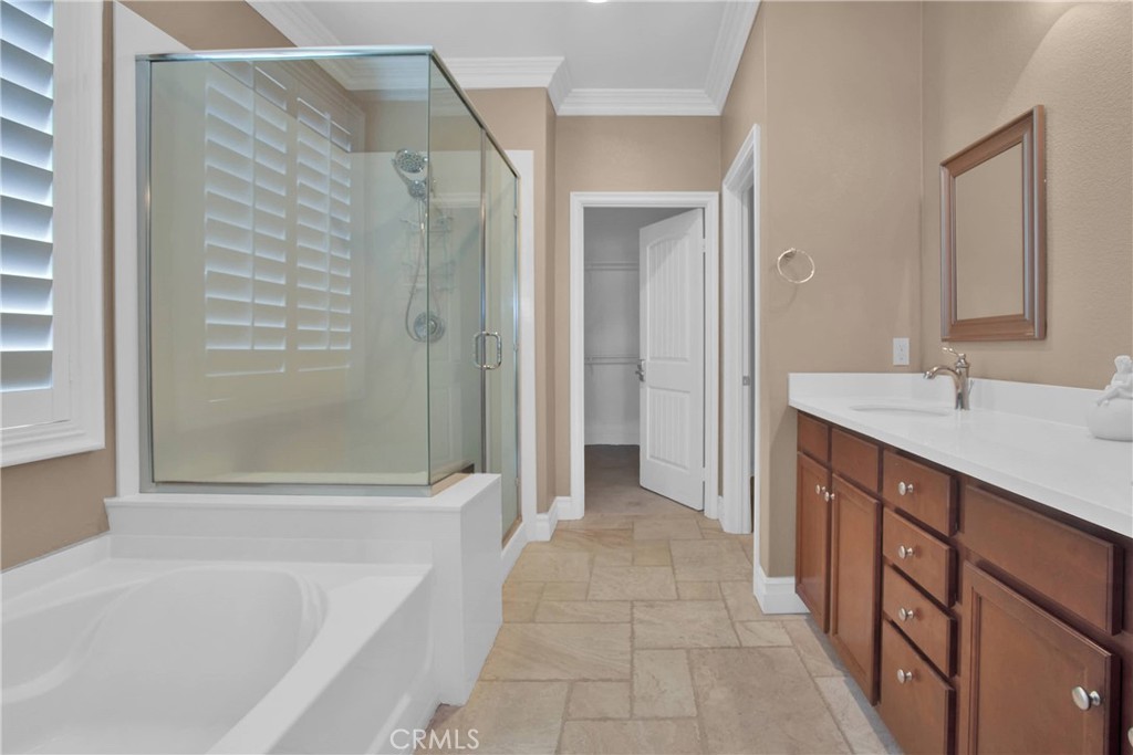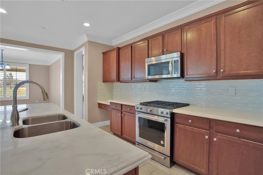 Nestled in the vibrant Solera at Del Webb 55+ community, this home proves retirement isn’t a snoozefest—unless you count your comfy nap spots! Step inside to gleaming travertine floors, wainscoting that whispers “classy,” and double crown molding so regal it might charge a cover fee. The gourmet kitchen shows off white marble countertops worthy of your cooking show audition, while plantation shutters keep nosy neighbors guessing. You’ll love the laundry room’s bonus storage (because where else will you stash your pickleball paddle collection?), and the guest bath’s shade is there for when privacy matters most. Outdoors, the insulated, lighted patio stretches the length of the house, perfect for evening cocktails and uninterrupted golf-course people-watching. Drought-tolerant landscaping means more time for bocce, pickleball, tennis—or coordinating pool-hopping among four sparkling swimming pools and state-of-the-art gyms. The oversized, epoxy-floored garage even has one extra-deep bay for your golf or your holiday decorations. Come see why this home has “retirement jackpot” written all over it!