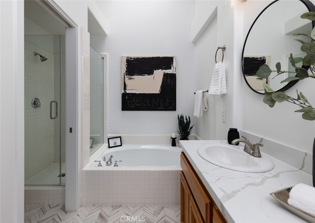 HERE IT IS! Welcome to this stunning 3-bedroom, 3-bathroom townhome located on a quiet cul-de-sac in the prestigious Turtle Rock Summit Towne Collection. Light-filled and thoughtfully upgraded, this home blends timeless comfort with modern style. A private courtyard entry leads into a dramatic living room with soaring ceilings and an adjacent dining area—perfect for both everyday living and entertaining. The beautifully updated kitchen features upgraded countertops, and a designer tile backsplash, along with a brand new 6-burner gas cooktop and wine cooler—a dream setup for any home chef. The main level includes a highly sought-after MAIN FLOOR bedroom and full bathroom, ideal for guests or a home office. Upstairs, you’ll find two spacious ensuite bedrooms and a dedicated laundry room. The primary suite boasts high ceilings, a private balcony with peaceful treetop views, and a spa-like bath retreat. Recent updates include luxury vinyl plank flooring on the main level, new baseboards, custom interior doors and casing, new carpet on the stairs and upstairs bedrooms, and custom tile flooring in the upstairs bathrooms and laundry room. A private rear patio and attached two-car garage complete the package. Enjoy resort-style amenities in this beautifully maintained community, including a pool, spa, guest parking, and lush, park-like surroundings. All conveniently located near UCI, University High, Fashion Island, and Orange County’s stunning beaches. LOW TAXES—NO MELLO ROOS!