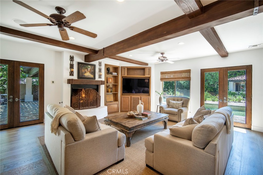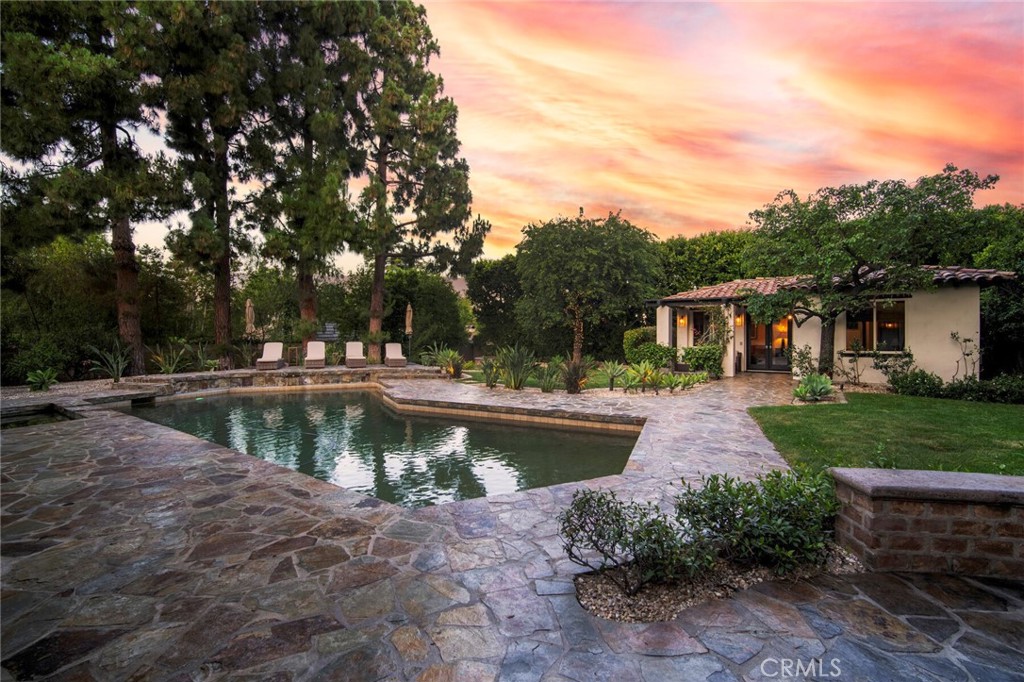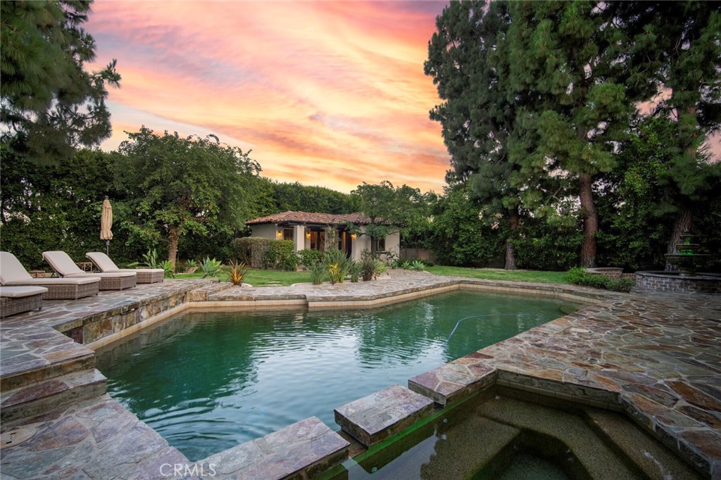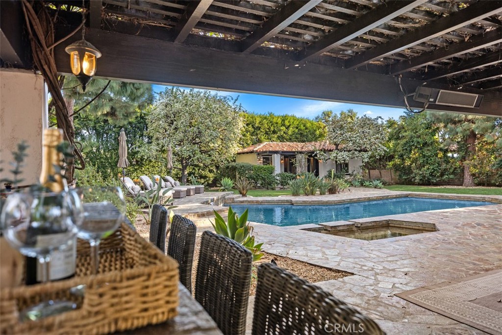 Nestled in one of San Juan Capistrano’s most desirable neighborhoods, this private custom equestrian-zoned estate seamlessly blends Spanish Colonial architecture with modern luxury. Recently remodeled, this exceptional residence offers an unmatched lifestyle of sophistication, comfort, and seamless indoor-outdoor living, designed with exquisite craftsmanship, resort-style amenities, and an unrivaled sense of privacy. Step into a grand foyer, where a sweeping staircase and beautifully curated interiors set the stage for refined living. Wide-plank hardwood floors, custom millwork, and designer lighting create an atmosphere of understated opulence. The formal living room, reimagined as a billiards lounge, and the striking beamed-ceiling dining room flow effortlessly, enhancing the indoor-outdoor connection. The gourmet kitchen, designed for culinary excellence and casual gatherings, features a Sub-Zero refrigerator, Thermador double ovens, a six-burner cooktop, dual Bosch dishwashers, and an expansive two-tiered island. The 4,500 sq ft floor plan is designed for both comfort and grandeur, offering three private ensuite bedrooms, including a main-level primary suite with French doors opening to a tranquil garden patio with a soothing fountain. The upstairs primary retreat is a private sanctuary, featuring a fireplace, private balcony, and a spa-inspired bath with a soaking tub, oversized shower, dual vanities, and a custom walk-in closet. In addition, a detached two-room casita with a private entrance, full kitchen, vaulted ceilings, surround sound, and spa-like bath provides a luxurious retreat for guests, extended family, or rental income. Situated on an expansive 22,000 sq ft lot, the backyard is a true showcase of resort-style living. An oversized Pebble Tec pool, full-size lighted bocce ball court, multiple fireplaces and fire pits, and a grand dining pavilion with built-in heaters and ambient lighting create the ultimate setting for year-round enjoyment. The outdoor gourmet kitchen, complete with a DCS BBQ, sink, and prep station, is perfect for entertaining, whether hosting intimate gatherings or grand celebrations under the stars. Just minutes from San Juan Capistrano’s historic district, equestrian trails, and world-class dining, this estate offers the perfect blend of privacy, sophistication, and modern convenience. With access to top-rated private and public schools, this is an unparalleled opportunity to own a home that truly has it all.