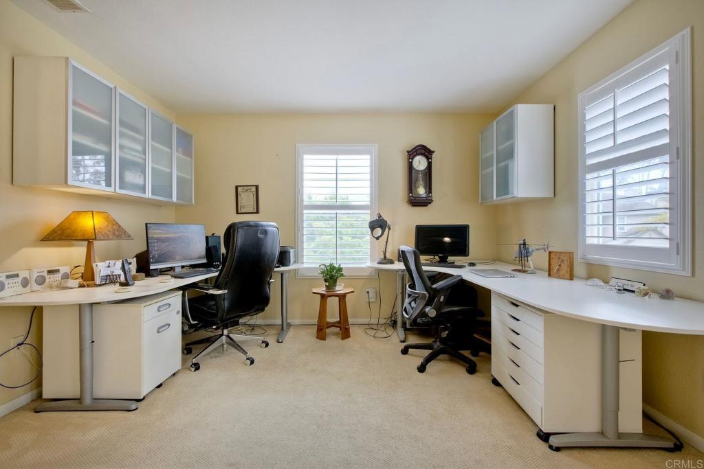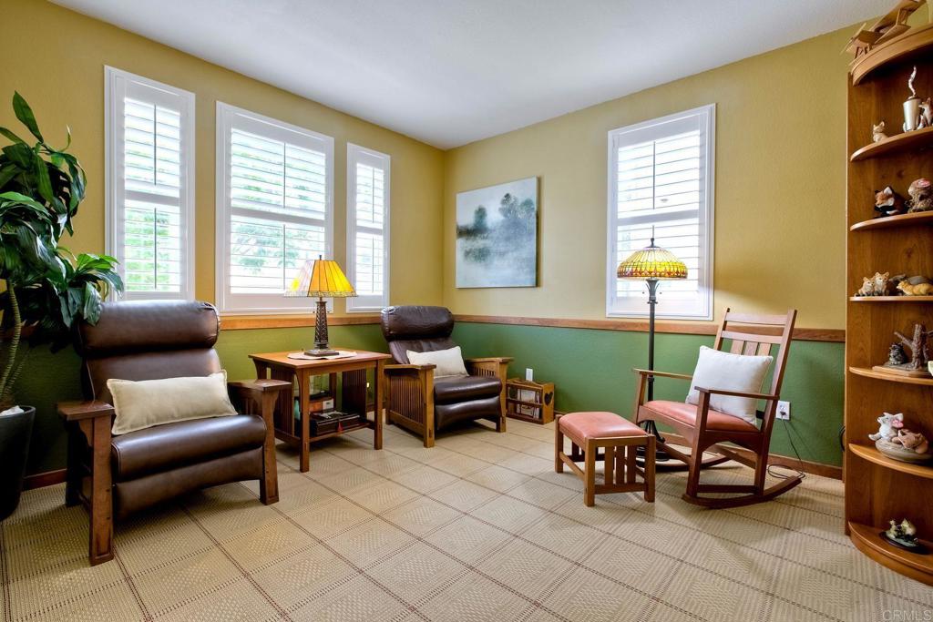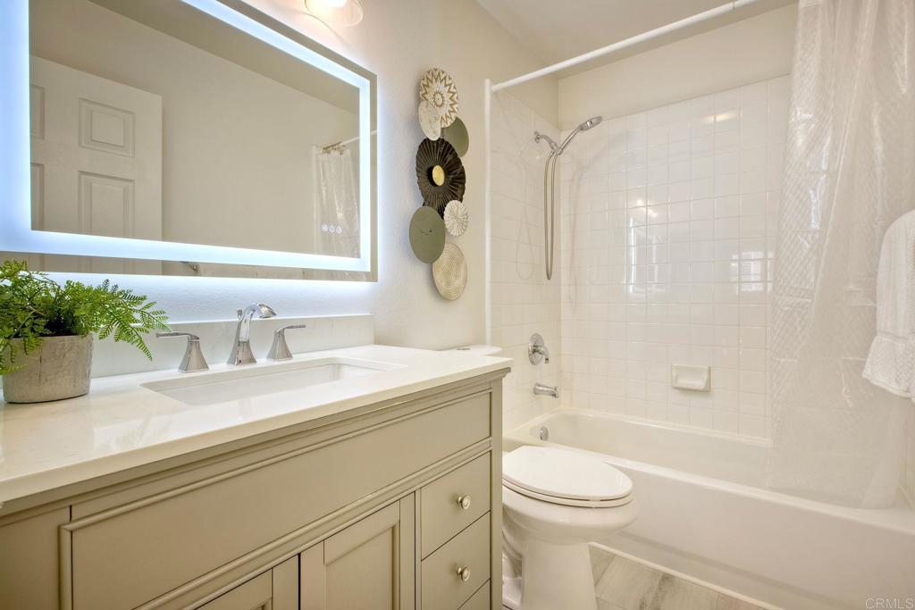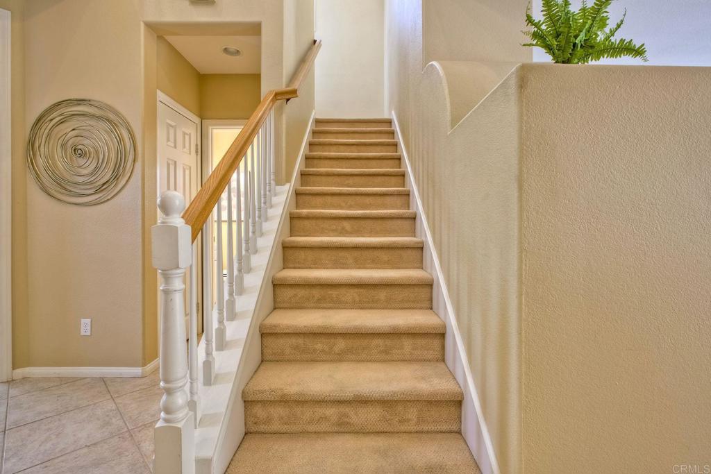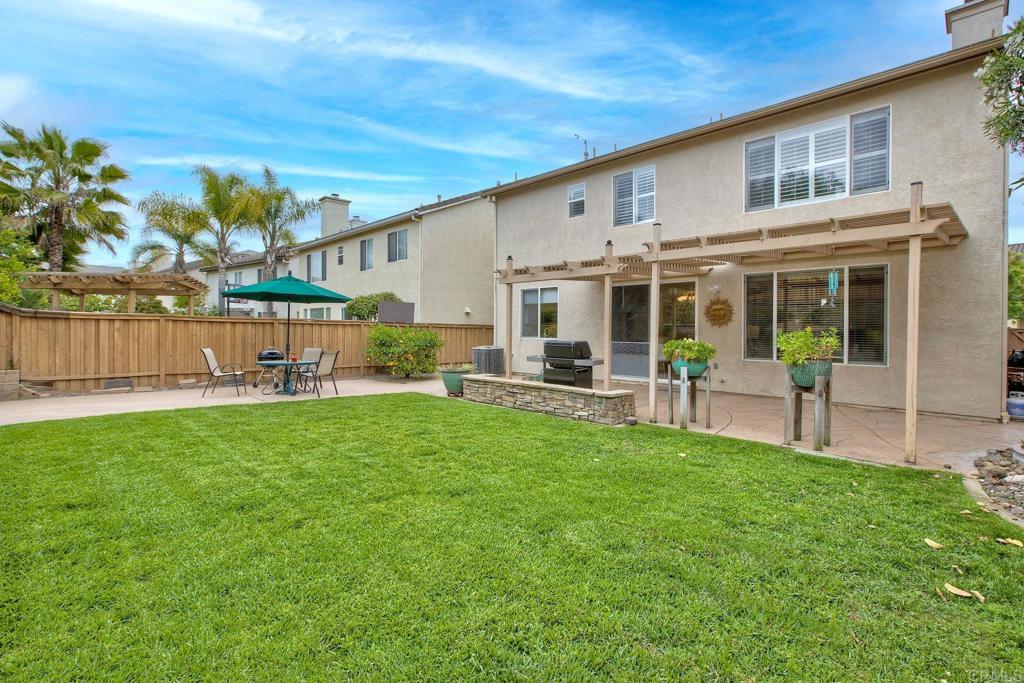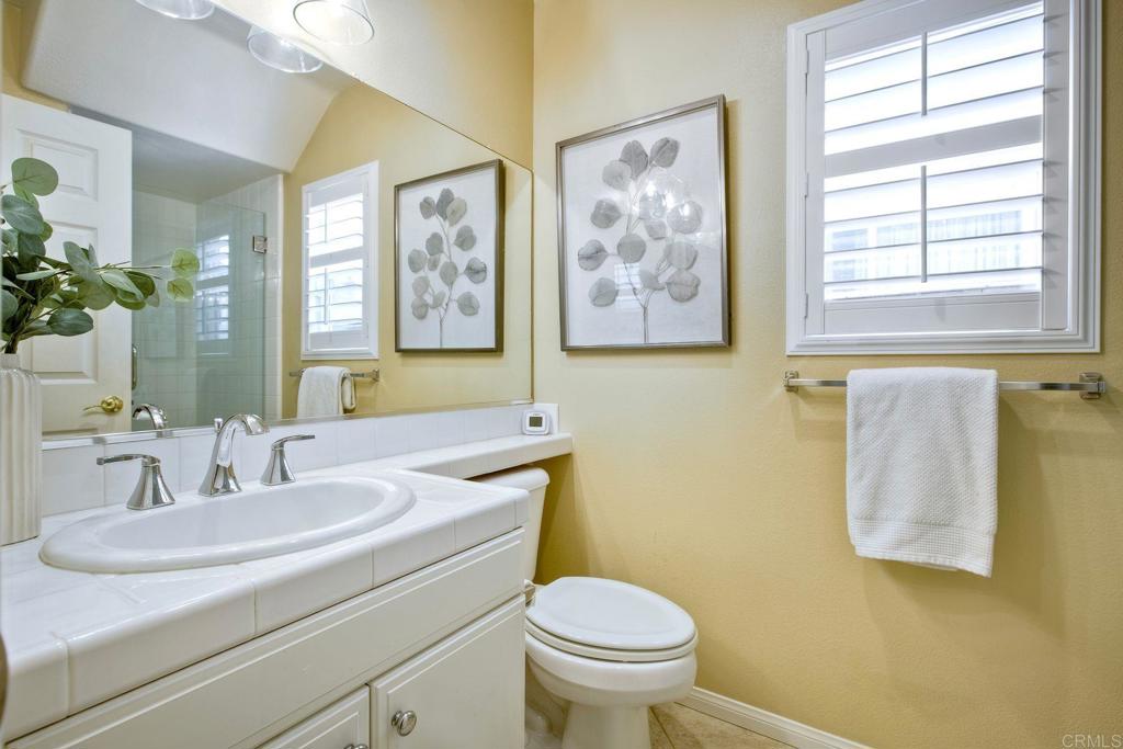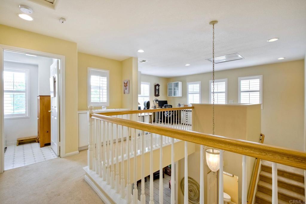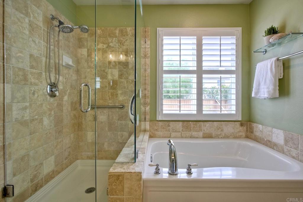 Just in time for a summer move-in before the new school year begins. Welcome to the beautiful Morningside subdivision in Sabre Springs! Just a short walk to Creekside Elementary and close to scenic biking and hiking trails, this lovely home features a desirable layout with a downstairs bedroom and full bathroom, plus three additional bedrooms upstairs. A spacious loft provides flexibility for an additional living area, home office, or gym. The remodeled kitchen is a chef’s delight, boasting granite countertops, stainless steel appliances including a Wolf gas cooktop, JennAir convection oven, Bosch dishwasher, and a new GE microwave. The expansive primary suite includes a luxurious bathroom with a separate soaking tub, frameless glass shower with custom tile surround, dual vanity sinks, and a walk-in closet with custom organizers. Additional highlights include a whole-house fan, convenient upstairs laundry room, remodeled guest bathroom, plantation shutters, travertine tile flooring in a diamond pattern, and a cozy fireplace in the family room. This well-maintained home features $11,500 in roof repairs completed in 2023, a newer garage door, and a new water heater. You’ll love the interior lot location and beautiful curb appeal. The large backyard is perfect for gardening, relaxing, or entertaining, with multiple sitting areas featuring stamped concrete, two pergolas, a spacious lawn, and a tiered slope with stacked-stone planters.