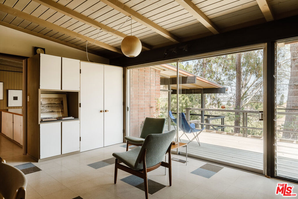 The Mitchell Residence, by architects Buff, Straub & Hensman (1959). Offered for only the second time since being built. It has been lovingly cared for and miraculously remains in almost entirely original condition. Situated on more than an acre in Rolling Hills Estates, the house embraces a tranquil and incredibly private setting with expansive floor to ceiling glazing. Exterior and interiors have been blended together seamlessly, with living spaces and adjacent decks placed amidst the towering pines to bring nature into every room. A split level delineates the open plan dining area, family room, and kitchen from the sunken living room and its monumental fireplace with cantilevered mantle. The details are exceptional: signature post and beam vocabulary, translucent glass screening, original light fixtures, and clever and abundant built-in cabinetry. Mature California native plantings populate the surrounding gardens. An idyllic canyon retreat with panoramic city and mountain views, ocean breezes, and a sense of solitude that belies its close proximity to the vibrant beach communities nearby.
