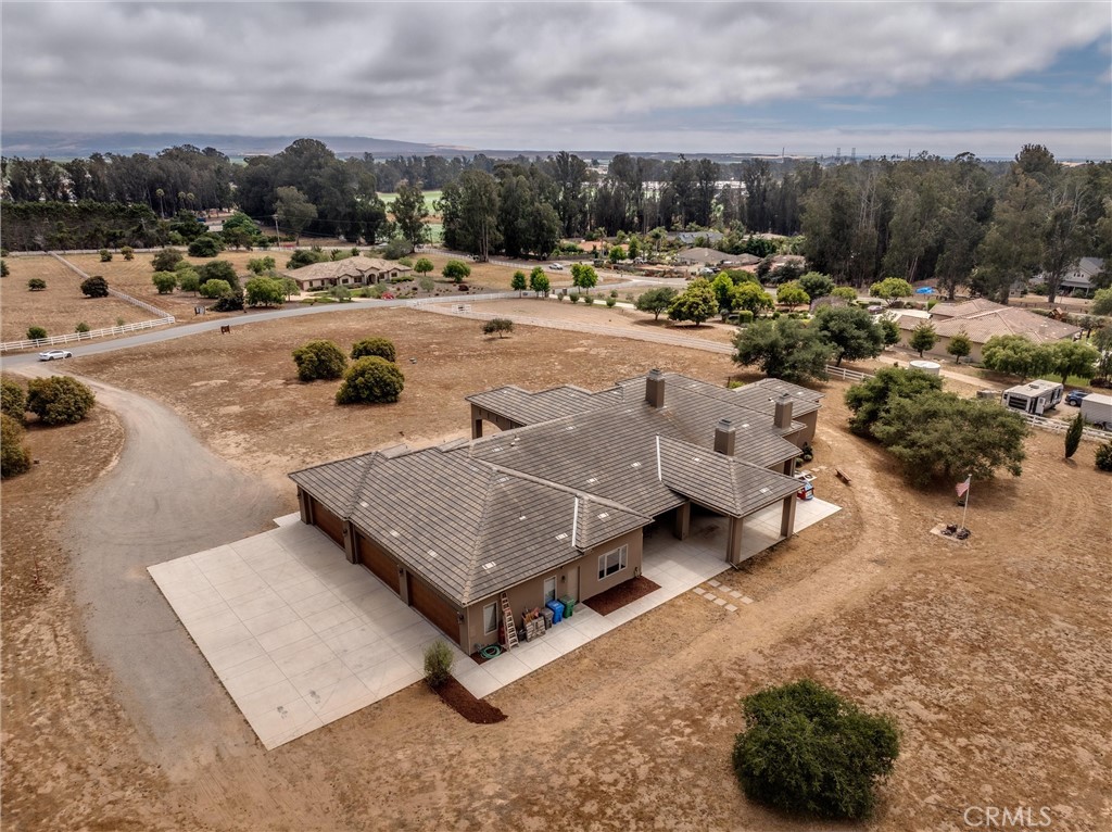 A Private 5-Acre Estate! A Private 5-Acre Estate — Ready to Be Finished Your Way Set across approximately 5 acres in the hills of Arroyo Grande, this custom-built estate offers a rare combination of scale, quality, and future potential — ideally positioned just minutes from Pismo Beach and near three of the area’s premier golf courses. Spanning over 5,000± square feet, the residence was constructed with no expense spared and is designed with volume and flow in mind, featuring soaring ceilings, expansive living areas, and a seamless indoor-outdoor connection highlighted by a bi-fold door system opening to a covered patio. The gourmet kitchen features a massive center island, Sub-Zero refrigeration, wine storage, custom cabinetry, premium appliances, and a warming drawer — ideal for everyday living and entertaining. Each of the three bedrooms is a private suite with its own bathroom and direct exterior access, offering flexibility for guests or multi-generational living. The primary suite spans over 1,500± square feet and serves as a private retreat, featuring a dedicated office, private laundry, built-in coffee bar, and an expansive custom walk-in closet with automated upper storage. The spa-inspired bathroom offers dual vanities, a makeup station, a multi-head shower, and smart privacy glass doors. Additional features include a formal living room, separate family/media room, central vacuum system, a second full laundry room, a separate pantry/storage room, and an additional office or flex space that can function as a fourth bedroom. The property includes a 1,637± square foot garage accommodating six or more vehicles, with space for storage, workshop use, or potential conversion. Additional amenities include RV hookups, owned solar, and a private well. The outdoor areas provide a blank canvas with space for a pool, landscaping, equestrian use, workshop, or expanded outdoor living. The property also allows for a future ADU of approximately 1,200± square feet, subject to local regulations. Privately set yet minutes from Arroyo Grande Village, Pismo Beach, and multiple golf courses, this property offers a rare opportunity to complete and personalize a Central Coast estate.