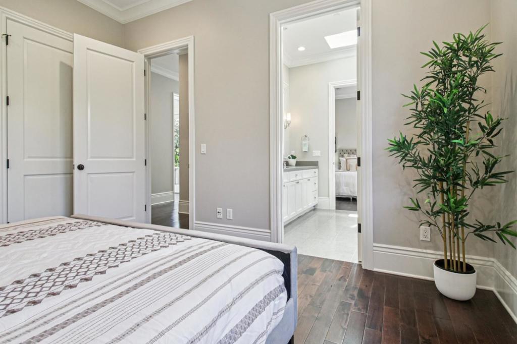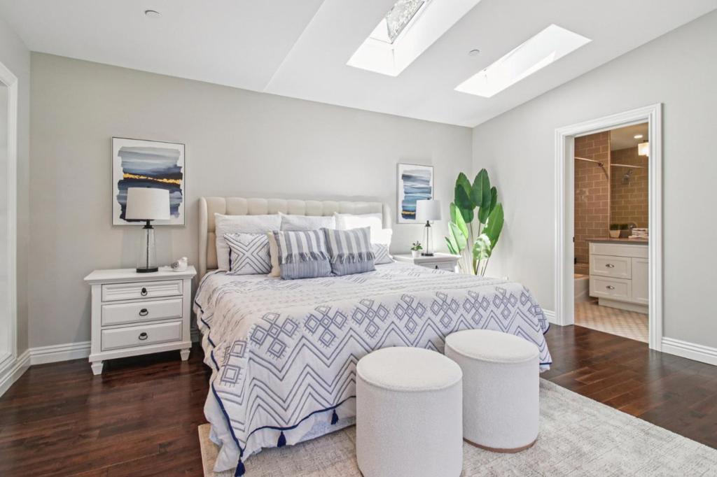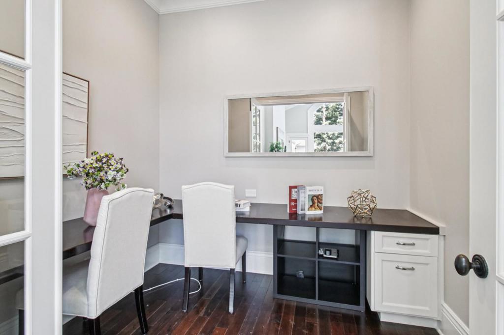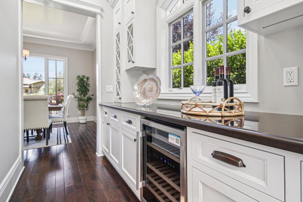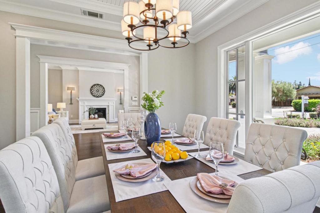 Experience the charm of Los Altos in this spectacular home built in 2016 by Roseville Builders. This exceptional property offers six bedrooms and five and a half bathrooms, designed for comfort and elegance. The open-concept layout features a spacious living area with abundant natural light, perfect for gatherings. The chefs kitchen boasts high-end stainless steel appliances, custom cabinetry, and a large island ideal for culinary enthusiasts and family time. The luxurious primary suite provides a spa-like ensuite with a soaking tub, walk-in shower, dual vanities, and a generous walk-in closet. Outside, enjoy a beautifully landscaped yard on a 0.37-acre lot with an outdoor covered loggia featuring a barbecue kitchen, firepit terrace, a patio for outdoor dining, lush greenery, and space to relax or entertain. Additional highlights include a dedicated office, guest house with full kitchen and bath, wine cellar, whole house filter system, Tesla charger, and a home theater for premium entertainment. Modern amenities and energy-efficient systems ensure comfort and sustainability. Located in a prestigious, tranquil neighborhood with top-rated Los Altos schools and easy access to shopping, dining, and parks, this home embodies luxury, functionality, and serenity. Your dream home awaits!