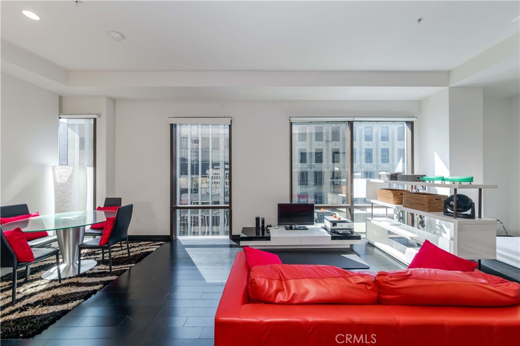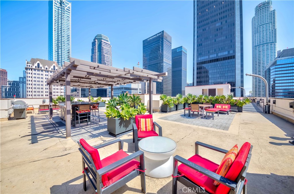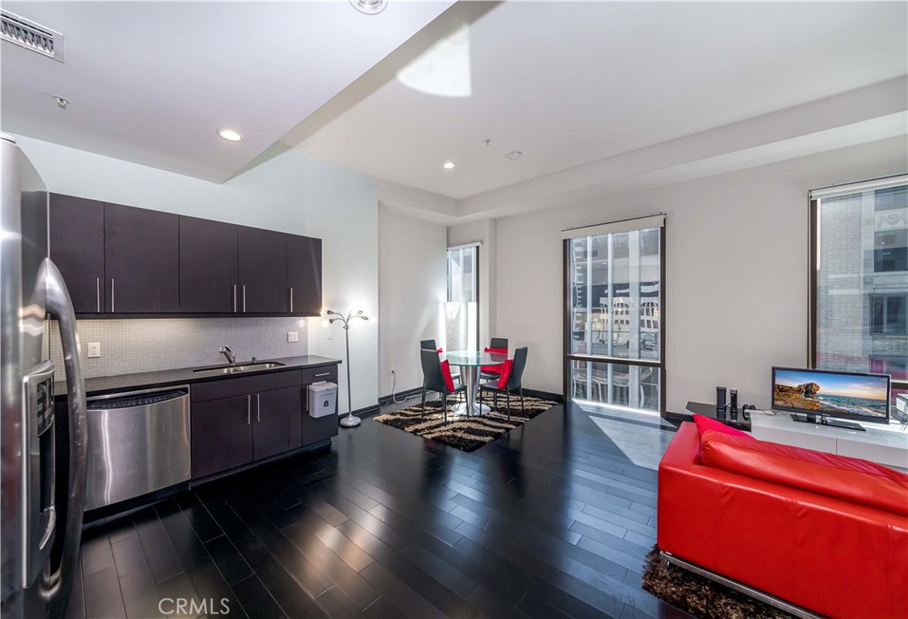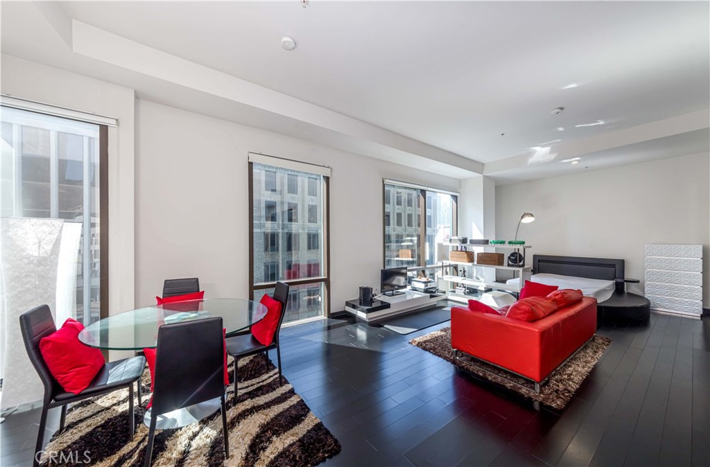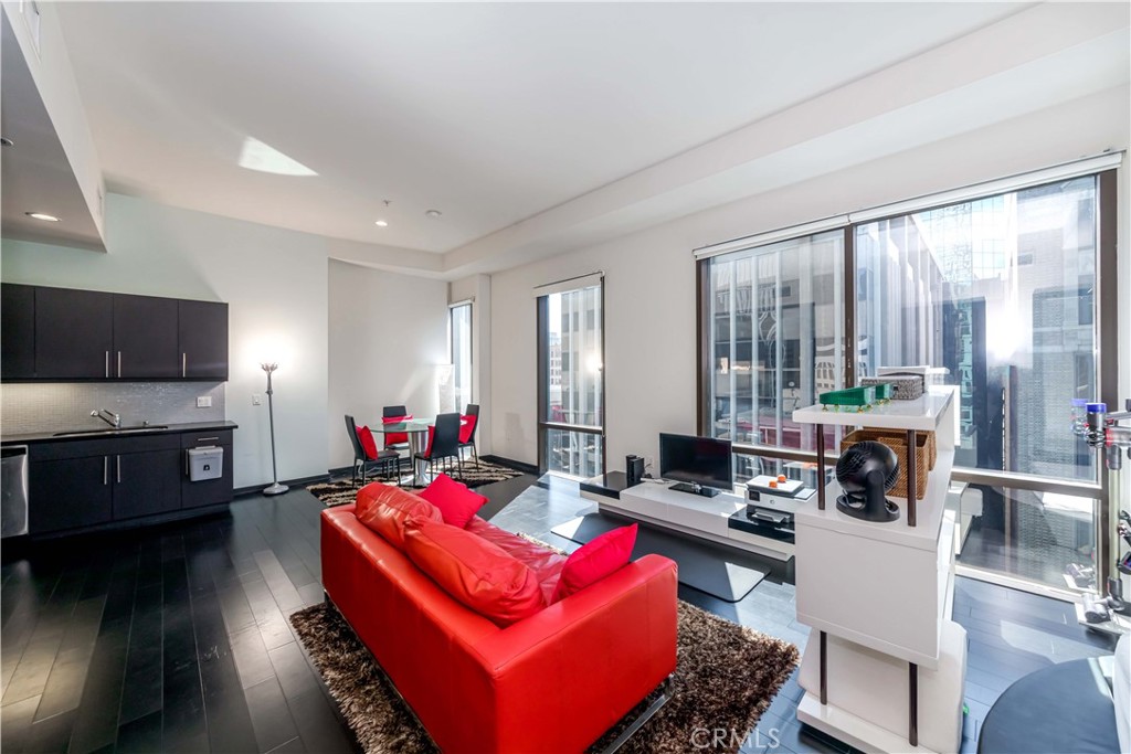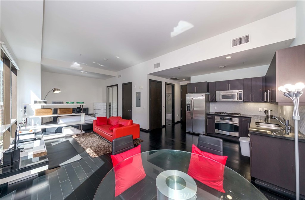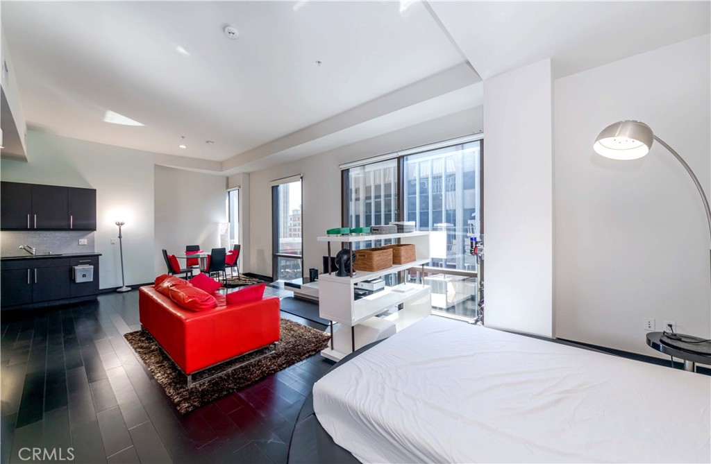 Immerse yourself in the ultimate urban lifestyle with this exceptional residence at the astounding 655 Hope Condos! Head to the tenth floor and discover a stunning studio unit with a high tray ceiling in the main living area, canned lighting, and dark accents that complement the plank floors. Sweeping cityscapes are framed by tall picture windows that fill the dwelling with brilliant light and are equipped with custom blinds for privacy. Relax amidst the open-concept interior or create signature recipes in the corner kitchen with its stainless steel appliances, abundant cabinetry, chic backsplash, and gleaming granite countertops. A large mirrored closet accommodates your sleeping area, while a refreshing bath is beautifully accented with stone tilework around the vanity and shower/tub combo. Other notables are the in-unit laundry and a single-slot parking space in the attached garage. Residing here means access to top-notch complex amenities designed to elevate daily life, including a doorman, valet parking, a club room, fitness center, and a rooftop sundeck with a grill, pergola-covered wet bar, panoramic views, and a helipad. Set in the heart of LA’s pulsing downtown, find yourself amidst the finest shopping, dining, and entertainment options the city has to offer. Plus, this fantastic location above the 7th Street Metro Station connects you to Union Station - a transportation hub to all of amazing SoCal! Come make this gem yours before it slips away!