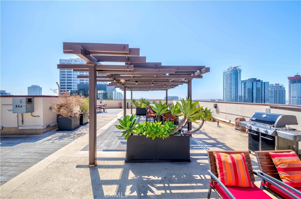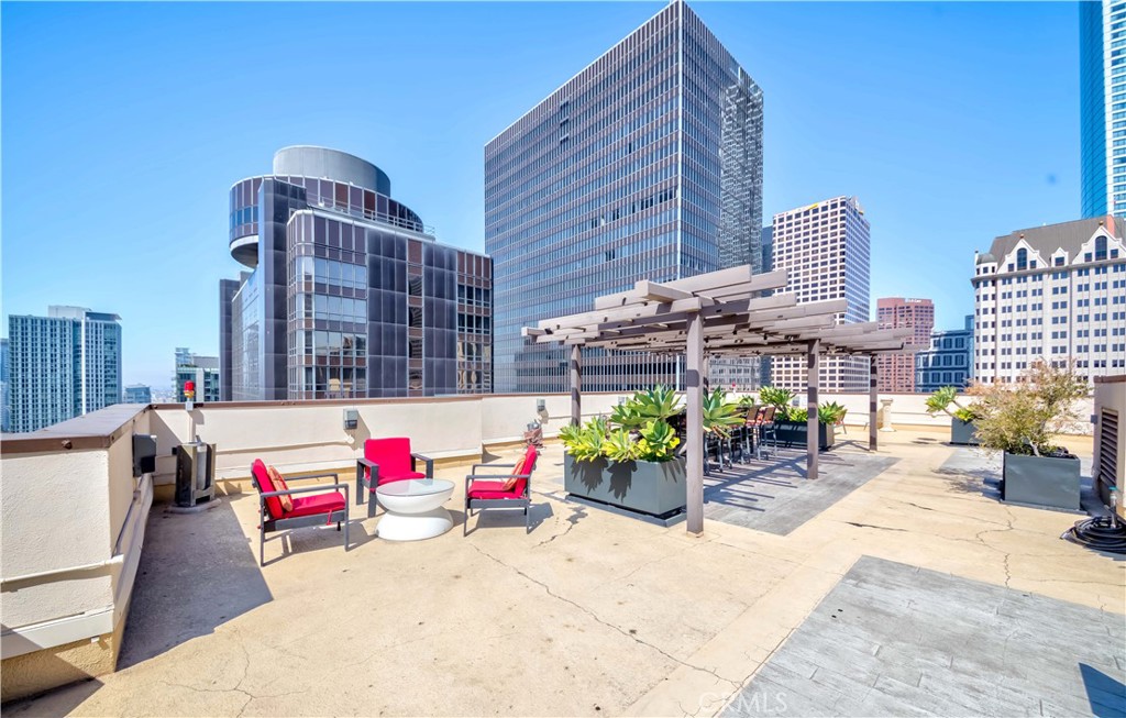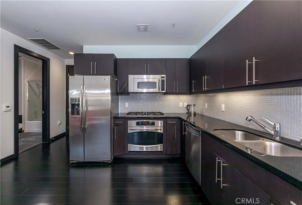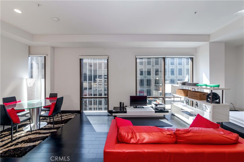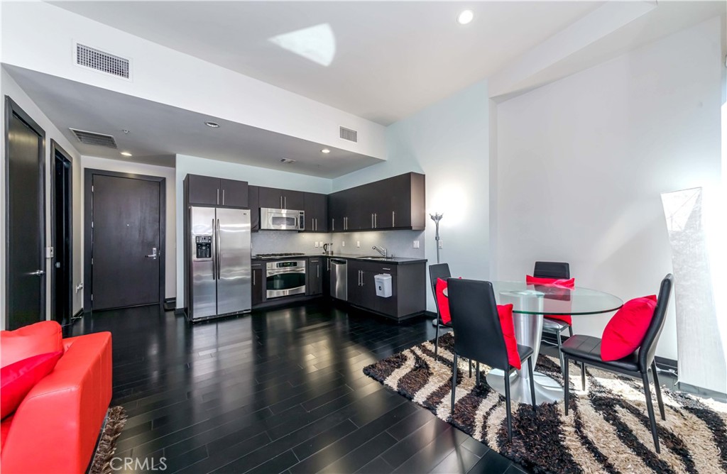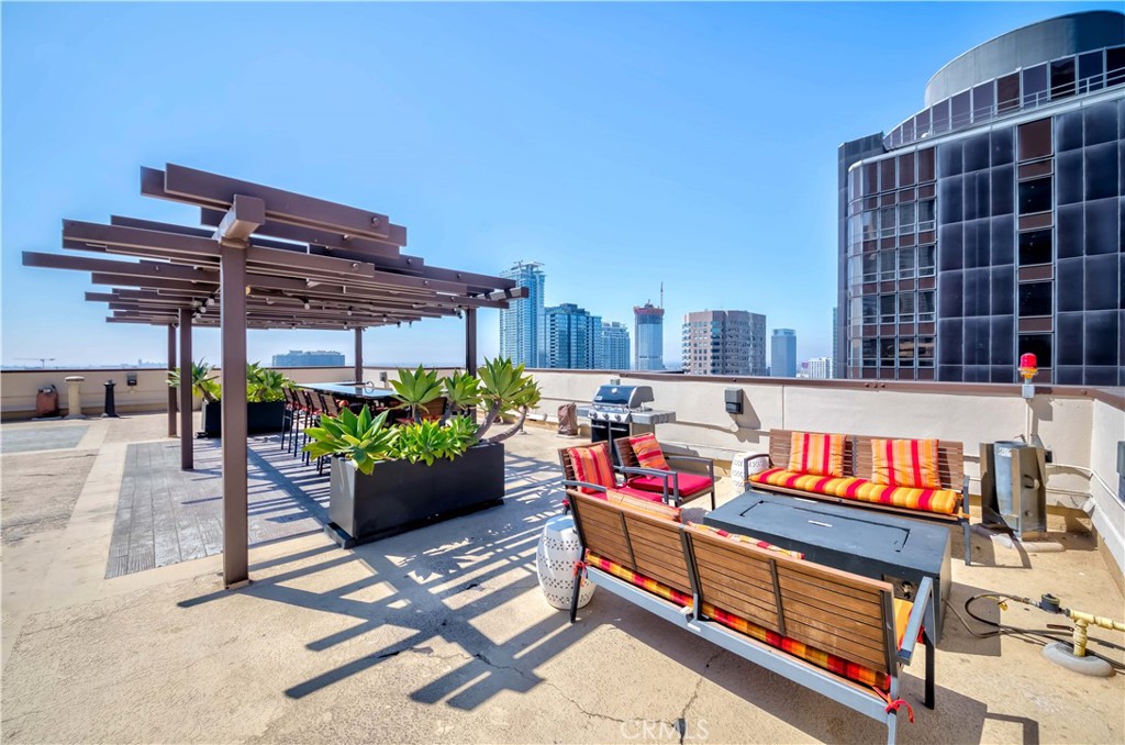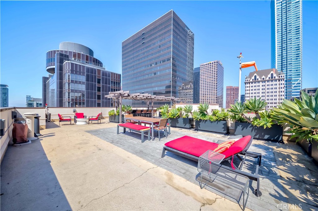 Immerse yourself in the ultimate urban lifestyle with this exceptional residence at the astounding 655 Hope Condos! Head to the tenth floor and discover a stunning studio unit with a high tray ceiling in the main living area, canned lighting, and dark accents that complement the plank floors. Sweeping cityscapes are framed by tall picture windows that fill the dwelling with brilliant light and are equipped with custom blinds for privacy. Relax amidst the open-concept interior or create signature recipes in the corner kitchen with its stainless steel appliances, abundant cabinetry, chic backsplash, and gleaming granite countertops. A large mirrored closet accommodates your sleeping area, while a refreshing bath is beautifully accented with stone tilework around the vanity and shower/tub combo. Other notables are the in-unit laundry and a single-slot parking space in the attached garage. Residing here means access to top-notch complex amenities designed to elevate daily life, including a doorman, valet parking, a club room, fitness center, and a rooftop sundeck with a grill, pergola-covered wet bar, panoramic views, and a helipad. Set in the heart of LA’s pulsing downtown, find yourself amidst the finest shopping, dining, and entertainment options the city has to offer. Plus, this fantastic location above the 7th Street Metro Station connects you to Union Station - a transportation hub to all of amazing SoCal! Come make this gem yours before it slips away!