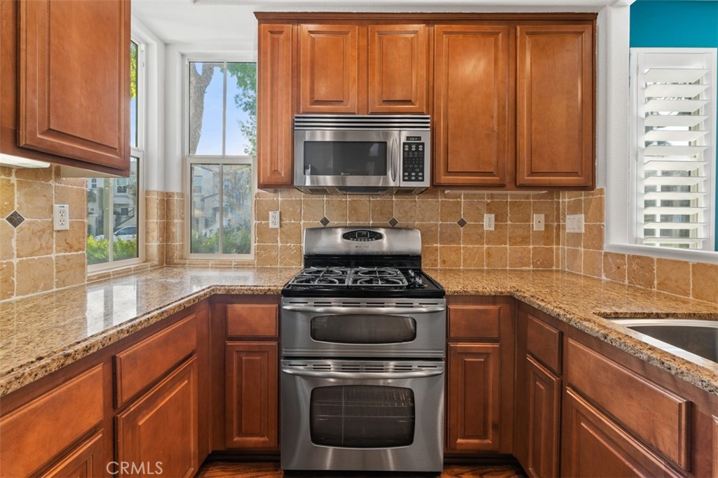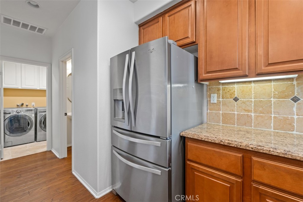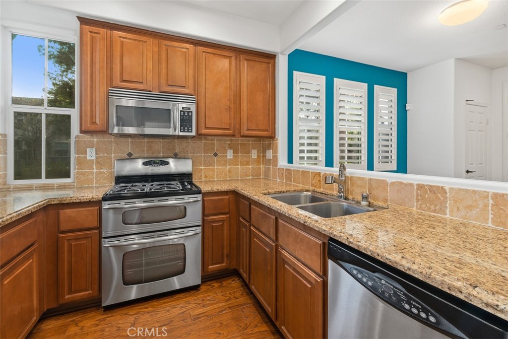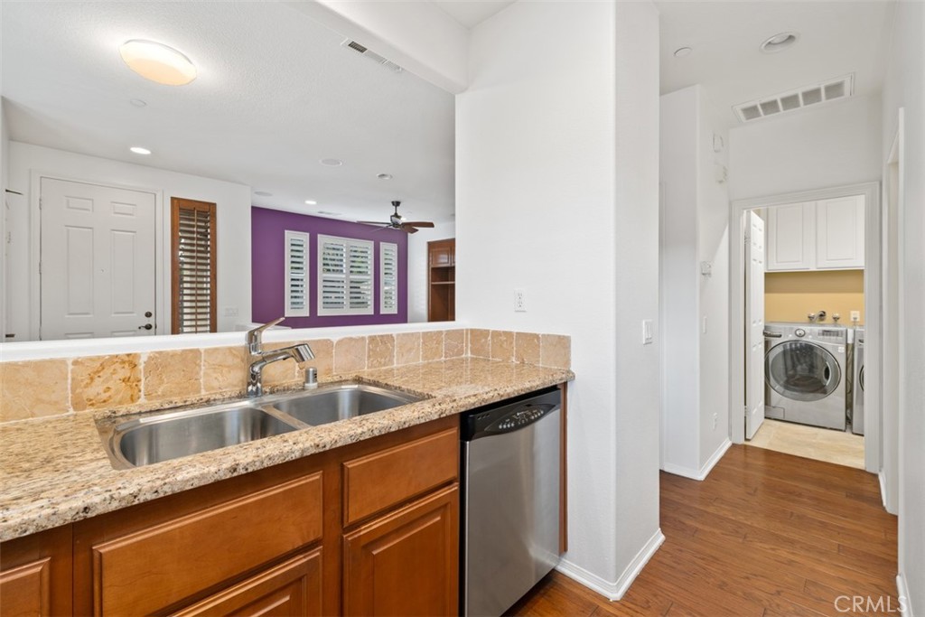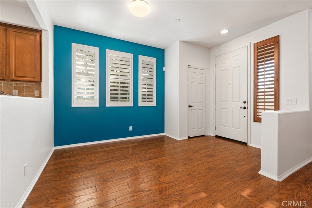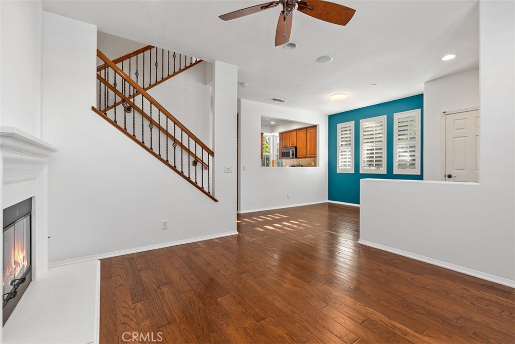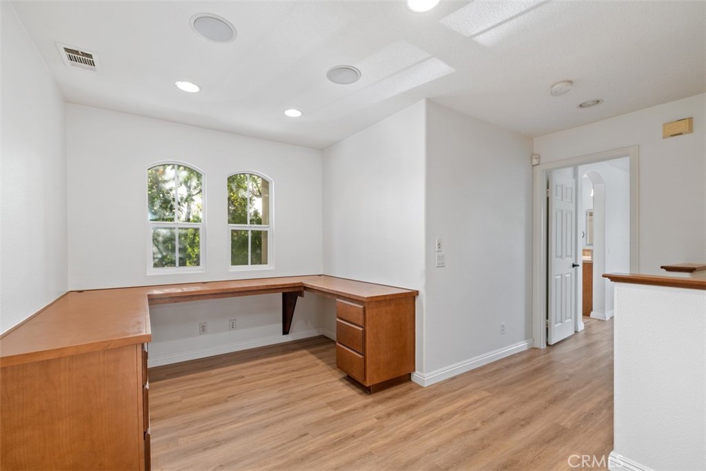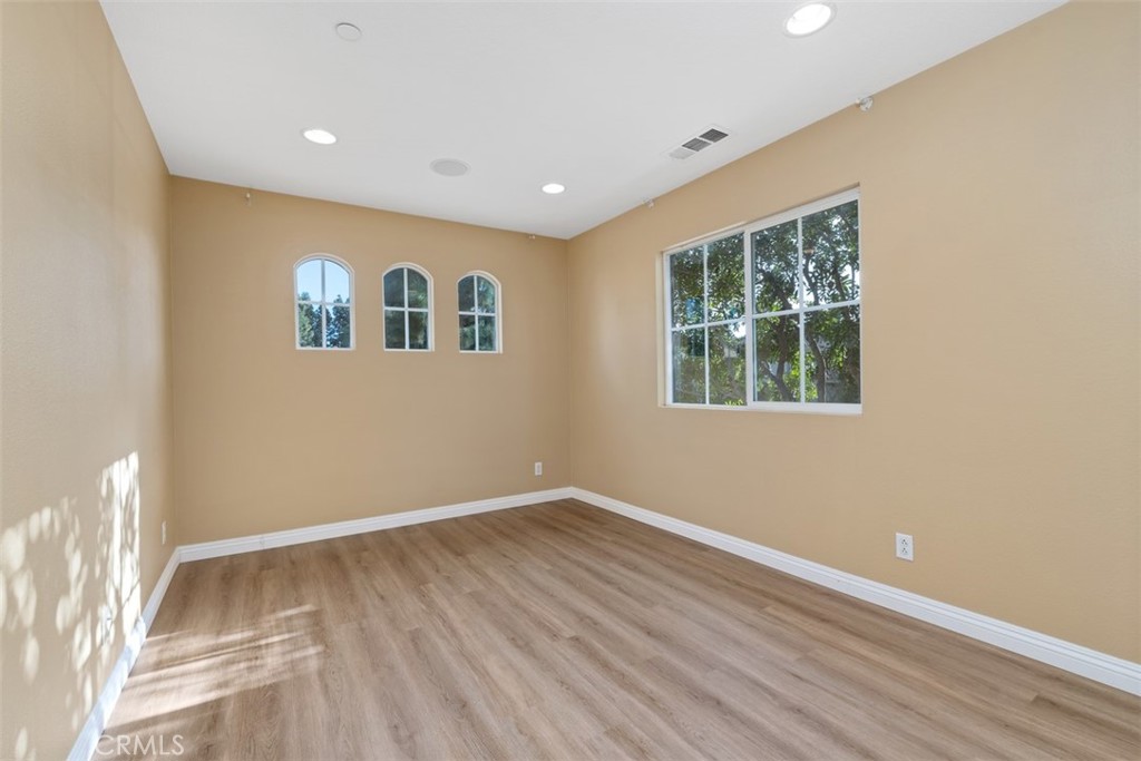 Located in the desirable Trailing Vine community, this bright end-unit former model townhome offers 3 bedrooms, 2.5 baths, and tasteful upgrades throughout. Enter through a private gated courtyard into a home featuring hardwood flooring on the first floor and brand-new vinyl upstairs. The living room includes a cozy fireplace, recessed lighting and plantation shutters, while the light-filled kitchen boasts stainless steel appliances and a large corner window. A stylish half bath with pedestal sink and a separate laundry area complete the main level. Upstairs offers a spacious loft/office with built-in desk, two secondary bedrooms, and a primary suite with mirrored wardrobe and en suite bath. Additional features include a two-car attached garage, Conveniently located near the 5 Freeway, grocery stores such as Trader Joe’s, Ralphs, and Mitsuwa, popular restaurants, and top-rated Tustin Unified schools including Hicks Canyon Elementary, Orchard Hills Middle, and Beckman High. Refrigerator, washer and dryer included.