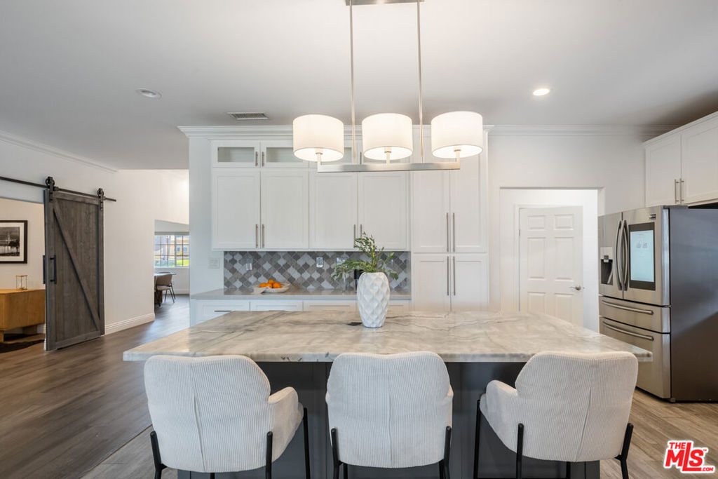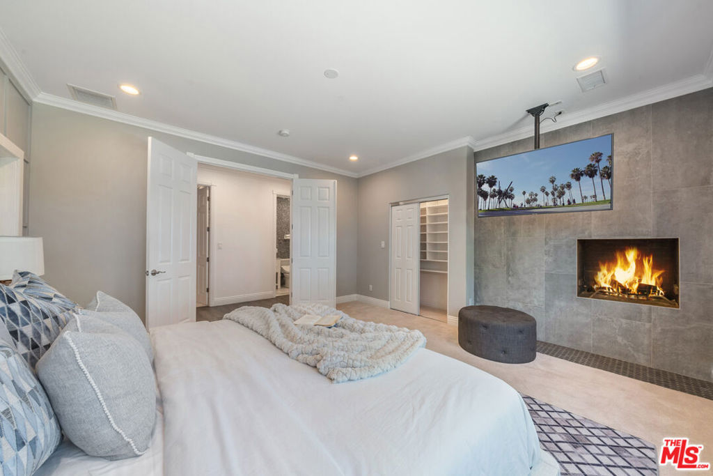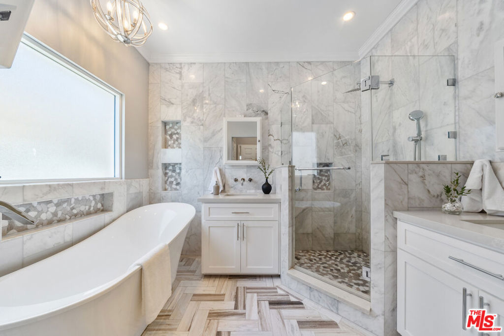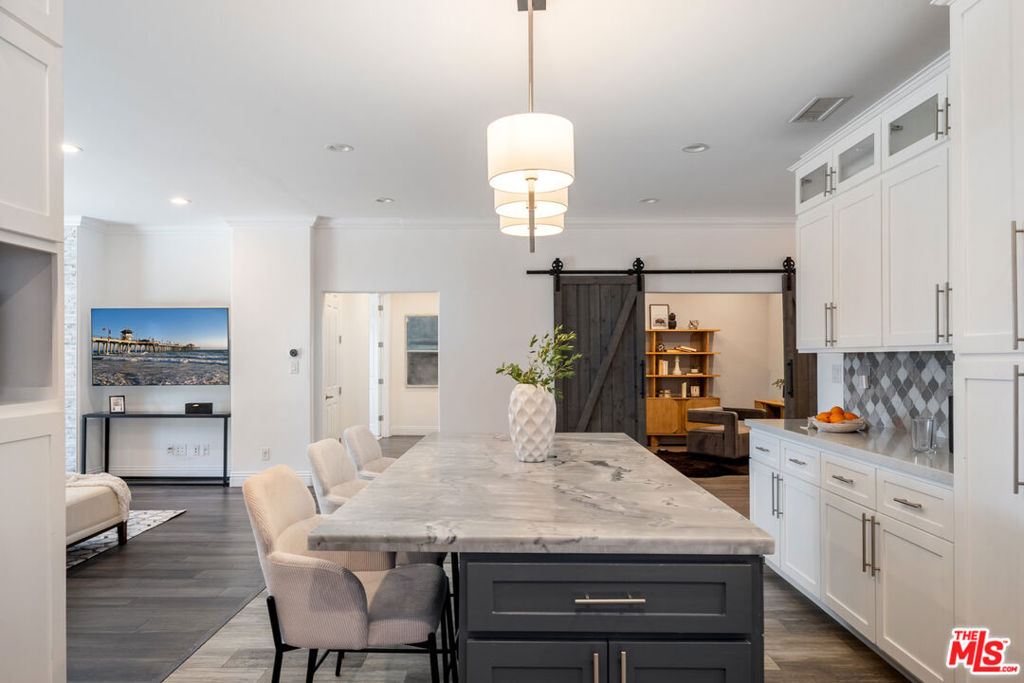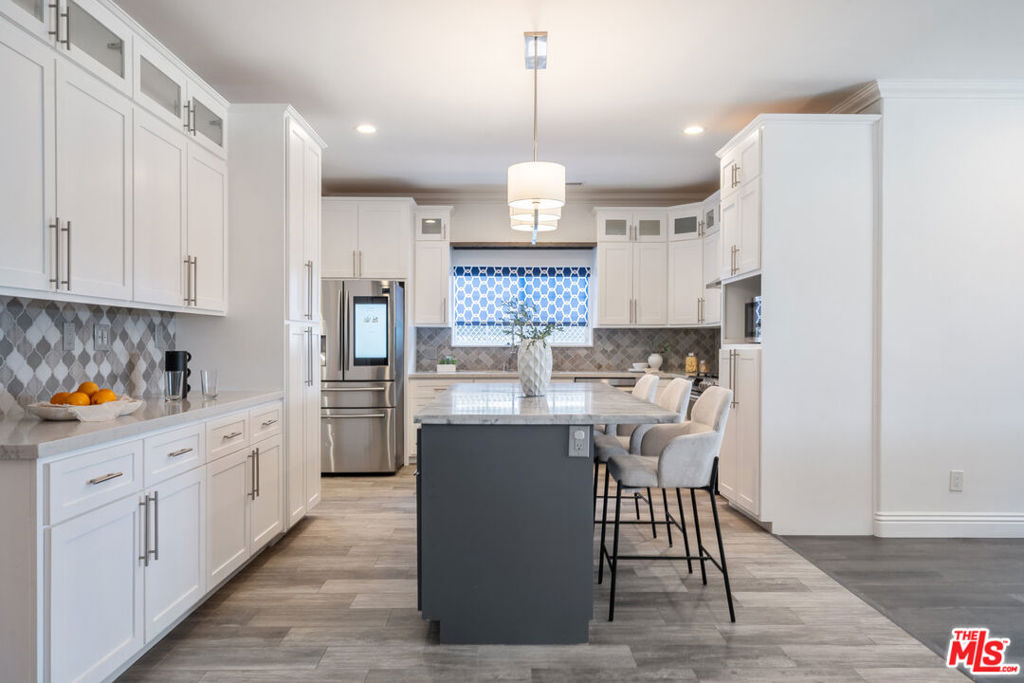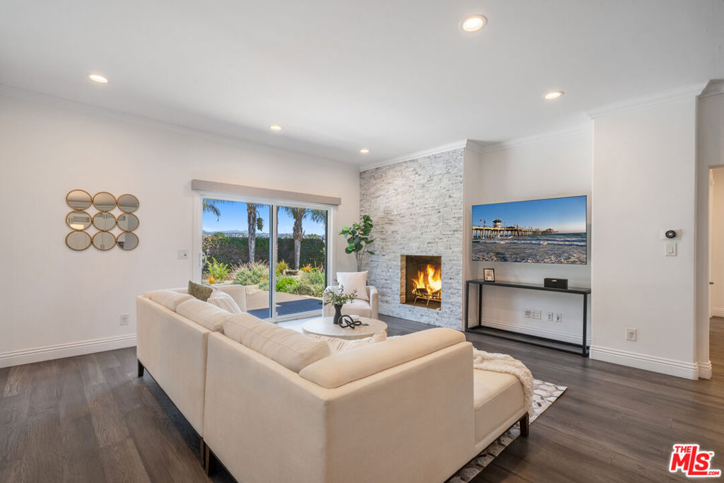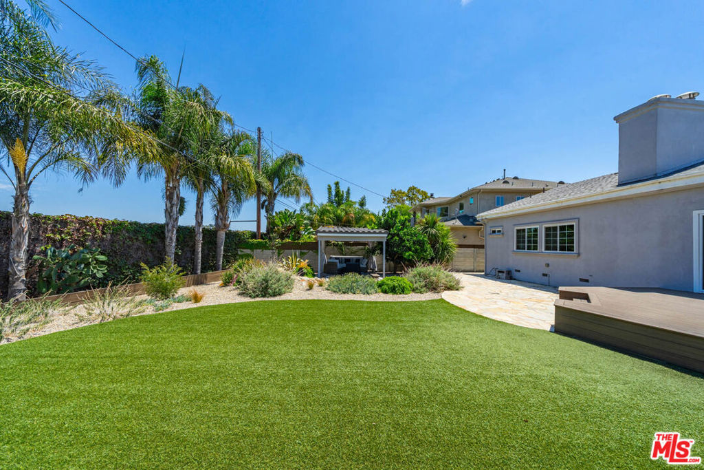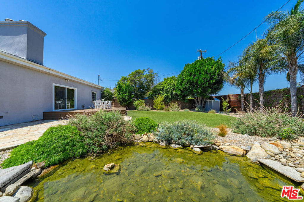 This exquisite four-bedroom, four-bathroom residence offers the perfect blend of luxury, comfort, and functionality, featuring two primary suites for ultimate flexibility. The expansive open-concept layout is ideal for both family living and entertaining, with a gourmet kitchen boasting sleek stone countertops, a large center island, and high-end finishes throughout. A fireplace adds warmth and character to the living room, while the grand primary suite offers two closets, including a walk-in, and a lavish marble en suite complete with dual floating vanities. An additional den serves as a versatile space perfect for a media room, playroom, or home office. Set on one of the largest lots in the neighborhood, over 9,500 sq. ft., the backyard is a private paradise with a tranquil pond, a charming gazebo, a spacious deck, and a covered patio. The landscaped front yard provides even more outdoor enjoyment. This home is wired for connectivity throughout and includes two electric car chargers perfect for modern living. Located minutes from LAX, Silicon Beach, Playa Vista, Howard Hughes Center, and the ocean, it offers both convenience and coastal charm. With impressive 9-foot ceilings, central AC/heat with a Nest thermostat, and a thoughtful, contemporary design, this is a must-see property for discerning buyers.