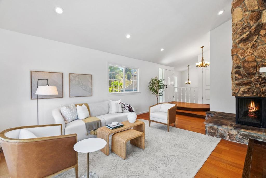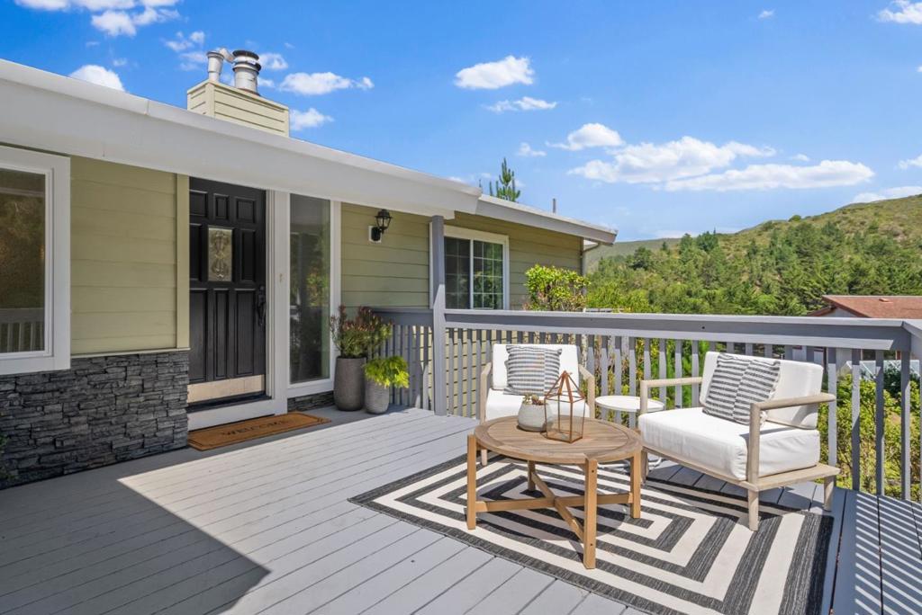 Welcome to your very own mountainside retreat. Tucked away in Pacificas sun-drenched Park Pacifica neighborhood amongst trees and hiking trails - and just minutes away from the beach -this is where serious Tahoe charm meet California coastal cool. Your huge lot, at over 0.8 acres, ensures it. Keep as-is or unwind on any of your large, mountain view decks and imagine all the dream possibilities a yard of this size creates. Step inside for hardwood floors, gorgeous vaulted ceilings, and incredible natural light throughout. The main floor is generously laid out with a spacious kitchen, living room, dining area, family room, and convenient half bath. Every detail comes together perfectly with expansive views, cozy gas fireplace, big windows and three glass slider doors to the decks, plus convenient interior access to the garage. Downstairs, the layout is equally as dreamy. Enjoy a primary suite with walk-in closet and spa-inspired bathroom, two additional bedrooms, another full bath, and flexible office/laundry/mudroom with direct outdoor access. Bonus: the massive unfinished basement space gives opportunity for future plans. At 9 Humboldt, here you are home! Note: Front yard image has been digitally enhanced to demonstrate possible landscaping improvements with artificial turf.