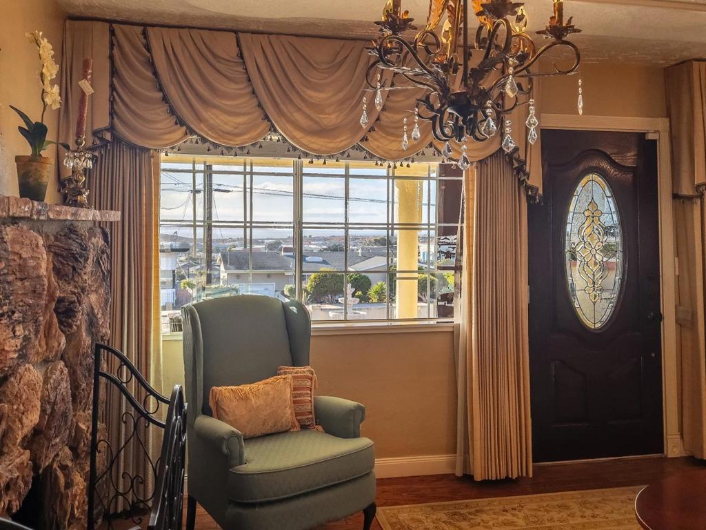 20K PRICE REDUCED BRING OFFERS, Great price per sqft. Rare 180 degree Panoramic Ocean Views 1/3 acre (14,500² Realist) Expansive fully usable, gently sloped lot. Situated in the Seaside Sunbelt. Whether you're searching for a spacious move in ready family home with large entertaining area or to create a Multi-generational compound with tremendous upside potential, this property delivers. Once in a lifetime opportunity. Lot square footage allows for numerous additions to property. The possibilities are endless. Spectacular Panoramic, Ocean, Bay, City Lights and endless Sunsets views a rare fine. Home is approximately 2,100² (Realist) this Single-level 3-bed, 2-bath, 2 living rooms, 2 fireplaces (in both living & family room,) formal dining. Secondary dining, large kitchen add in privacy, easy living & flexibility. Dual electric iron gates Circular front driveway leads to main house & 2-car attached garage, 3rd iron gate leads to the additional 3-car detached 688² garage ideal for car collectors, workshop space, or future expansion. Pavers complete large backyard rear patio, perfect for entertaining or relaxing Furnishings available separately. Buyer independently verifying the accuracy of all information through personal inspection or with appropriate professionals