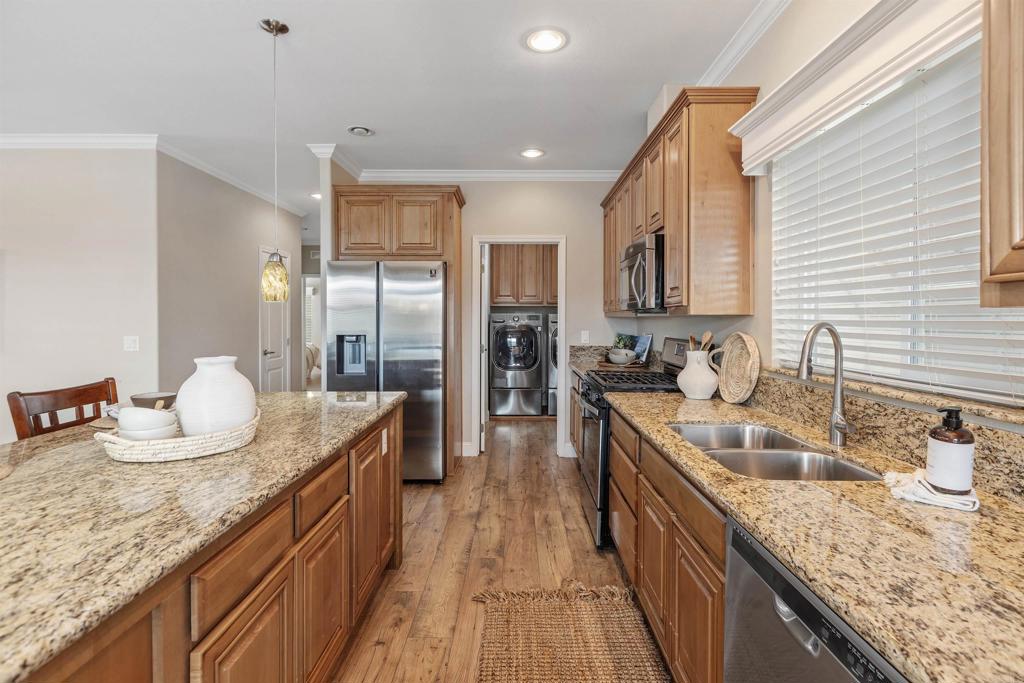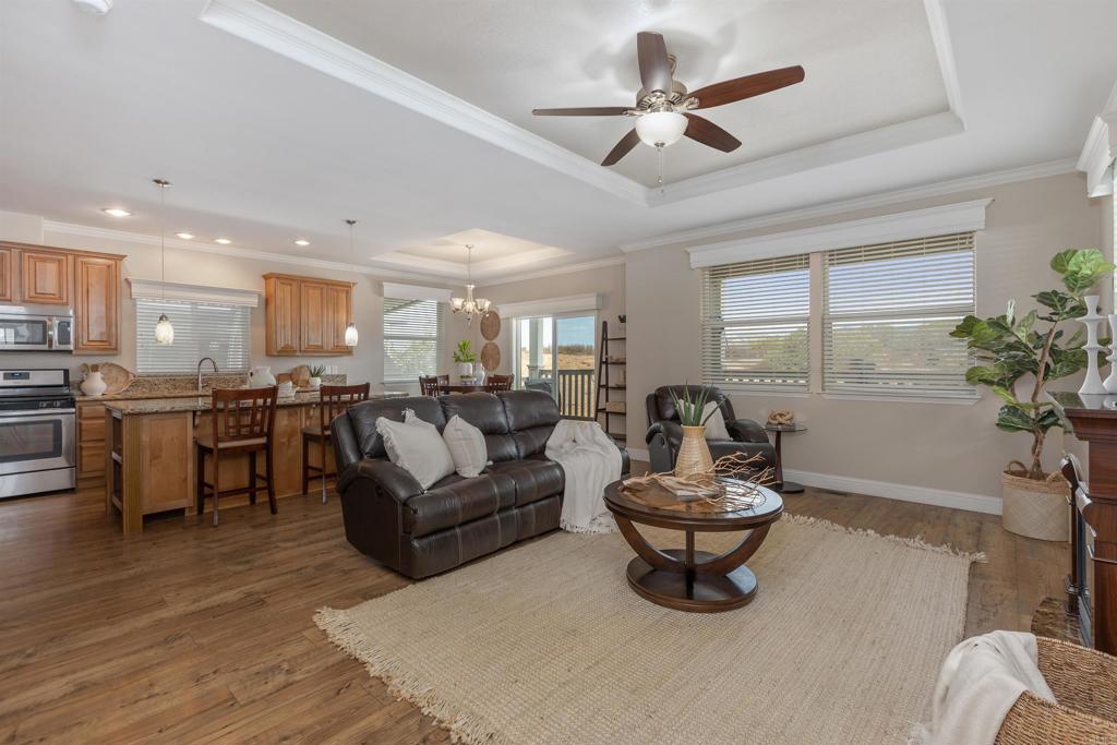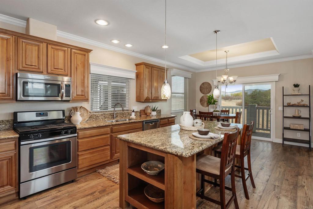 Welcome to senior living at its finest! Located in the highly sought-after Lake Jennings Estate Park, this stunning 3 bedroom, 2 bath, approximately 1,638 square foot home offers both comfort and style—and you own the land and the home! Built in 2016, this charming residence features neutral paint tones, beautiful wood flooring and a spacious open floor plan designed for easy living. Stay cool year-round with a powerful central A/C unit, great for warm summer days. As you enter, you’ll be impressed by the elegant wood cabinetry, granite countertops and center island, which includes a beverage station and extra storage for cookbooks or decorative pieces. The kitchen also features stainless steel appliances and a well-appointed laundry room with high-end washer and dryer included. The home offers ample storage, including a walk-in pantry. The primary suite is a peaceful retreat, boasting high decorative ceilings, ceiling fan, walk-in closet and a luxurious bathroom with double sinks and a walk-in tiled shower. Head outside to a Trex deck wrap-around patio with a ramp from the covered parking area—ideal for easy access. Enjoy mountain views while relaxing or BBQing on the patio. A large storage shed is included and the landscaped yard is both attractive and low-maintenance. The low HOA fee covers community amenities such as park maintenance, pool, jacuzzi and dog park. The community allows two dogs under 25 lbs per home and offers monthly social events for residents. This is a 55-plus community, with a second occupant allowed at 45-plus. Don’t miss your chance to be part of this vibrant, well-maintained community where lifestyle and location come together!