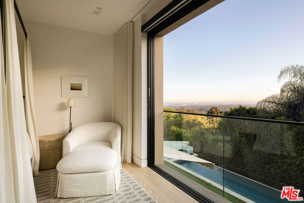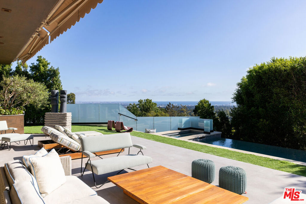 Set on one of Brentwood's most coveted streets, this three-story architectural masterpiece has been fully reimagined by Ashe Leandro, AD100 designer from New York, delivering a seamless blend of cutting-edge design and California indoor/outdoor living. The moment you enter the sweeping glass entryway, panoramic ocean views unfold, setting the tone for the home's striking aesthetic and unmatched sense of privacy.Boasting six bedrooms, the residence features a top-of-the-line chef's kitchen and expansive living spaces flooded with natural light through Fleetwood sliding glass doors that open directly to the backyard oasis. The upper level houses four en-suite bedrooms, including a lavish master suite with a grand walk-in closet and an oversized spa-like bathroom, complete with a stand-alone tub and steam shower overlooking the city and the Pacific Ocean.The lower level elevates entertainment to a new standard with a state-of-the-art home theater, fully illuminated onyx bar, temperature-controlled wine cellar, private gym, and guest bedroom, all seamlessly integrated with a Crestron home automation system for effortless living. Every corner of the home showcases meticulous design, exceptional craftsmanship, and a rare vision, making it perfect for families, couples, or any buyer looking to be in prime Brentwood with architectural integrity and panoramic views.
