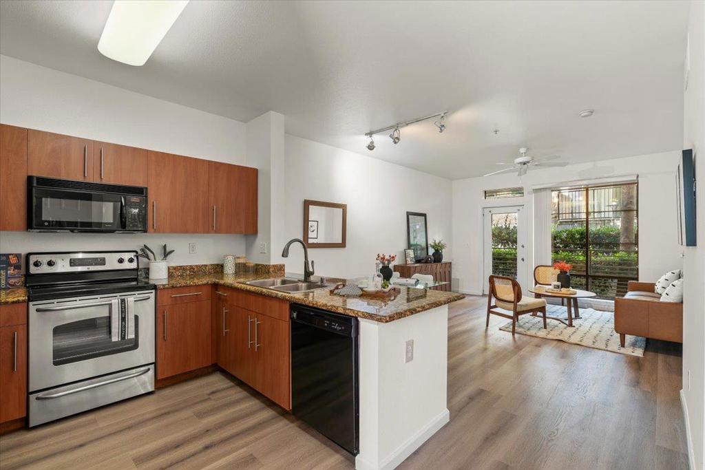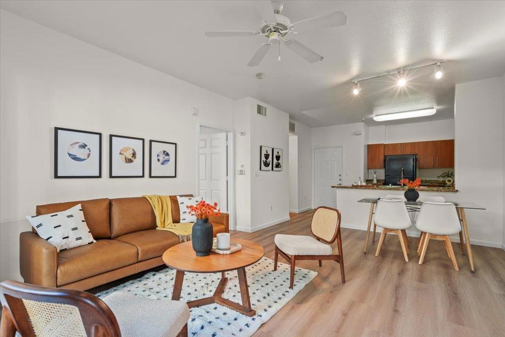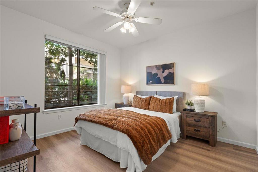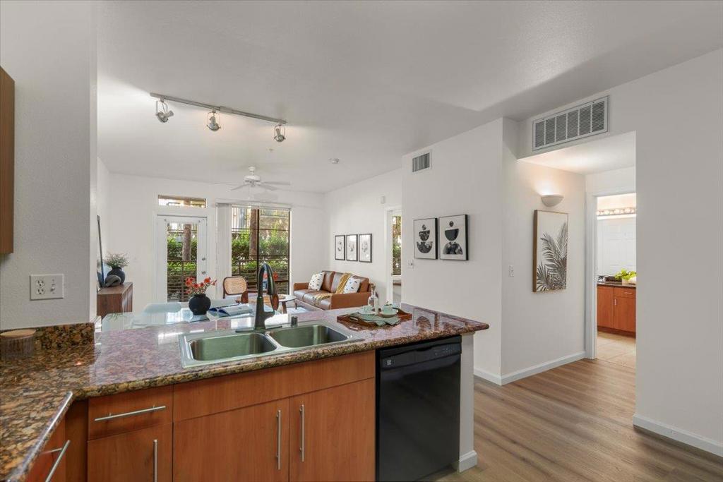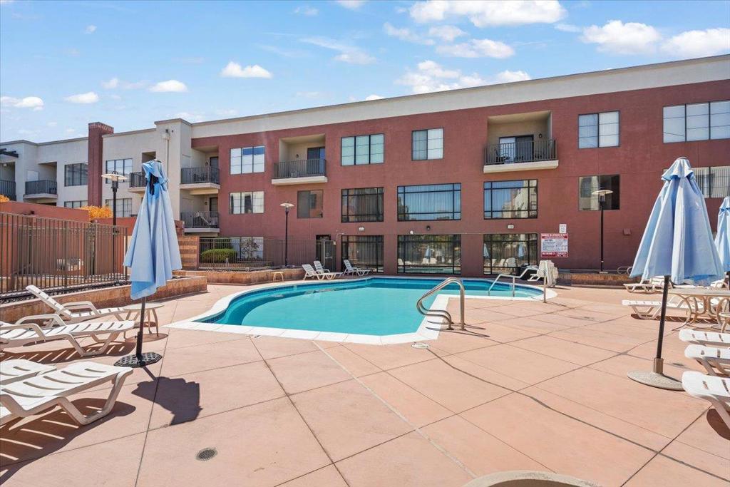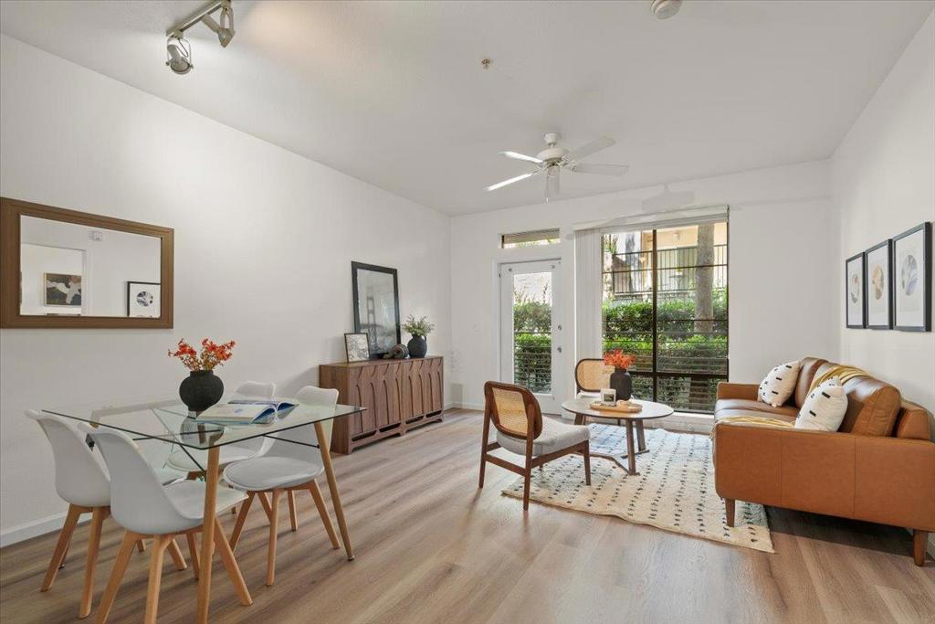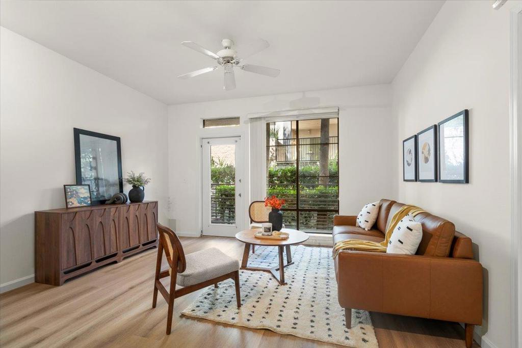 Move-In Ready Ground Floor Condo! Step into this beautifully updated condo featuring brand-new luxury vinyl flooring and fresh paint throughout. With its soaring ceilings, open-concept design, and abundant natural light, this home offers the perfect balance of comfort, privacy, and space for entertaining. The spacious kitchen boasts generous storage and counter space, while the large bedroom and walk-in close provides a true retreat. Enjoy the convenience of in-unit laundry, ATTACHED over-sized storage, and the serenity of a private patio to clear your mind. Community amenities include a pool, fitness center, shared library, and dedicated co-working spaces with a conference room perfect for those who work from home. Secure parking adds peace of mind, and the location cant be beat: just steps from coffee shops, breweries, restaurants, parks, and more. This condo checks every box don't miss your chance to see it!