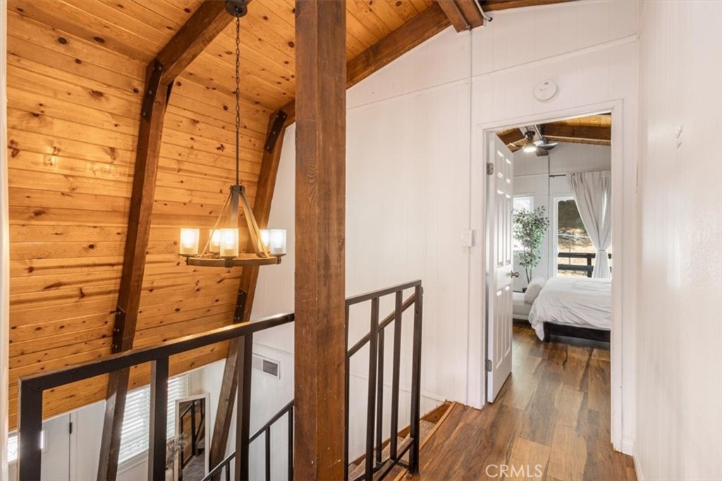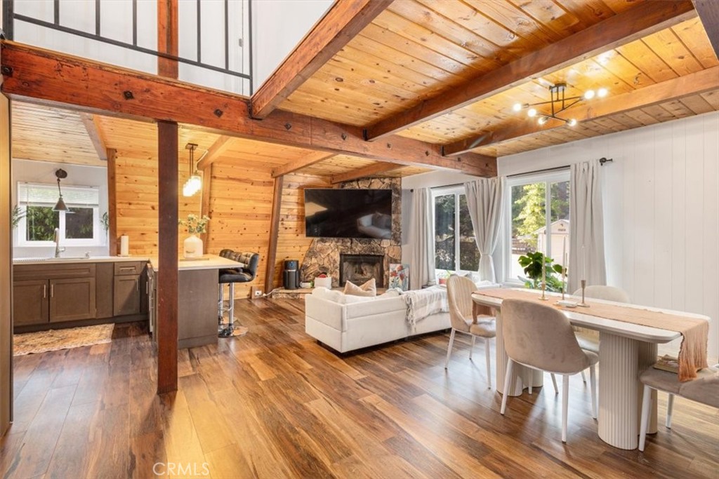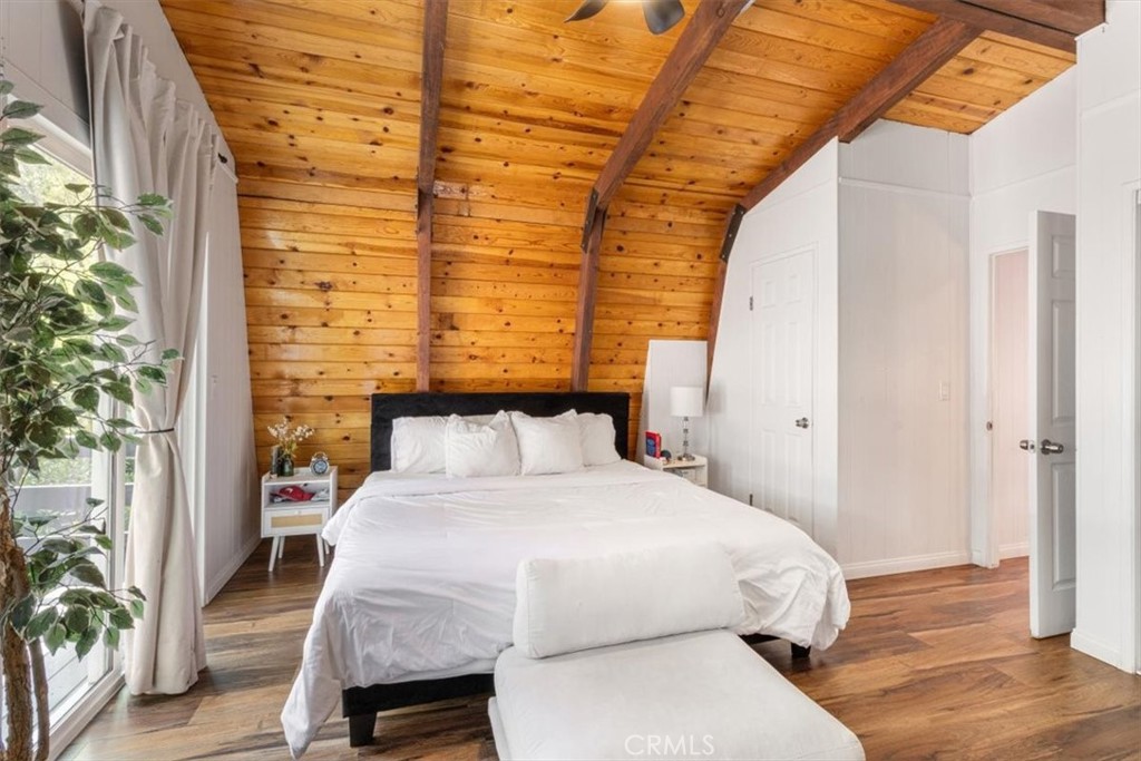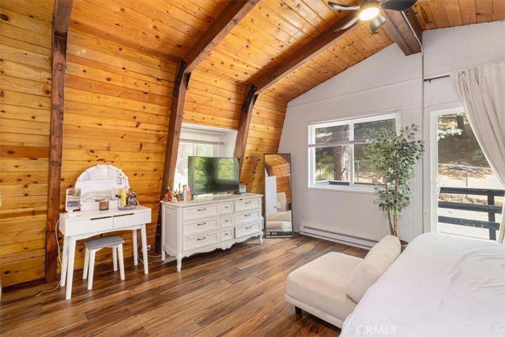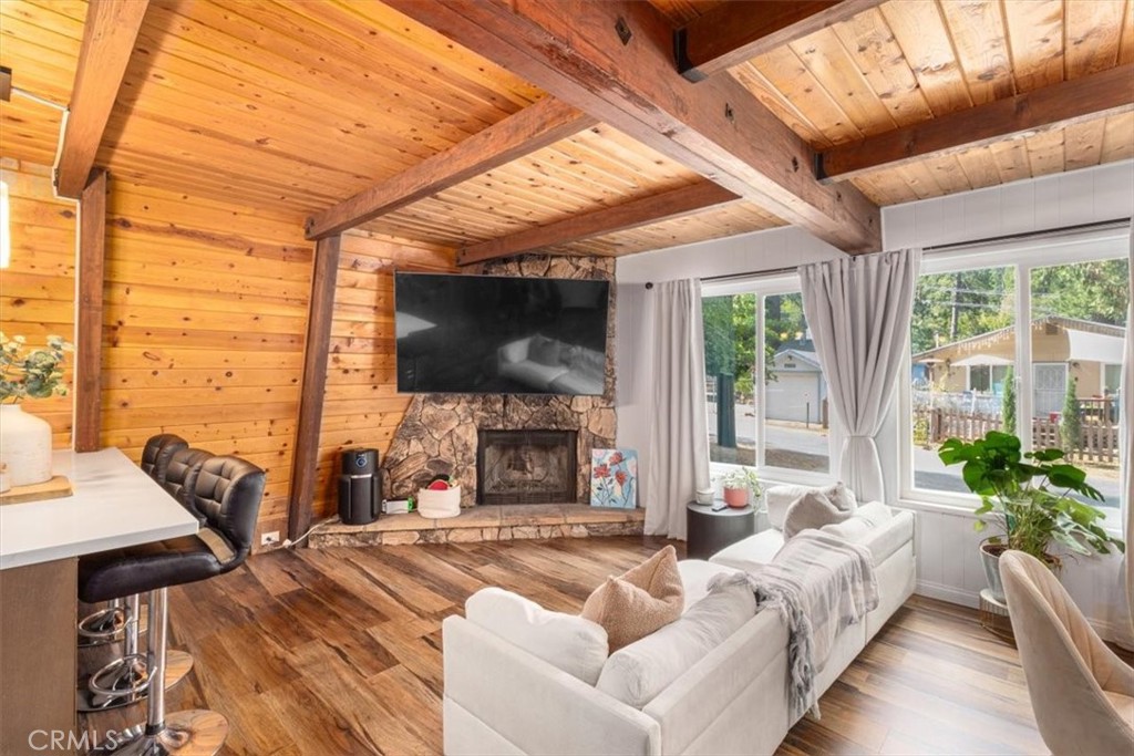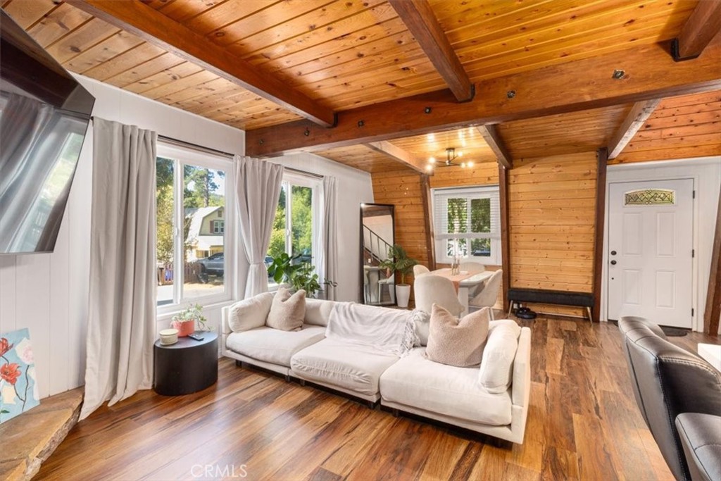 REDUCED PRICE! Turnkey Cabin in Crestline Near Lake Gregory & Popular Hiking Trails! 3 Bedrooms • 2 Full Bathrooms • 1,380 Sq. Ft. • 5,059 Sq. Ft. Lot • Built in 1978 This beautiful mountain retreat is move-in ready and full of charm. Featuring wood floors throughout, an upgraded kitchen with quartz countertops, and a cozy fireplace in the living room, this home blends modern upgrades with a warm, rustic feel. The bathrooms have been tastefully updated, and the stunning wood ceilings add that special mountain touch. The layout offers convenience and comfort with 2 bedrooms upstairs, including the primary suite with a private balcony and master bathroom, and 1 bedroom plus a full bath downstairs along with a separate laundry area. Additional highlights include fresh interior and exterior paint, plenty of parking for guests, RV parking, and a spacious backyard ideal for family gatherings. Located close to Lake Gregory, you’ll also enjoy easy access to Downtown Crestline, restaurants, shops, and local conveniences. Don’t miss out on this perfect mountain getaway or full-time residence—come see all this home has to offer