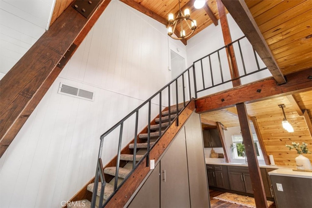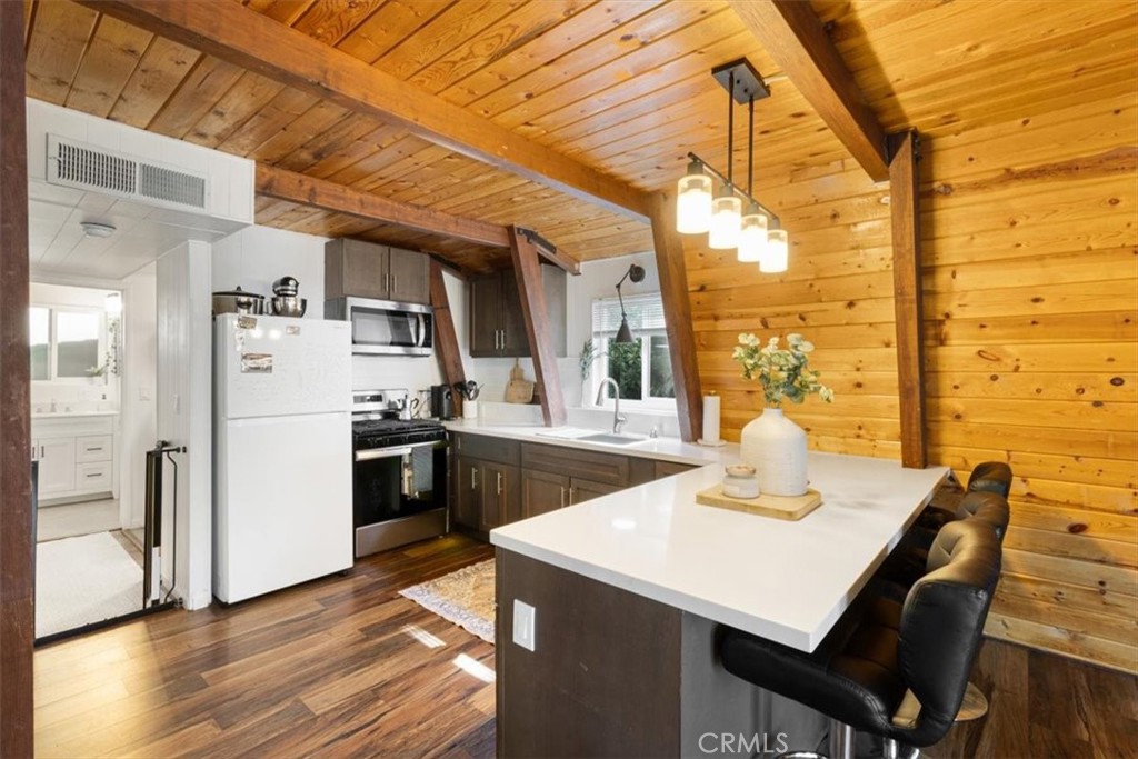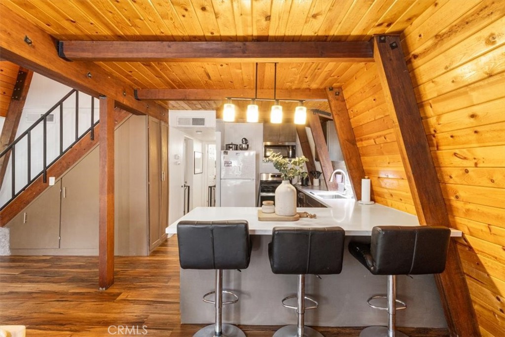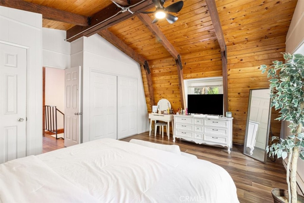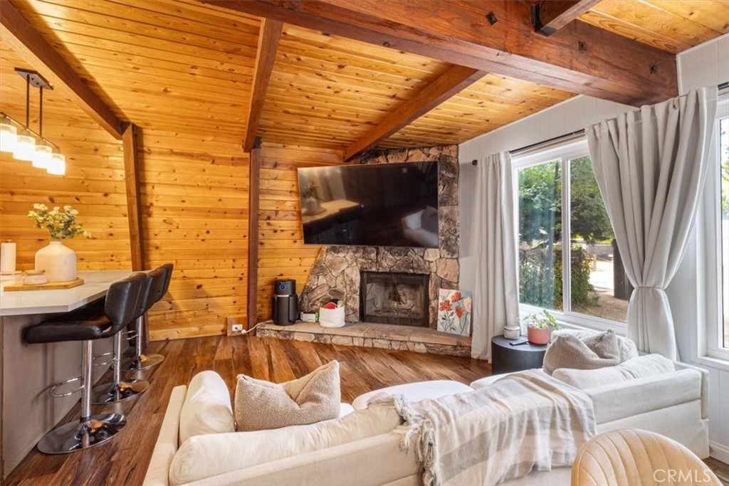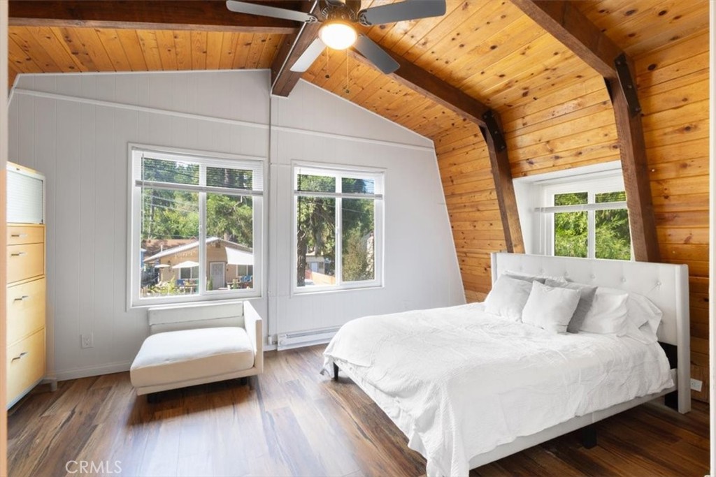 REDUCED PRICE! Turnkey Cabin in Crestline Near Lake Gregory & Popular Hiking Trails! 3 Bedrooms • 2 Full Bathrooms • 1,380 Sq. Ft. • 5,059 Sq. Ft. Lot • Built in 1978 This beautiful mountain retreat is move-in ready and full of charm. Featuring wood floors throughout, an upgraded kitchen with quartz countertops, and a cozy fireplace in the living room, this home blends modern upgrades with a warm, rustic feel. The bathrooms have been tastefully updated, and the stunning wood ceilings add that special mountain touch. The layout offers convenience and comfort with 2 bedrooms upstairs, including the primary suite with a private balcony and master bathroom, and 1 bedroom plus a full bath downstairs along with a separate laundry area. Additional highlights include fresh interior and exterior paint, plenty of parking for guests, RV parking, and a spacious backyard ideal for family gatherings. Located close to Lake Gregory, you’ll also enjoy easy access to Downtown Crestline, restaurants, shops, and local conveniences. Don’t miss out on this perfect mountain getaway or full-time residence—come see all this home has to offer