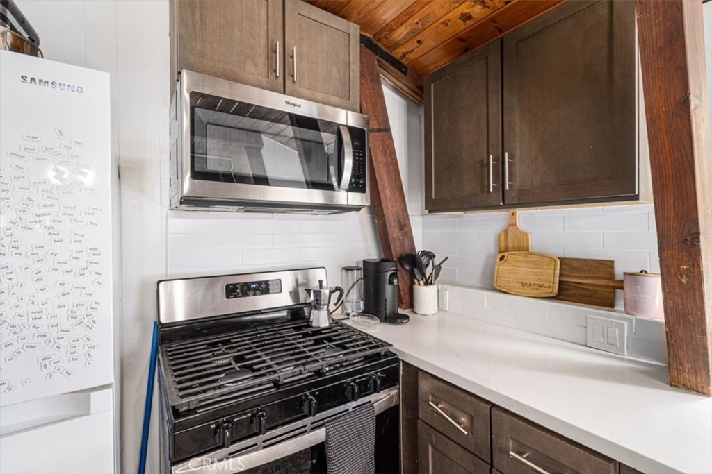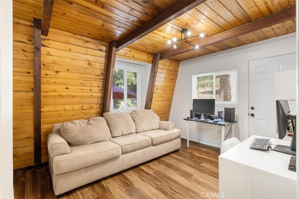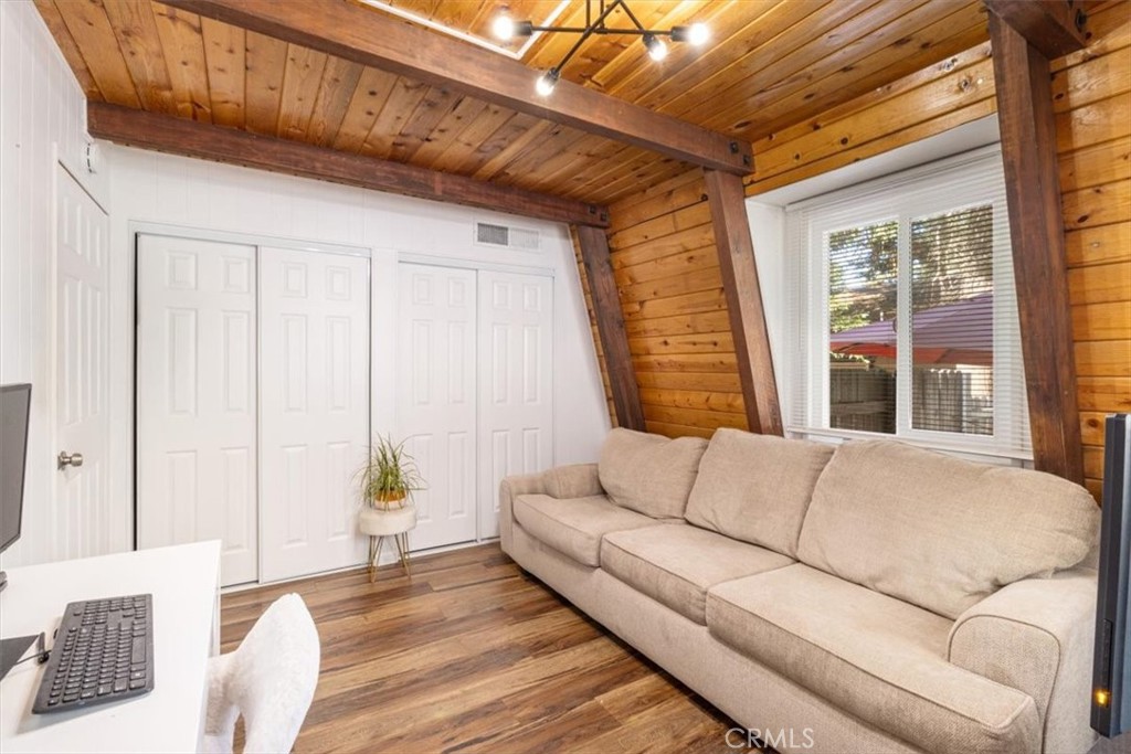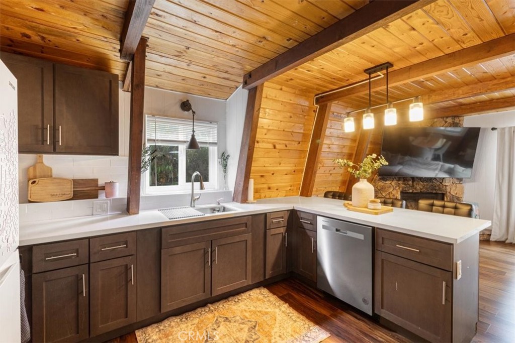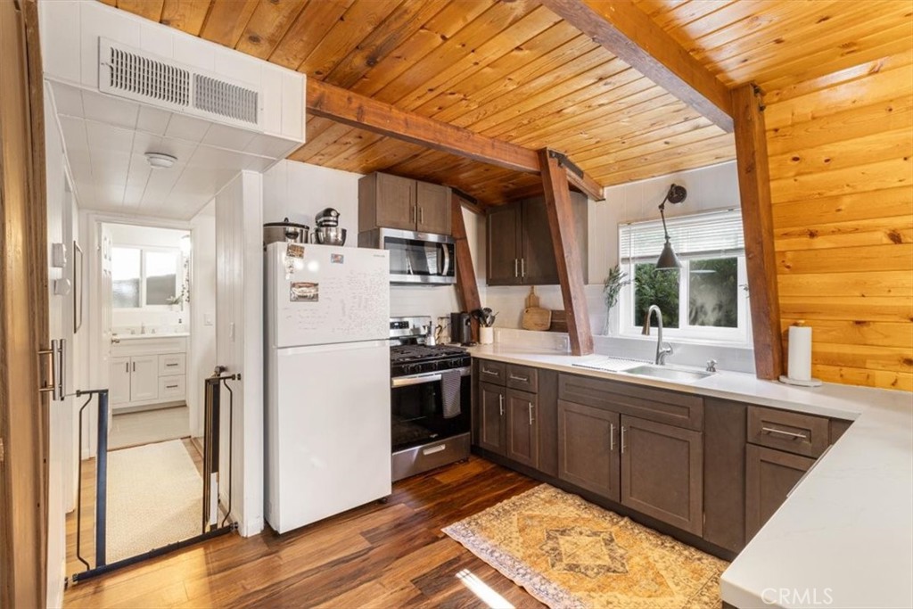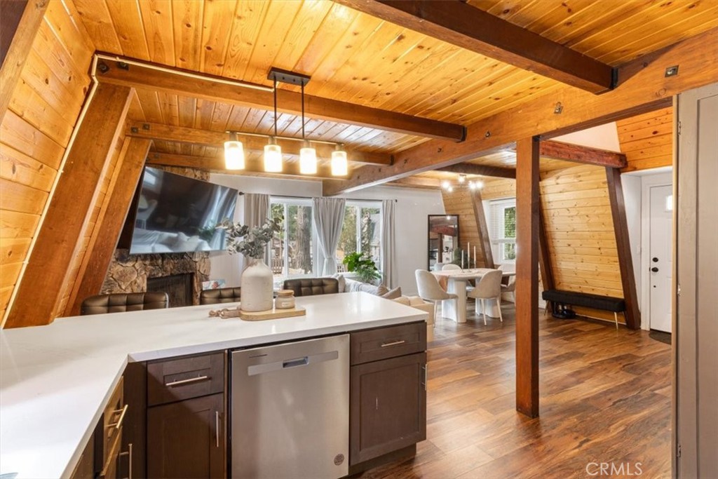 REDUCED PRICE! Turnkey Cabin in Crestline Near Lake Gregory & Popular Hiking Trails! 3 Bedrooms • 2 Full Bathrooms • 1,380 Sq. Ft. • 5,059 Sq. Ft. Lot • Built in 1978 This beautiful mountain retreat is move-in ready and full of charm. Featuring wood floors throughout, an upgraded kitchen with quartz countertops, and a cozy fireplace in the living room, this home blends modern upgrades with a warm, rustic feel. The bathrooms have been tastefully updated, and the stunning wood ceilings add that special mountain touch. The layout offers convenience and comfort with 2 bedrooms upstairs, including the primary suite with a private balcony and master bathroom, and 1 bedroom plus a full bath downstairs along with a separate laundry area. Additional highlights include fresh interior and exterior paint, plenty of parking for guests, RV parking, and a spacious backyard ideal for family gatherings. Located close to Lake Gregory, you’ll also enjoy easy access to Downtown Crestline, restaurants, shops, and local conveniences. Don’t miss out on this perfect mountain getaway or full-time residence—come see all this home has to offer