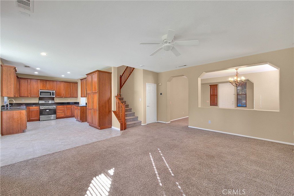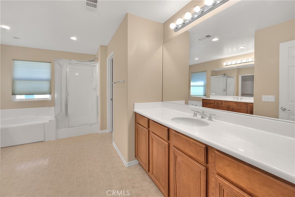 Spacious 4-Bedroom Home in the Desirable Village of Avalon! Welcome to this beautifully maintained 4-bedroom, 3-bathroom two-story home offering 2,513 sq ft of comfortable living space on a generous 5,663 sq ft lot in the sought-after Village of Avalon community in Perris. Step inside to find a thoughtfully designed layout, featuring one bedroom and a full bath downstairs—ideal for guests, extended family, or a private office. The main level also includes a convenient laundry room and an inviting open-concept living and dining area. The kitchen is a chef’s dream, showcasing rich walnut cabinetry, sleek black granite countertops, and plenty of prep and storage space—perfect for entertaining or everyday meals. Upstairs, you'll find a spacious loft area, ideal as a second living room, game room, or study space, along with four additional bedrooms, including a generous primary suite. The primary bathroom offers a true retreat with dual separate vanities, a soaking tub, and a separate walk-in shower. Located in a peaceful, family-friendly neighborhood with easy access to schools, shopping, parks, and major freeways, this home has everything you’re looking for—space, style, and comfort. Don’t miss this incredible opportunity—schedule your private tour today!