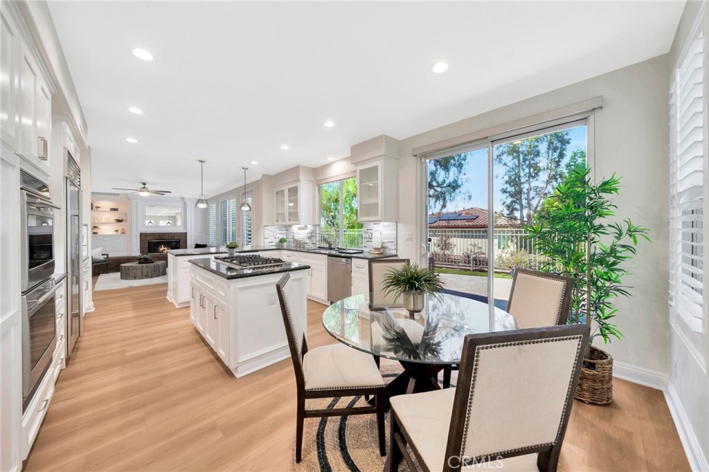 Welcome to 23171 Rockrose, an exquisitely reimagined home tucked away on a desirable single-loaded street in the guard-gated enclave of Stoneridge, Mission Viejo. Beyond its stunning curb appeal, this residence offers exclusive Lake Mission Viejo privileges — from boating and fishing to private sandy beaches. Inside, soaring ceilings set the stage for a home that feels both grand and inviting. Nearly every corner has been refreshed with brand-new upgrades: new PEX plumbing, new lighting, new flooring, new luxurious interior paint, a new HVAC system, new epoxy-finished garage floors, and a new hot water tank. Plantation shutters and custom millwork — including wainscoting, archways, and crown molding — bring warmth and timeless elegance. The gourmet kitchen is a showstopper, outfitted with granite countertops, a spacious breakfast bar, and premium appliances: built-in SUB-ZERO refrigerator, WOLF double oven, and a new WOLF island range. Upstairs, the expansive primary suite is a private retreat, featuring a spa-inspired bath with travertine stone and designer finishes. Each additional bathroom has also been thoughtfully updated with custom mirrors and curated details. Outdoors, enjoy low-maintenance beauty with lush artificial turf, custom pavers, and stacked-stone planter boxes. A whole-house fan keeps the home energy efficient, while the 3-car tandem garage offers generous storage. With no neighbors directly across the street, top-rated schools nearby, shopping, dining, golf, La Paws Dog Park, the Nadadores Swim Facility, low HOA dues, and no Mello Roos, this home delivers the very best of Southern California living. Don’t miss your chance to experience this rare find on one of Stoneridge’s premier streets — schedule your private tour today!